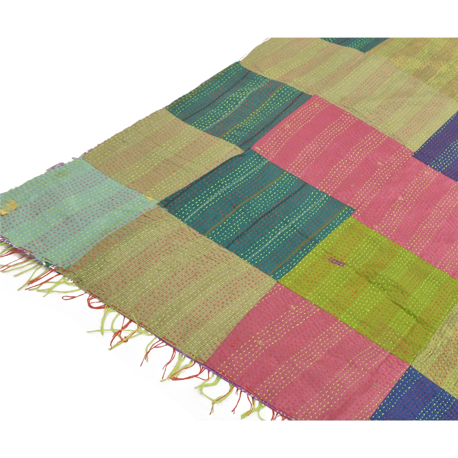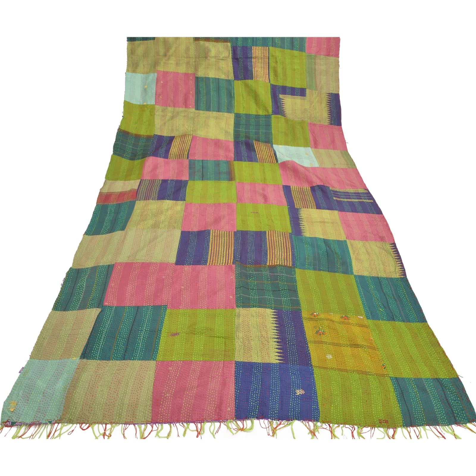 Sanskriti Proffers this Vintage Elegant multicolor 100% Pure Silk hand embroidered patch work kantha heavy long scarf/dupatta. This dupatta is lines design embroidered with red&Green thread work on multicolor base Sustainable Fabric. This stole from Bengal is hand embroidered with the traditional kantha running stitch in a beautiful pattern.