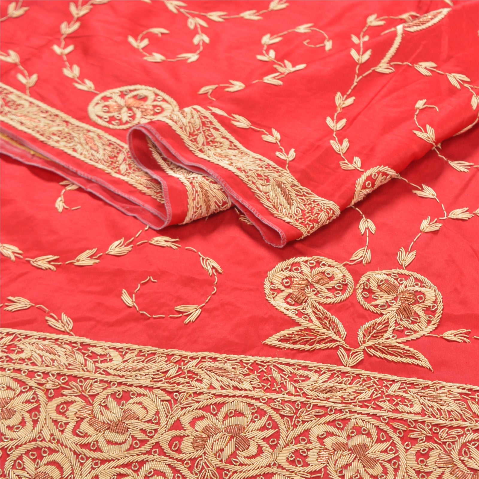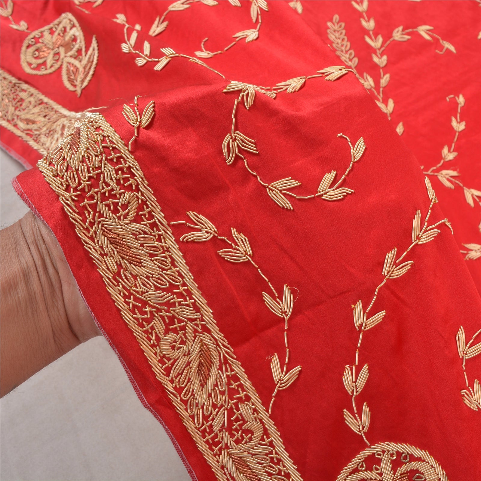 Sanskriti Vintage Heavy Dupatta Pure Satin Silk Red Hand Beaded Zardozi Stole