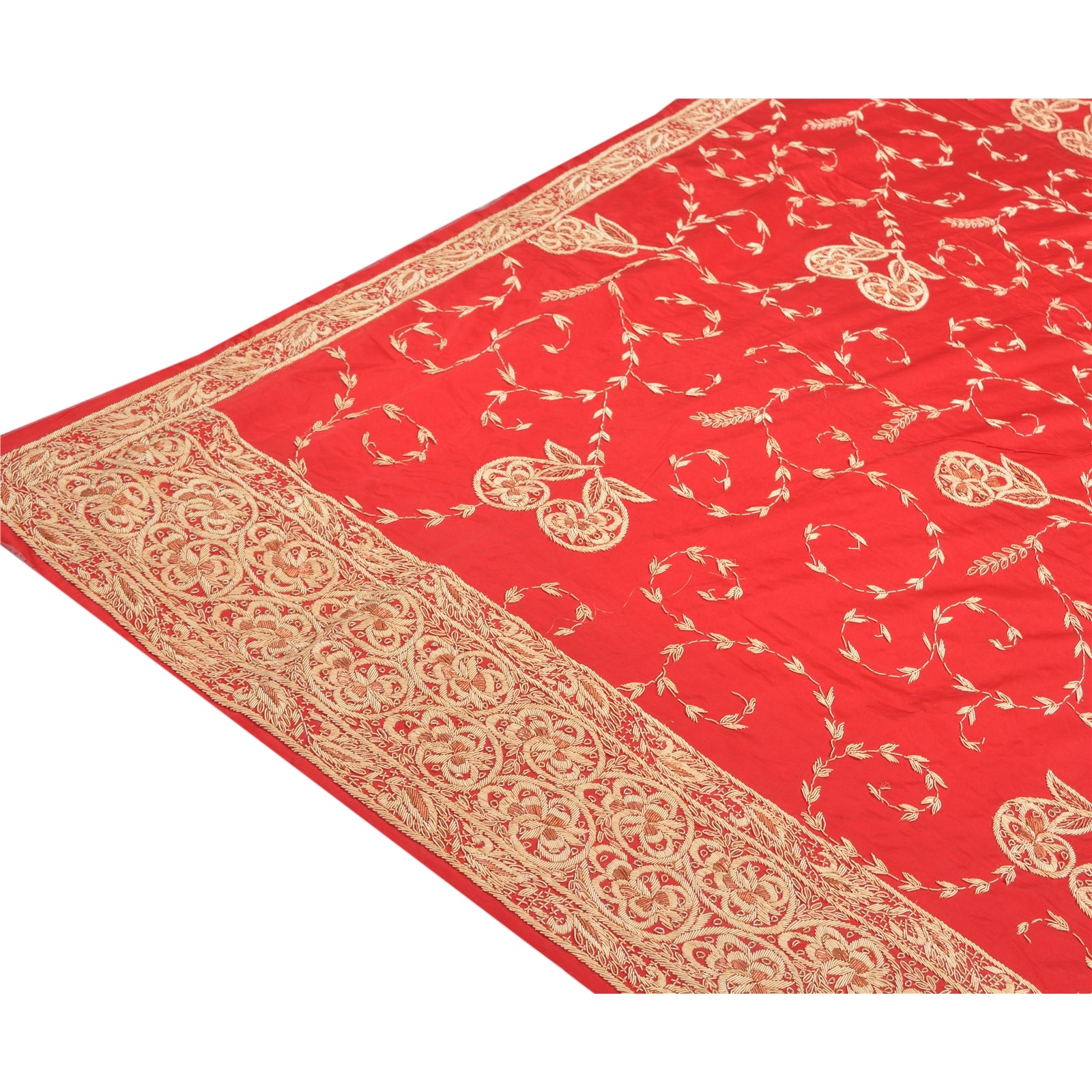 Stunning Very Heavy Dupatta Hand Embroidered 100% Pure Satin Silk Dupatta/Stole In Red Color Sustainable Fabric. Border feature is floral design embellished with metallic color golden/copper color zardozi work is the highlight of the dupatta. Also you can see the center part of the dupatta has fully covered with golden zardozi work. A very traditional dupatta with beautiful craftsmanship which I am sure you will truly appreciate. This one of a kind item is difficult to express in words.