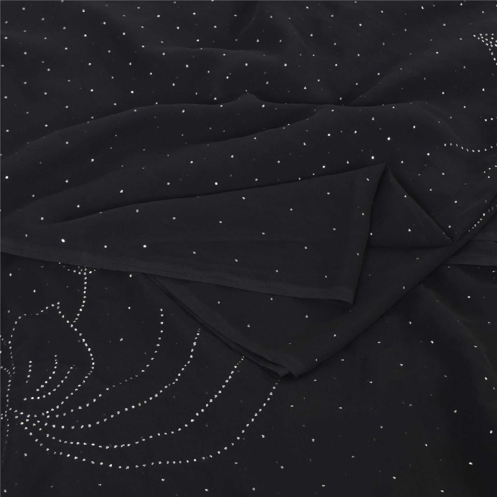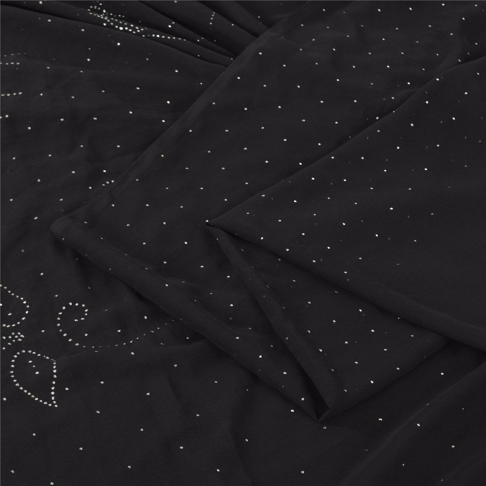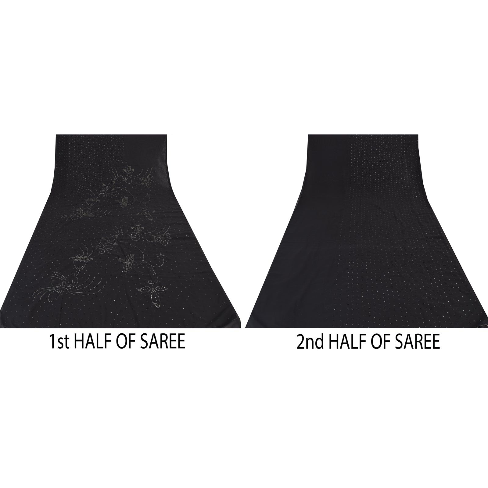 Sanskriti Vintage Indian Black Sarees Pure Silk Embroidered Mukeish Sari Sustainable Fabric