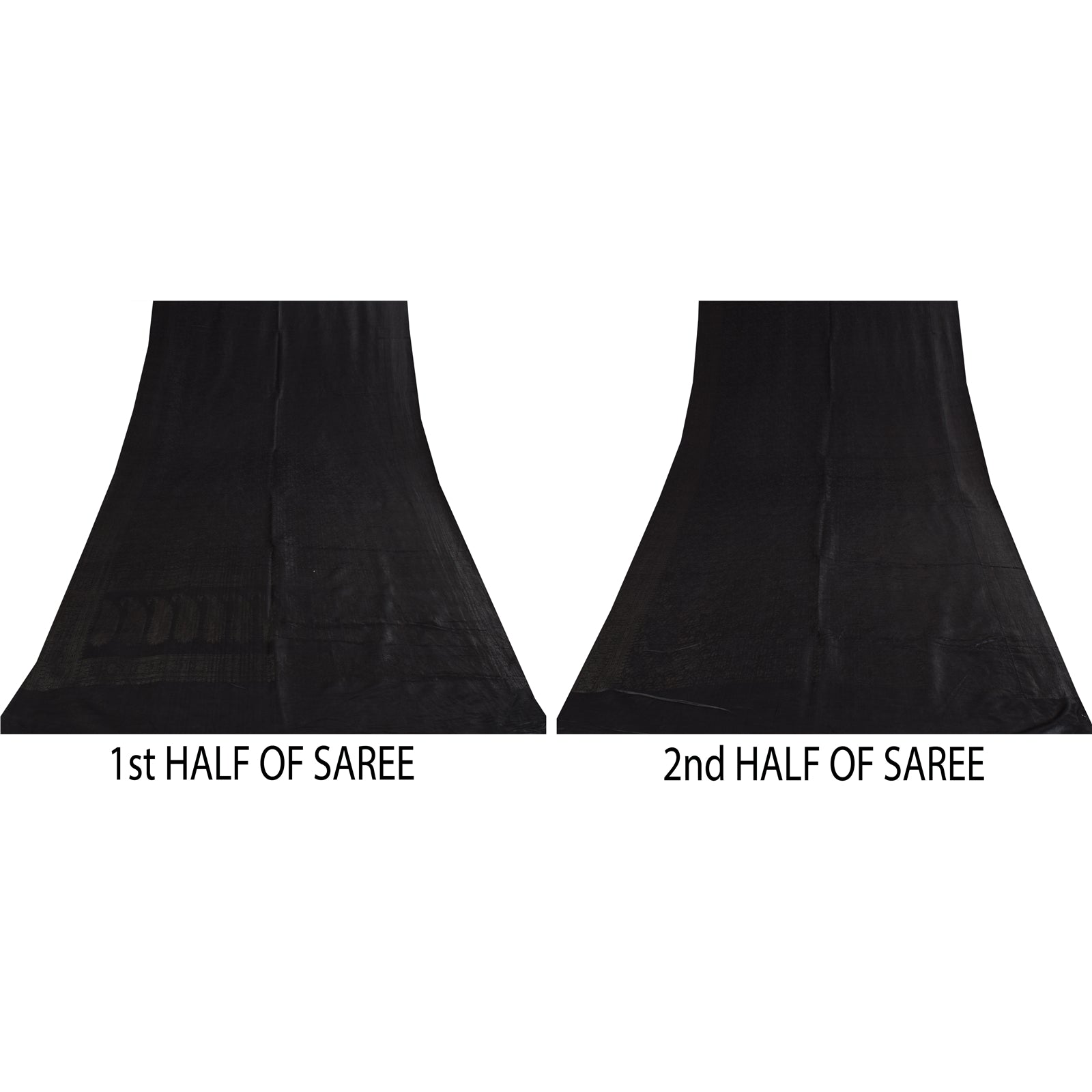 Sanskriti Vintage Indian Black Sarees Pure Silk Woven Premium Sari Craft Sustainable Fabric