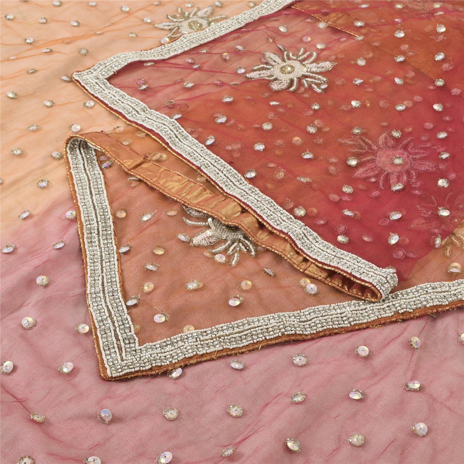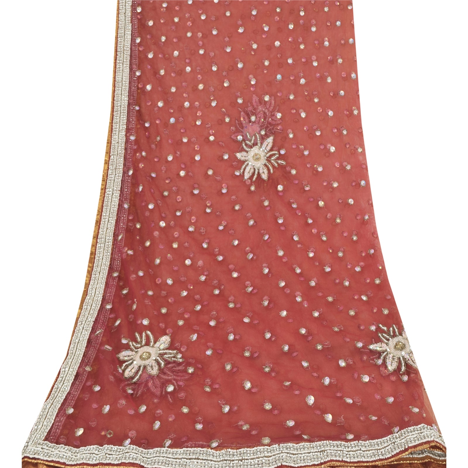 Sanskriti Vintage Indian Dupatta Long Stole Net Mesh Hand Beaded Ethnic Scarves