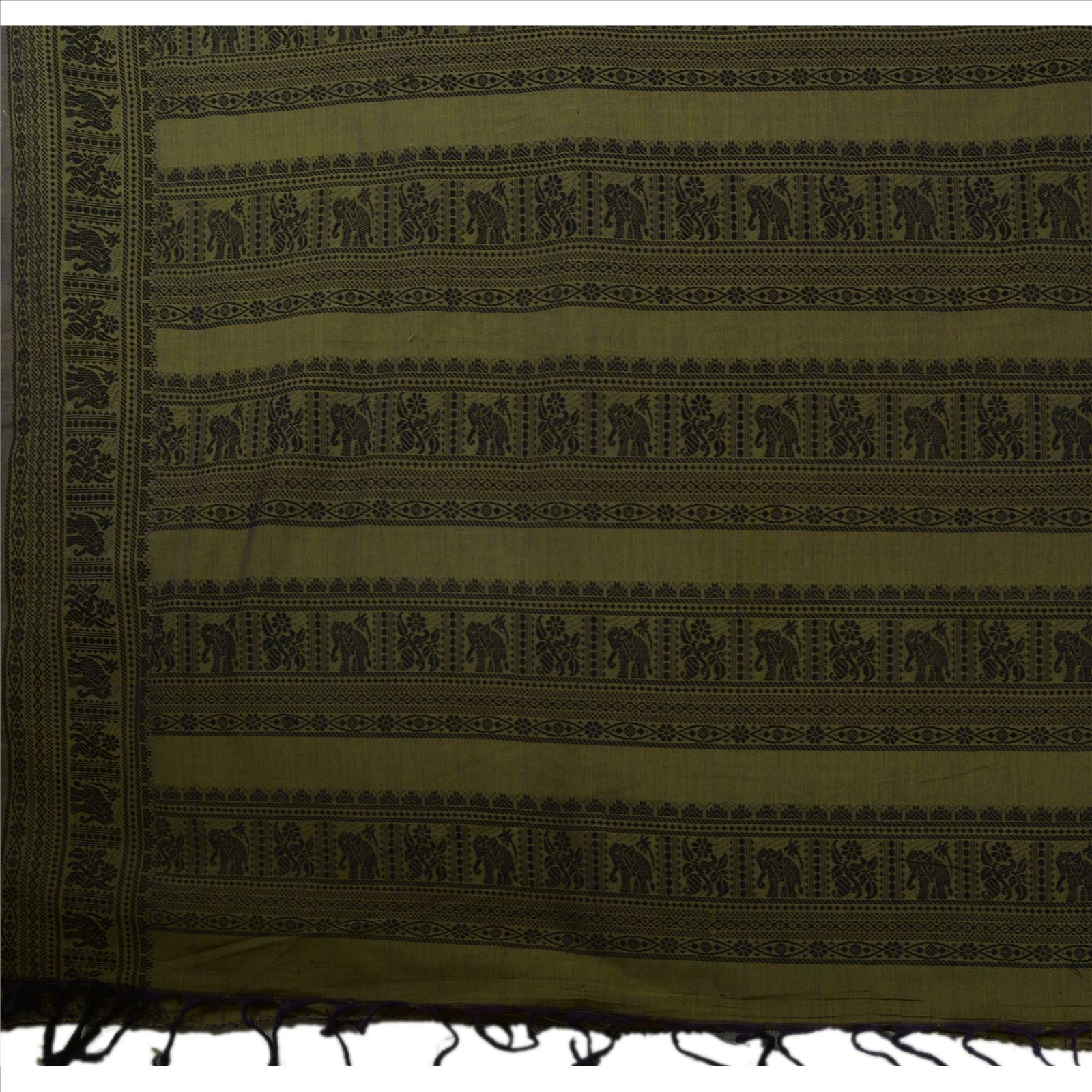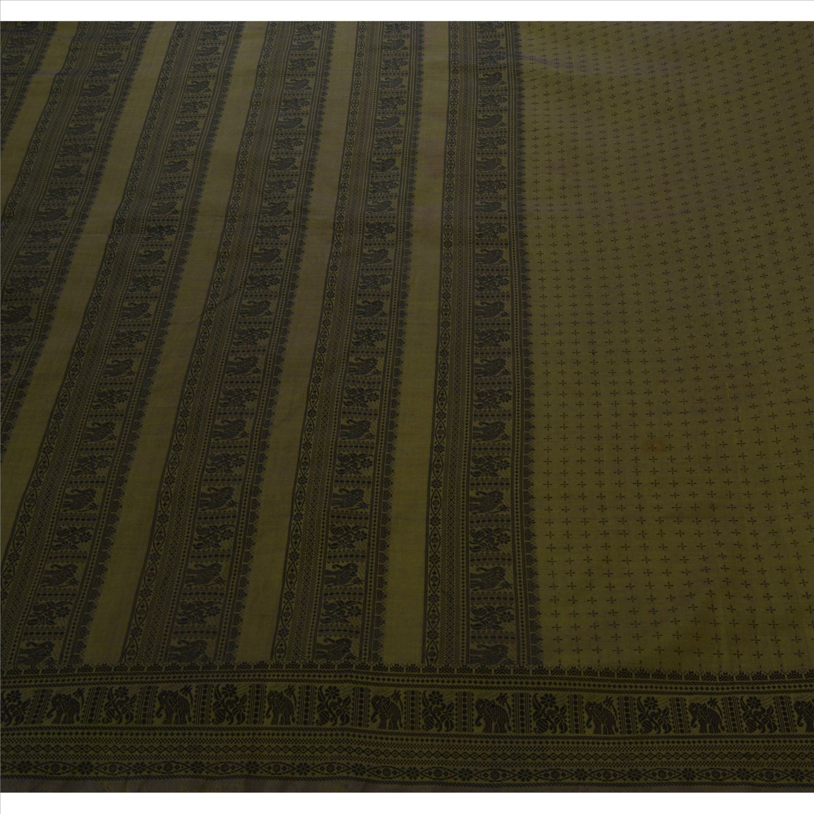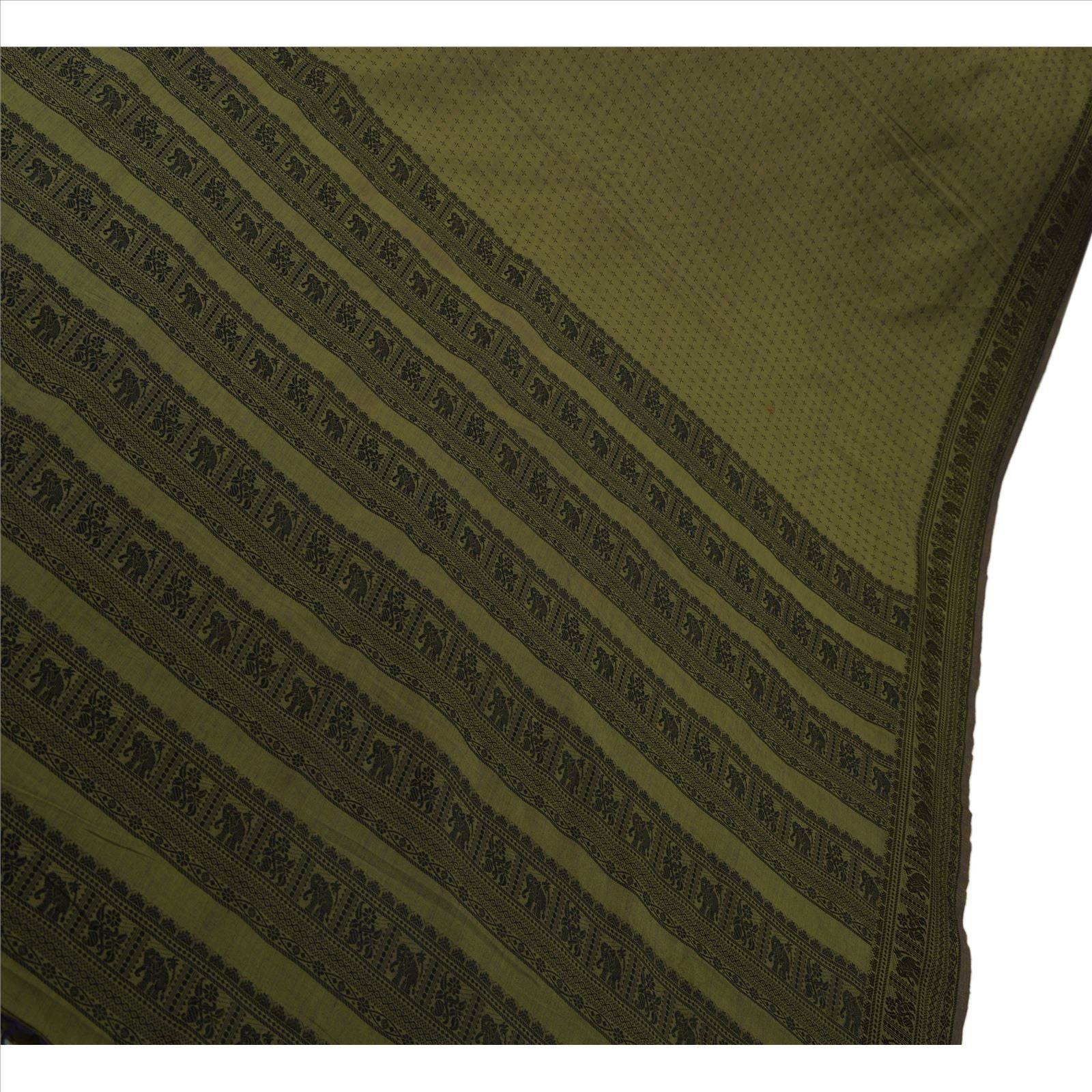 Sanskriti Vintage Indian Saree Cotton Blend Woven Sustainable Fabric Cultural Sari Elephant