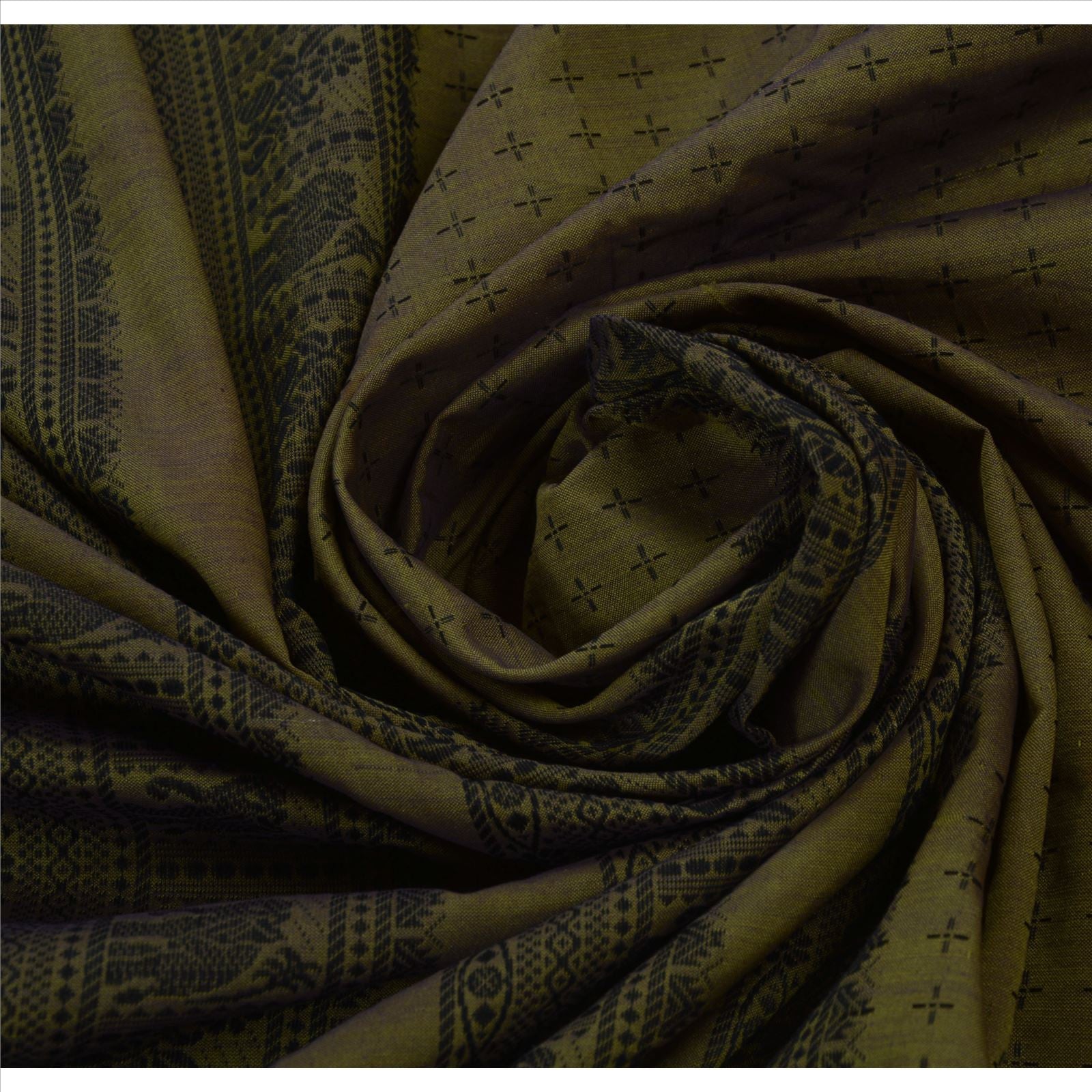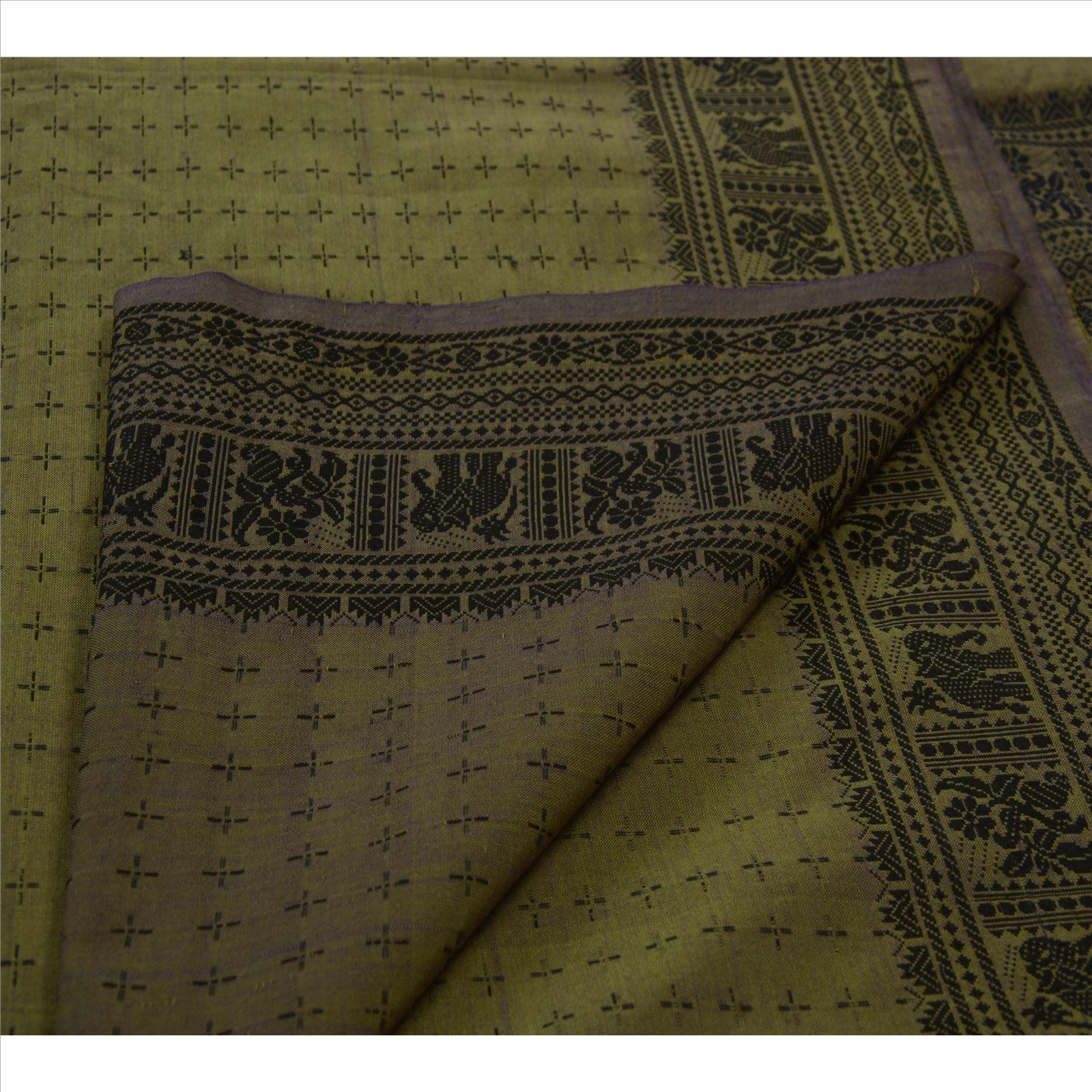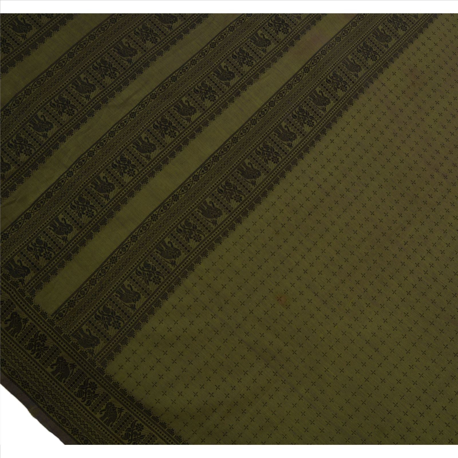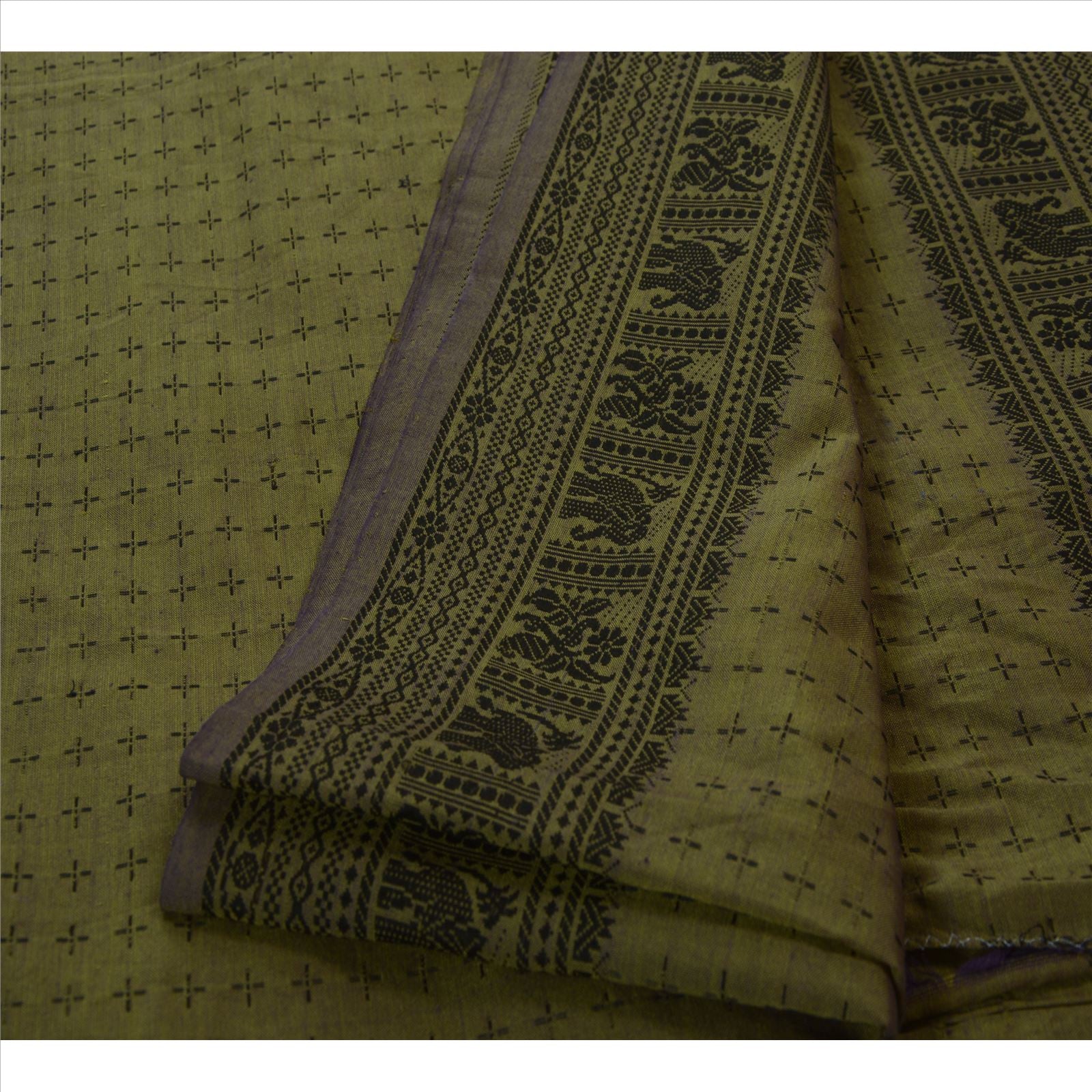 Sanskriti Vintage Indian Saree Cotton Blend Woven Sustainable Fabric Cultural Sari Elephant