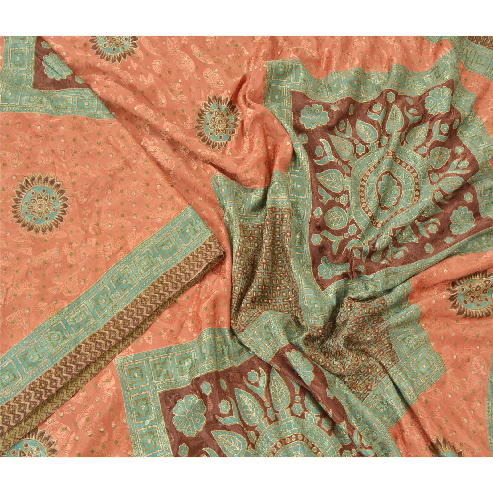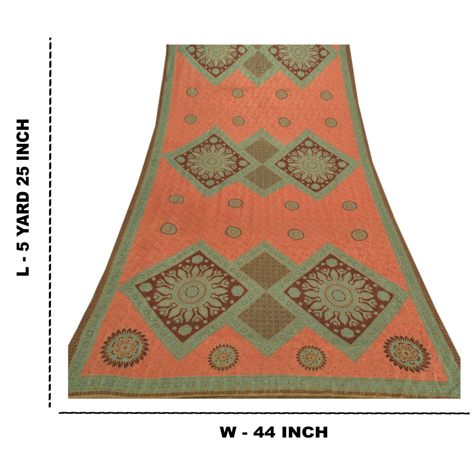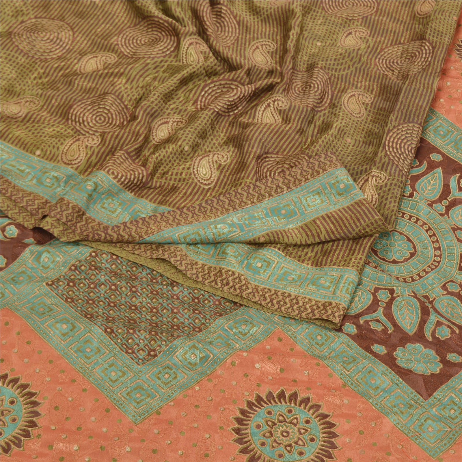 Sanskriti Vintage Indian Sarees Moss Crepe Printed Painted Sari 5YD Craft Sustainable Fabric