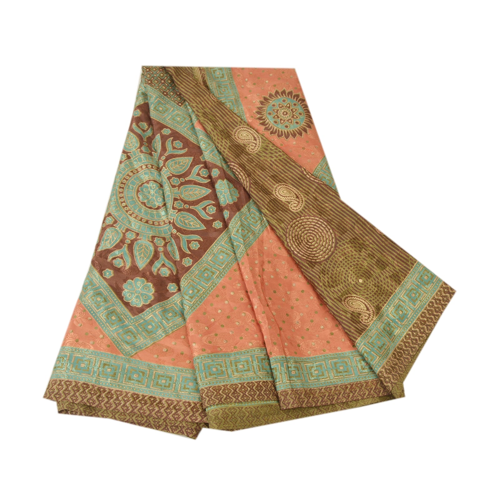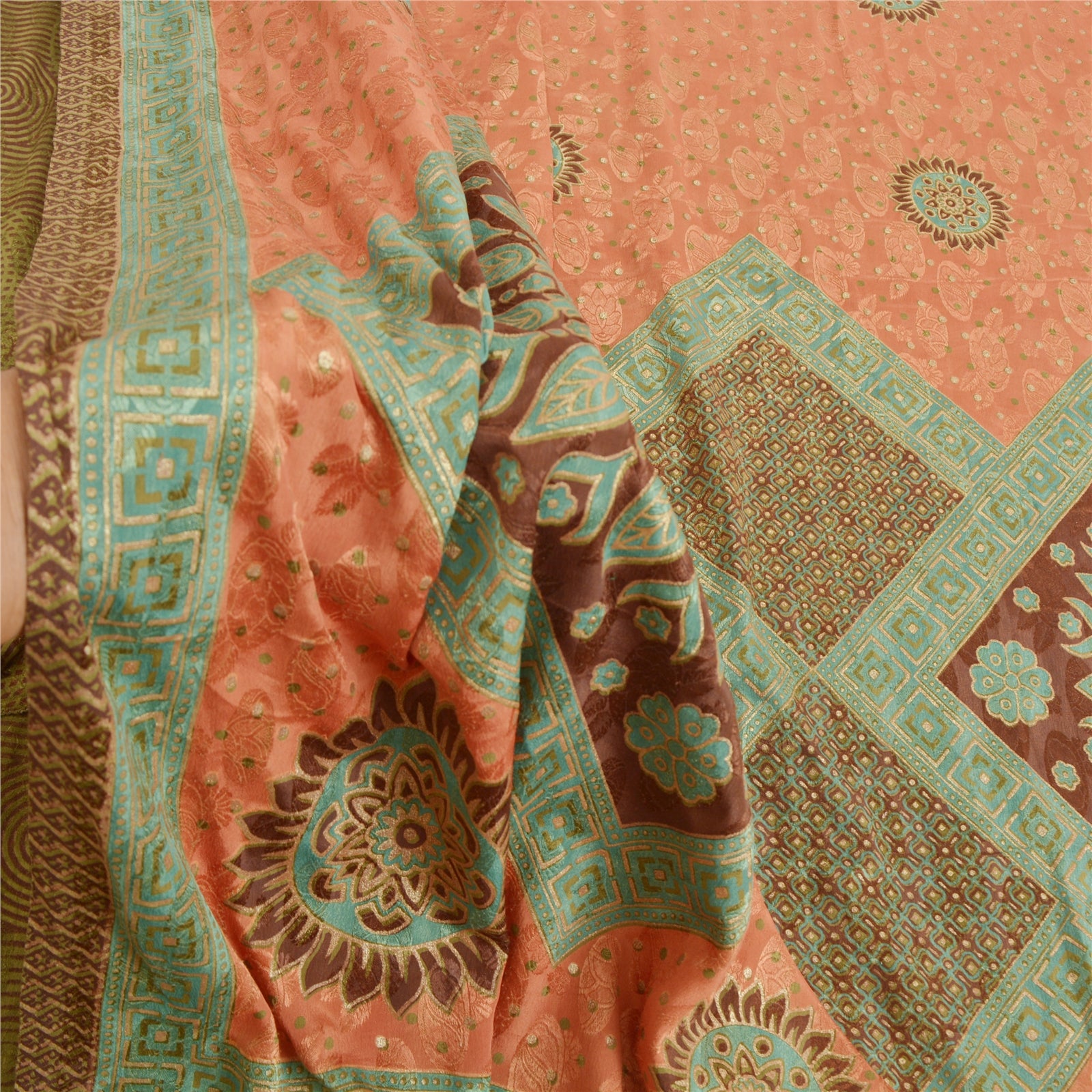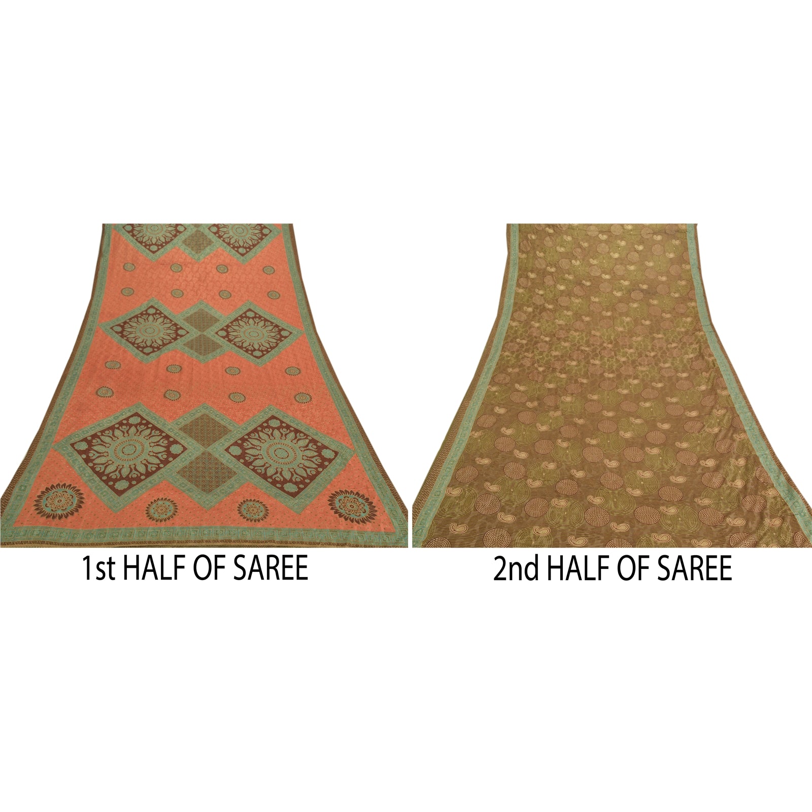 Sanskriti Vintage Indian Sarees Moss Crepe Printed Painted Sari 5YD Craft Sustainable Fabric