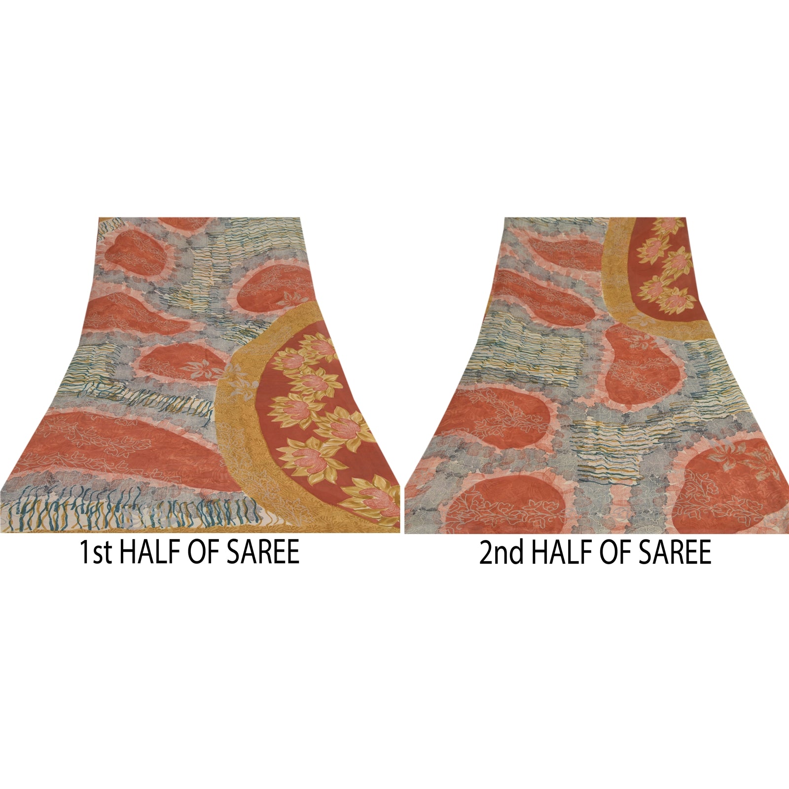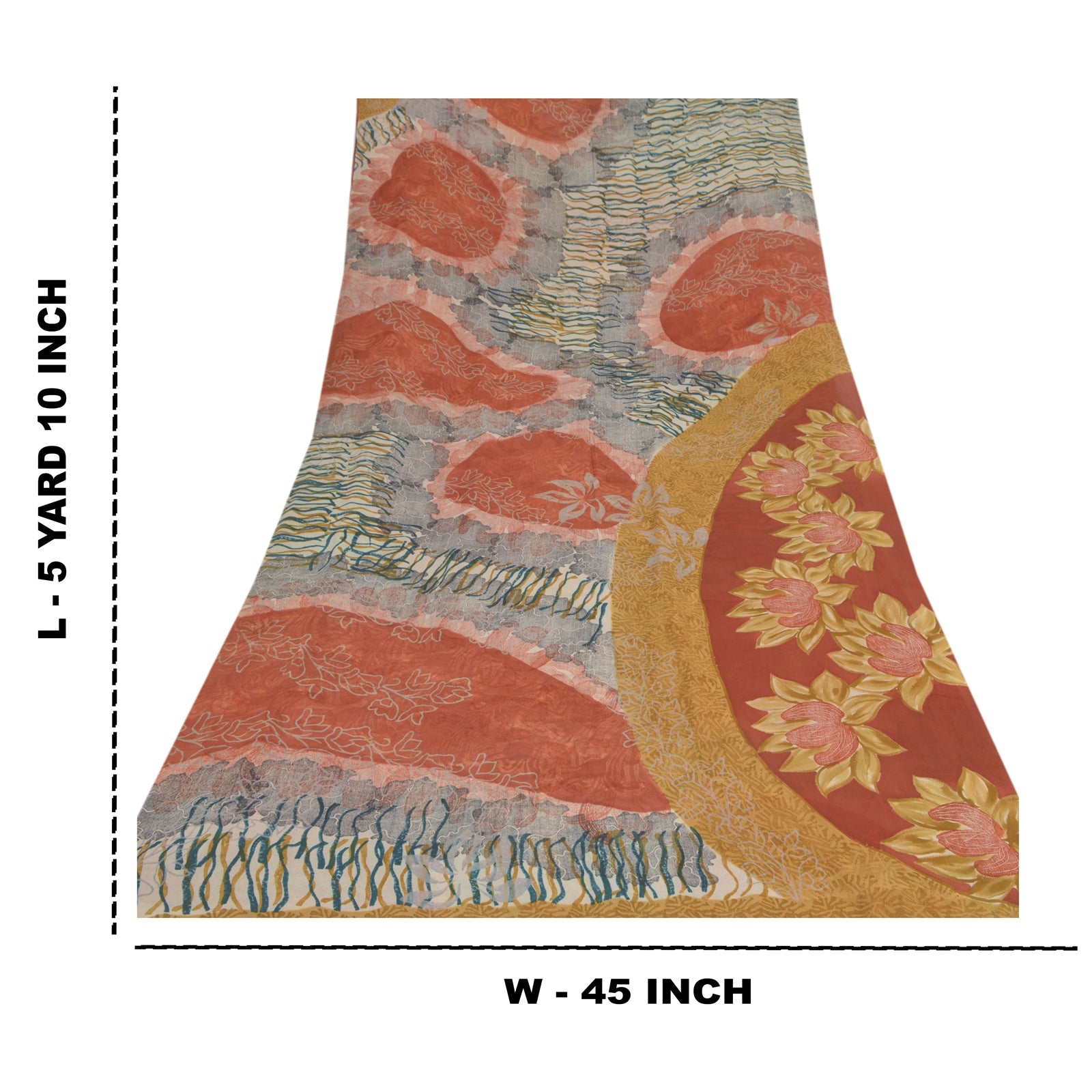 Sanskriti Vintage Indian Sari Pure Georgette Silk Printed Sustainable Fabric Craft Sarees