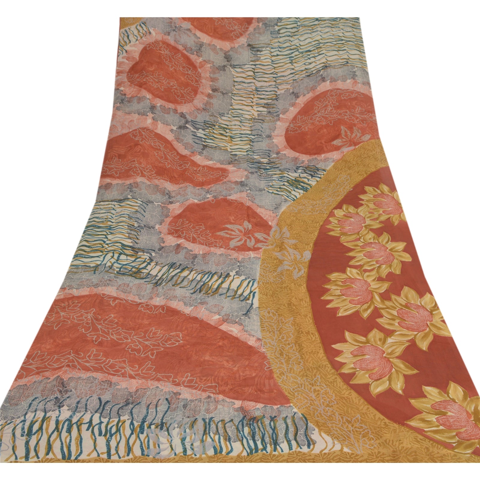 Beautiful Multi Color Colored Saree 100% Pure Georgette Silk Printed Base Sustainable Fabric All over sari has printed floral & abstract design. This unique vintage saree can be used for various crafting ideas even if you don't want to use it as a sari. Design a dress, use it as a throw, as window dressing, upholstery, sarongs, table linen and much more. Let your creative juices flow and use this decorated Sustainable Fabric in multiple fashion.