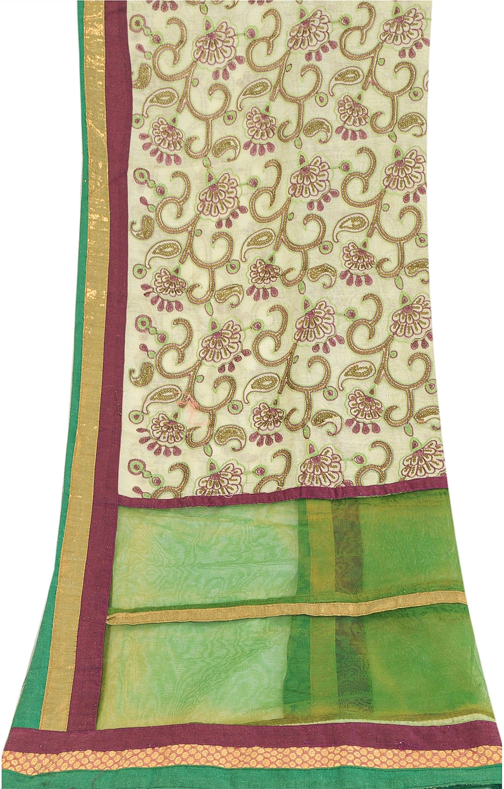 THE ITEM COLOR OR SHADE MAY BE DARKER OR LIGHTER THAN THE PICTURE.' Beautiful Ivory & green colored art silk Hand embroidered long scarf/dupatta. The center portion has floral & paisley design with green/purple/brown thread work, golden sequins work. Border of the dupatta has floral design embellished with golden lace work, purple & pink woven fabric patch work. Also you can see green net patch work on both ends. This dupatta/stole can be used for various crafting ideas too. Use it for dress designing, as a throw, as window dressing, upholstery, table linen and much more. Let your creative juices flow. Shipping note: International buyers please note: Import duties, taxes, and charges are not included in the item price or postage cost. These charges are the buyer's responsibility. Please check with your country's customs office to determine what these additional costs will be prior to bidding or buying. Buyer will pay custom duty/tax. It is calculated and charged differently by every country. As a seller I do not have any control over it. VAT or sales tax is calculated by the platform at the time of checkout. Customs charge is payable at the time of delivery.'