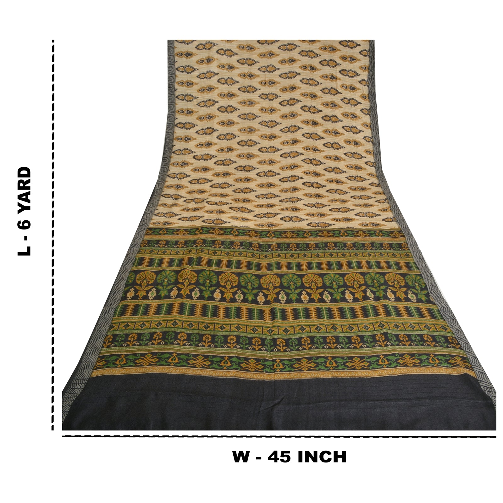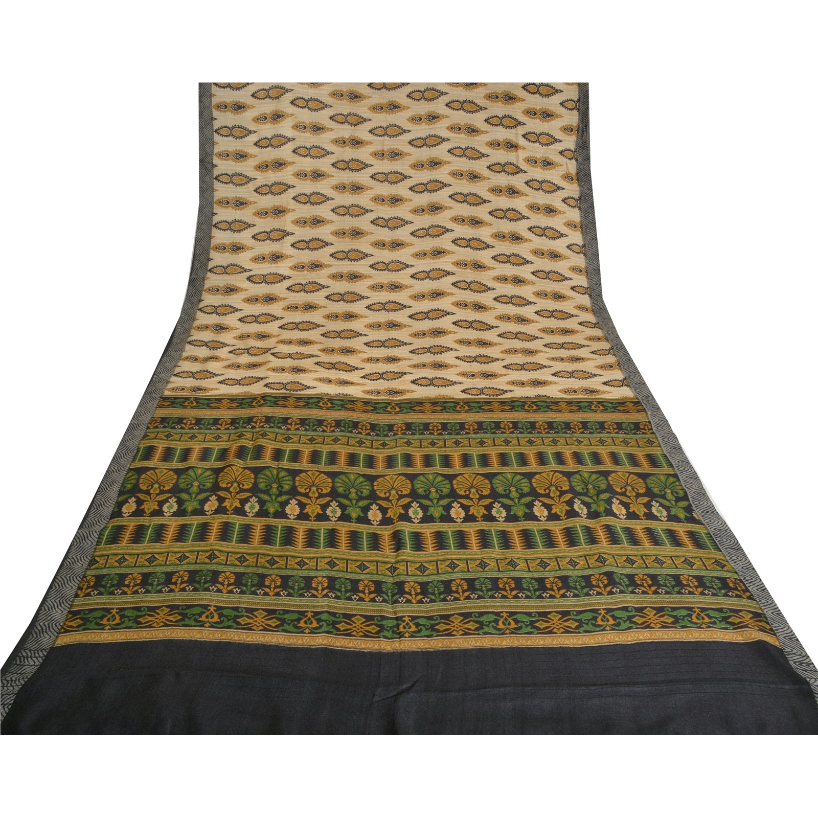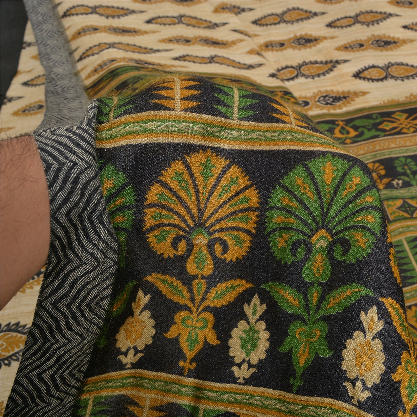 Sanskriti Vintage Ivory Heavy Indian Sarees 100% Pure Woolen Sustainable Fabric Printed Sari