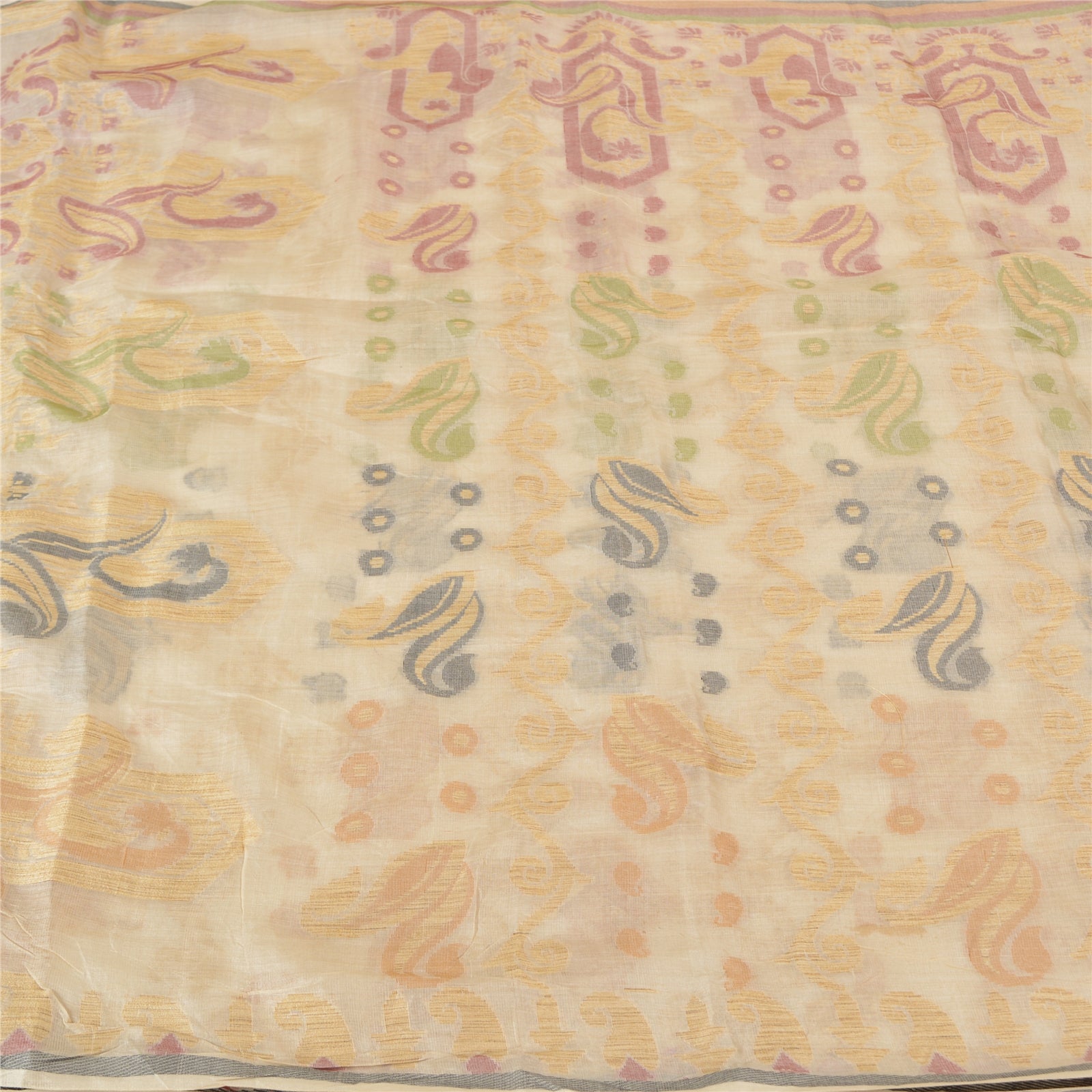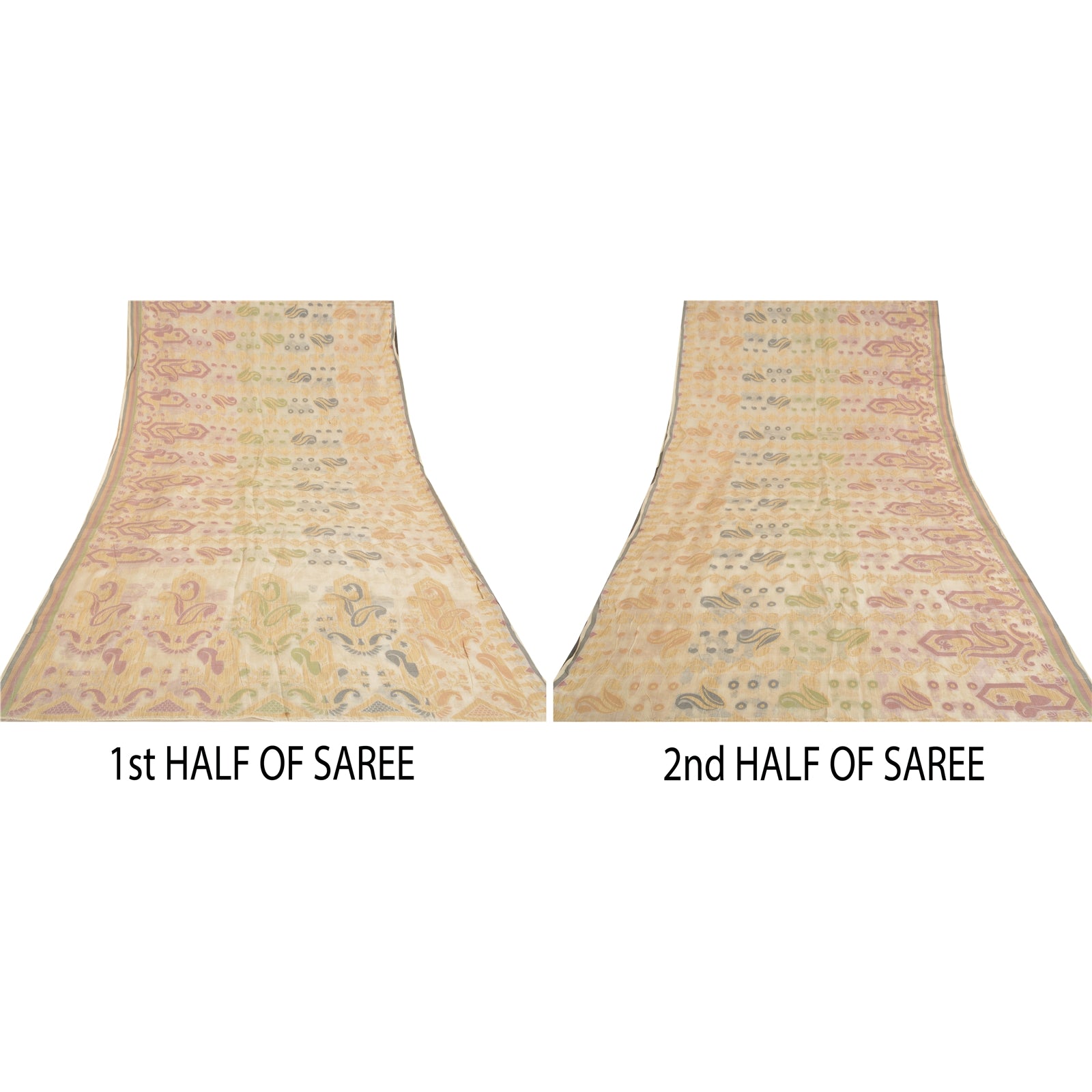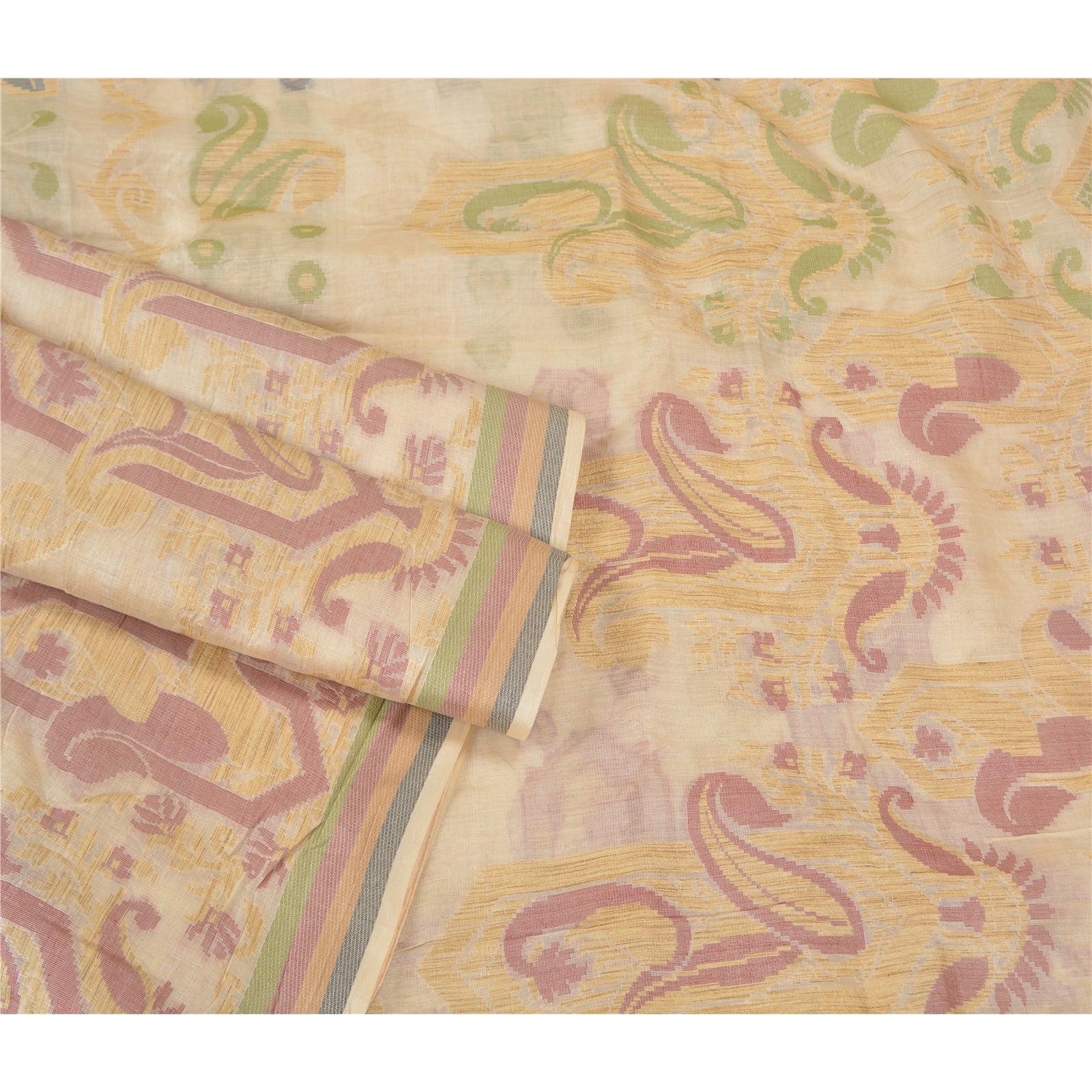 Sanskriti Vintage Ivory Indian Sarees 100% Pure Silk Woven Sari Craft Sustainable Fabric