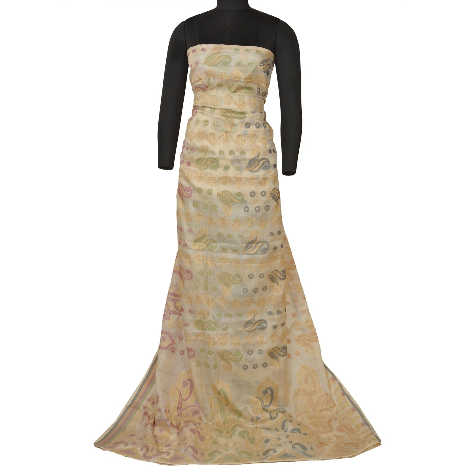 'THE ITEM COLOR OR SHADE MAY BE DARKER OR LIGHTER THAN THE PICTURE.' Beautiful ivory colored pure silk woven sari. Pallu & border features multi color woven work with floral & paisley design. The center of the saree has similar woven floral design. This saree can be used for various crafting ideas too. Use it for dress designing, as a throw, as window dressing, upholstery, table linen and much more. Let your creative juices flow. 'International buyers please note: Import duties, taxes, and charges are not included in the item price or postage cost. These charges are the buyer's responsibility. Please check with your country's customs office to determine what these additional costs will be prior to bidding or buying. Buyer will pay custom duty/tax. It is calculated and charged differently by every country. As a seller I do not have any control over it. VAT or sales tax is calculated by the platform at the time of checkout. Customs charge is payable at the time of delivery.'