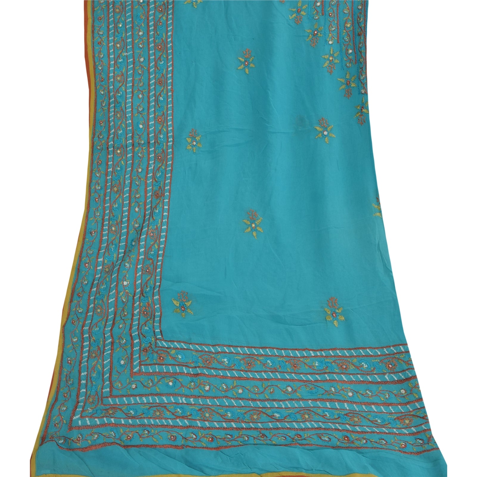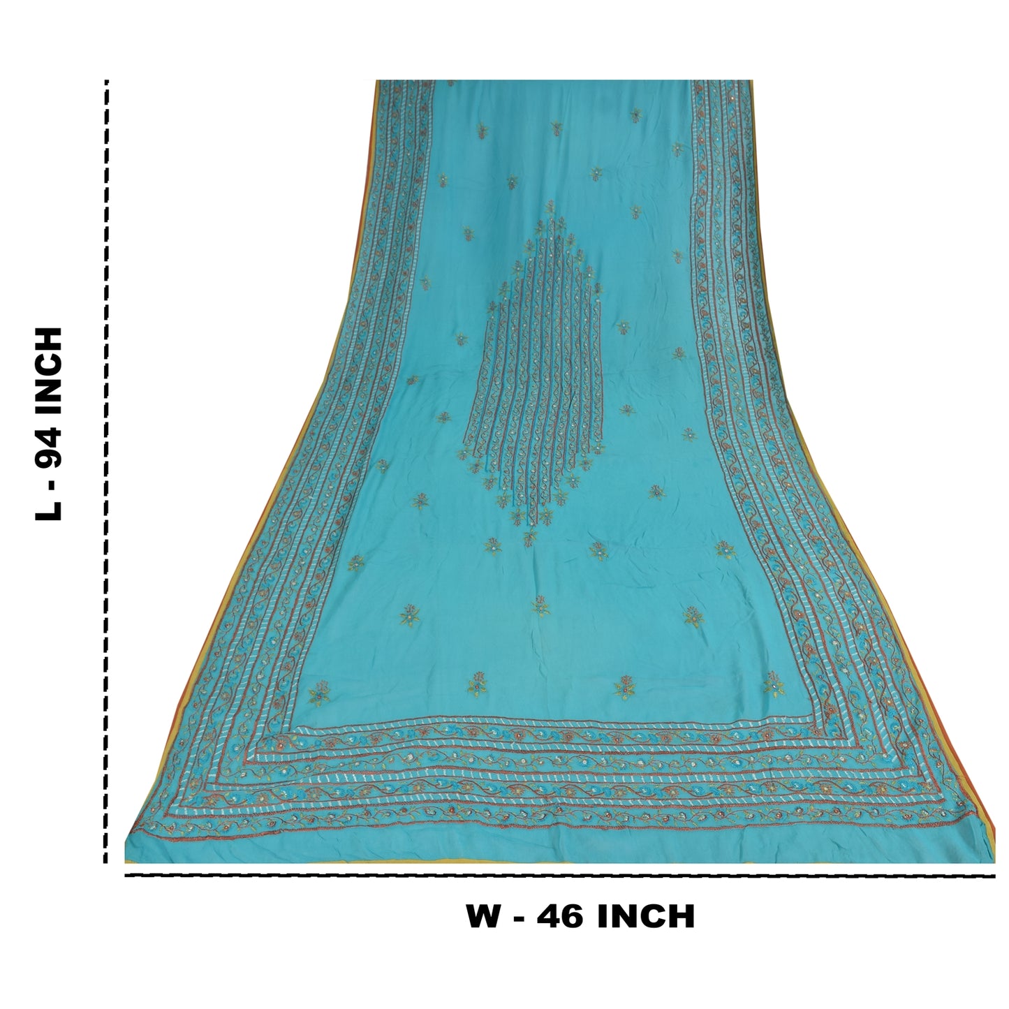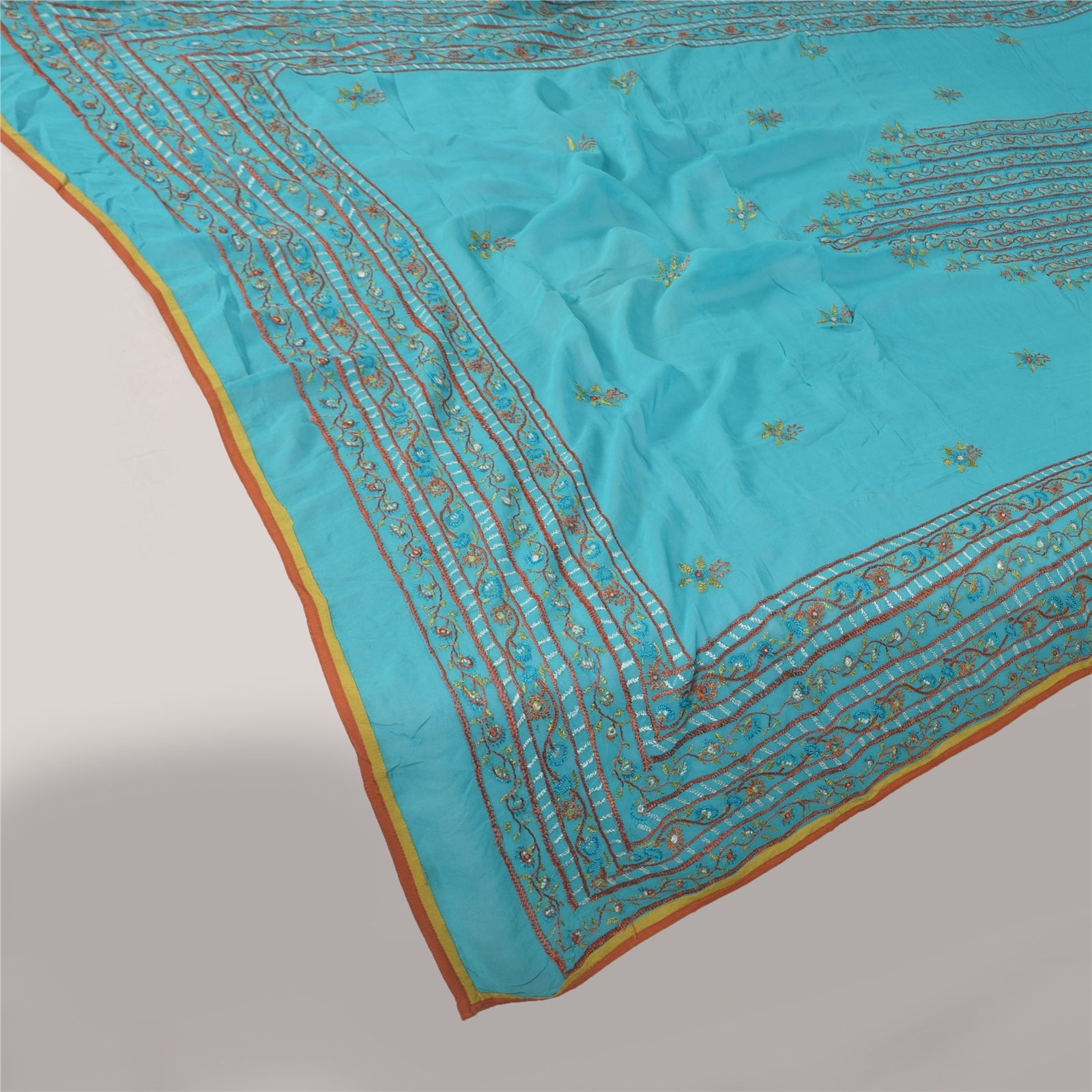 Sanskriti Vintage Light Blue Dupatta Long Stole Pure Georgette Hand Made Scarves