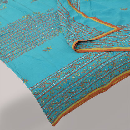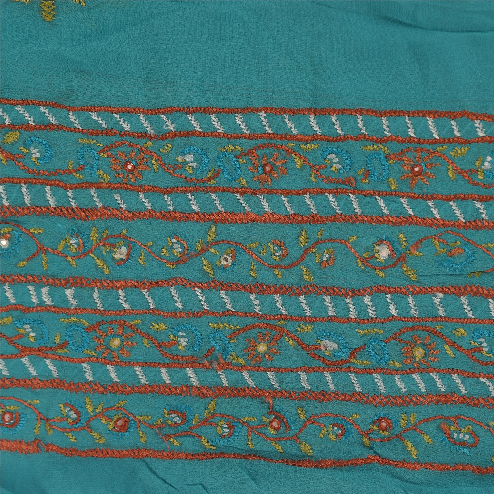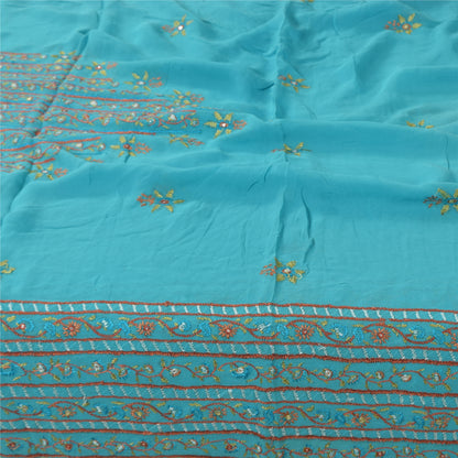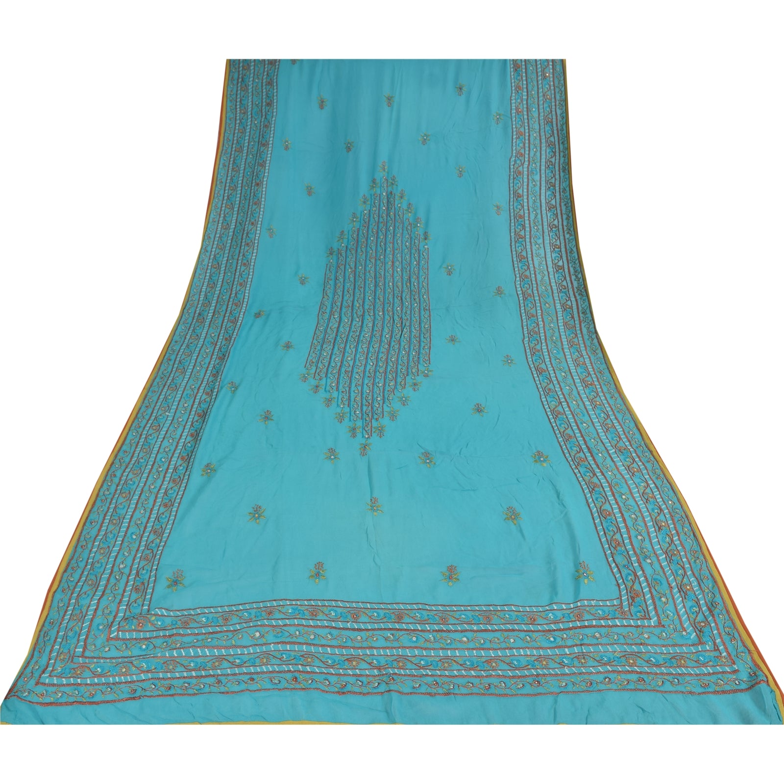 Sanskriti Vintage Light Blue Dupatta Long Stole Pure Georgette Hand Made Scarves