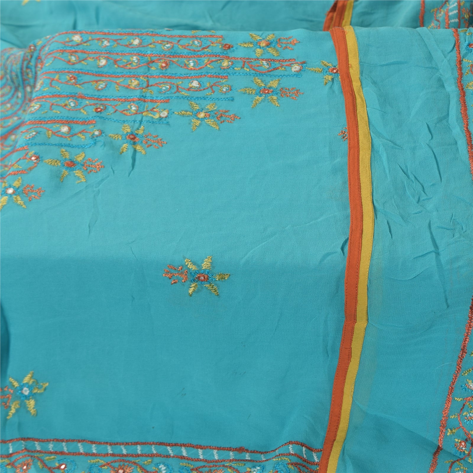 'THE ITEM COLOR OR SHADE MAY BE DARKER OR LIGHTER THAN THE PICTURE.' Beautiful light blue pure georgette hand embroidered long scarf/dupatta. Center portion of the dupatta has floral design with blue, brown, green & white color thread work. Border has floral design embellished with Similar thread work is really enhancing beauty of the dupatta/stole. This dupatta/stole can be used for various crafting ideas too. Use it for dress designing, as a throw, as window dressing, upholstery, table linen and much more. Let your creative juices flow. Shipping note: International buyers please note: Import duties, taxes, and charges are not included in the item price or postage cost. These charges are the buyer's responsibility. Please check with your country's customs office to determine what these additional costs will be prior to bidding or buying. Buyer will pay custom duty/tax. It is calculated and charged differently by every country. As a seller I do not have any control over it. VAT or sales tax is calculated by the platform at the time of checkout. Customs charge is payable at the time of delivery.' SKU: HD-7779