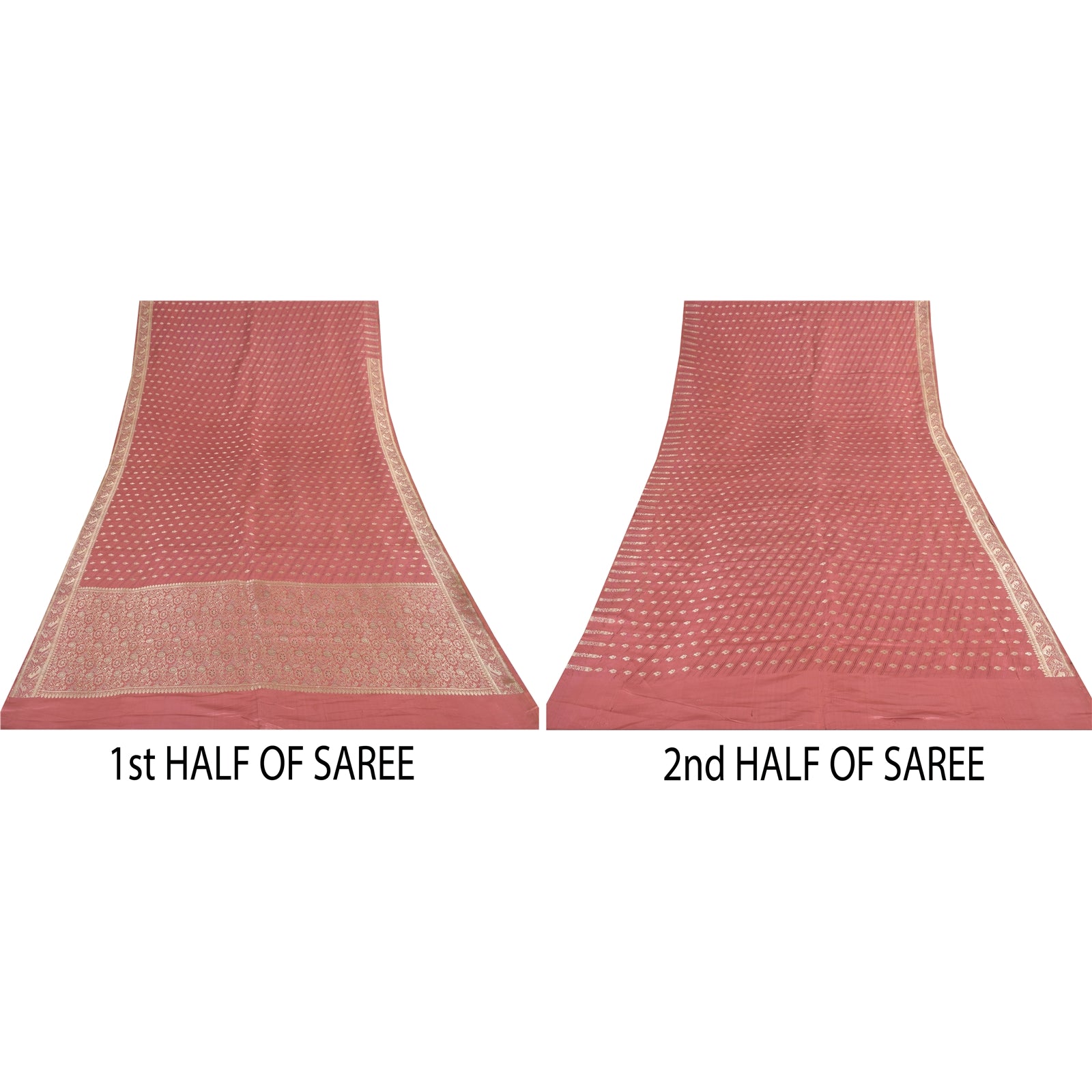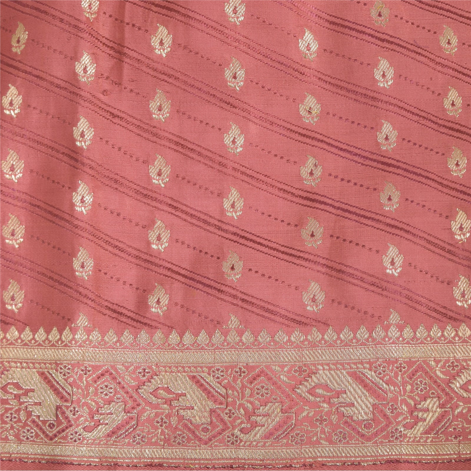 Sanskriti Vintage Light Pink Sarees Pure Satin Silk Woven Sari 5yd Craft Fabric