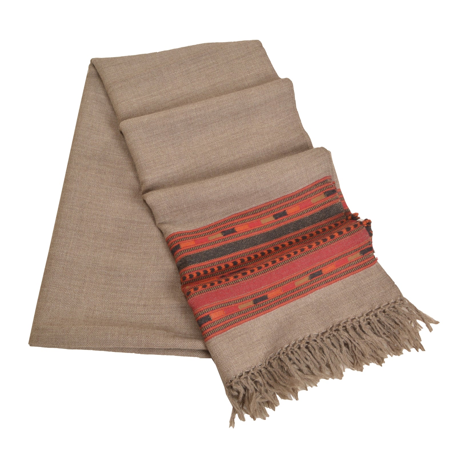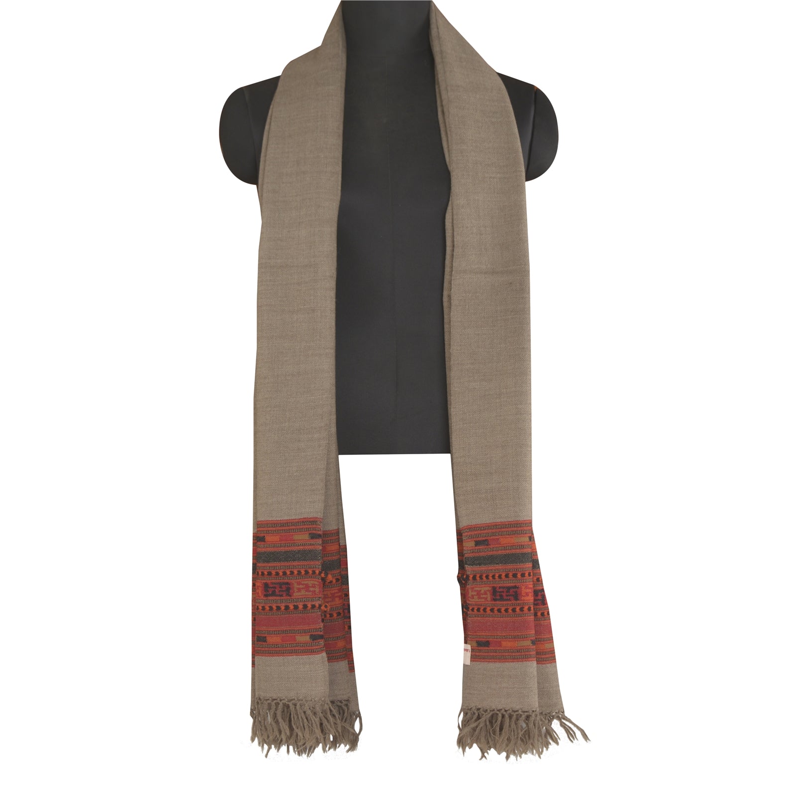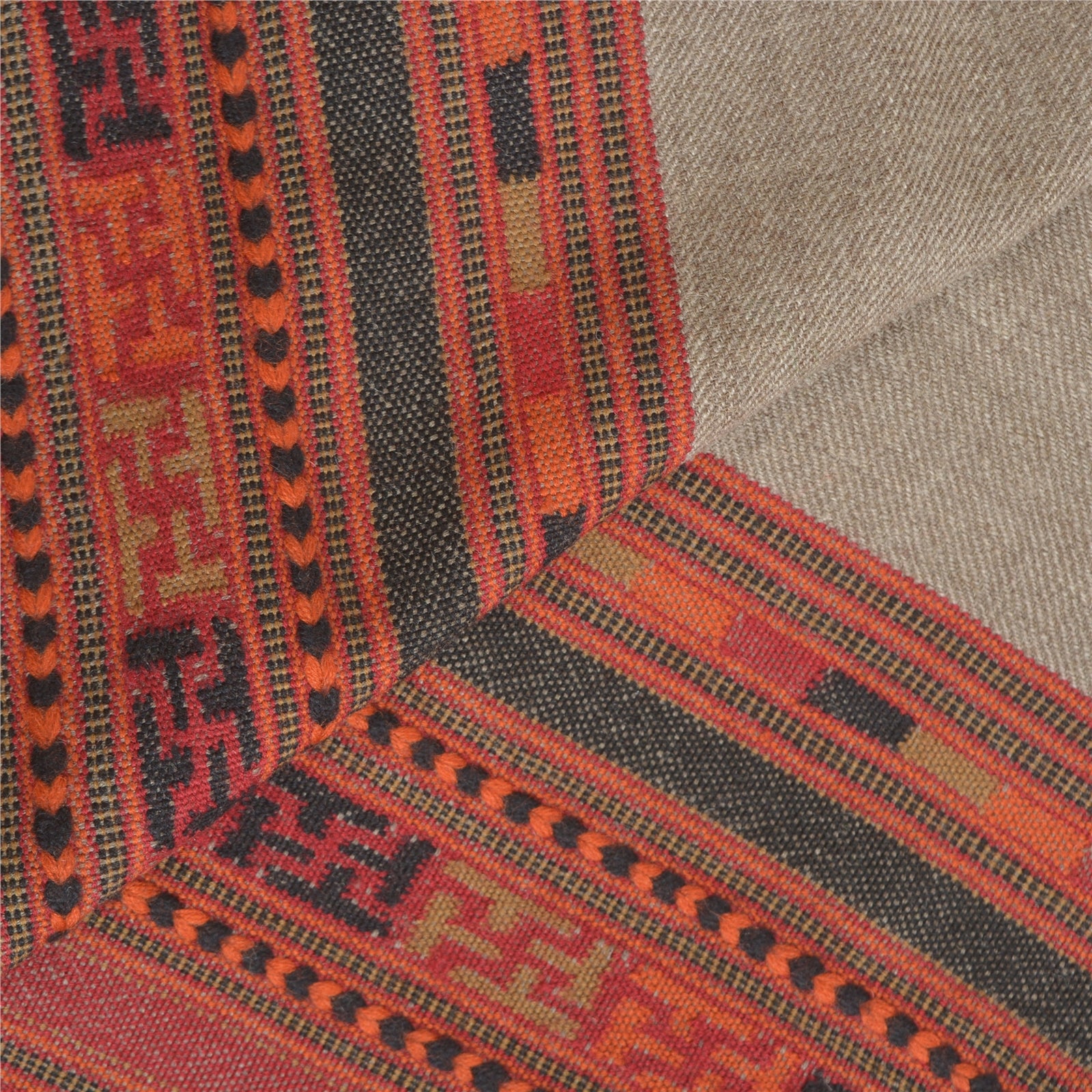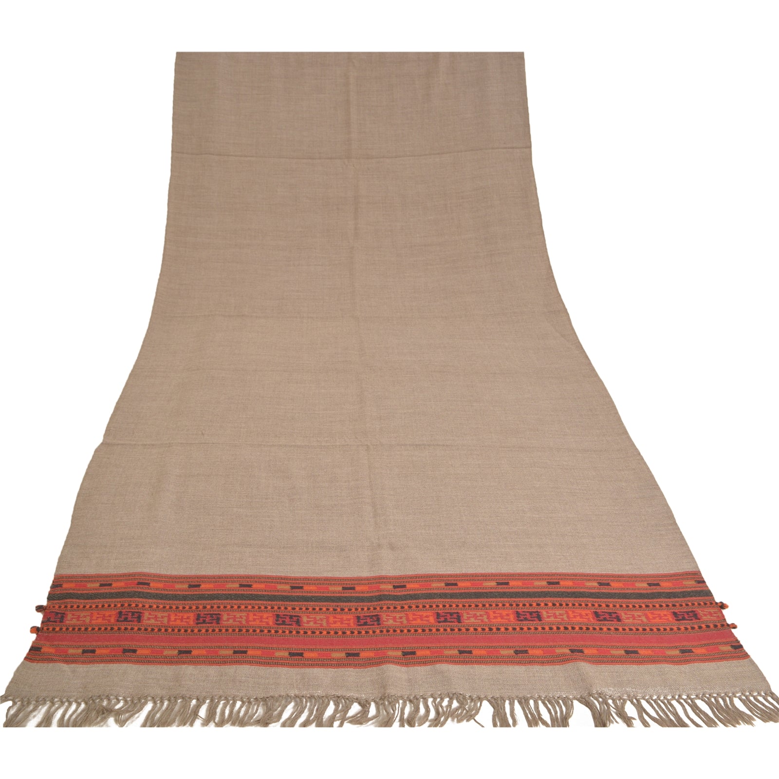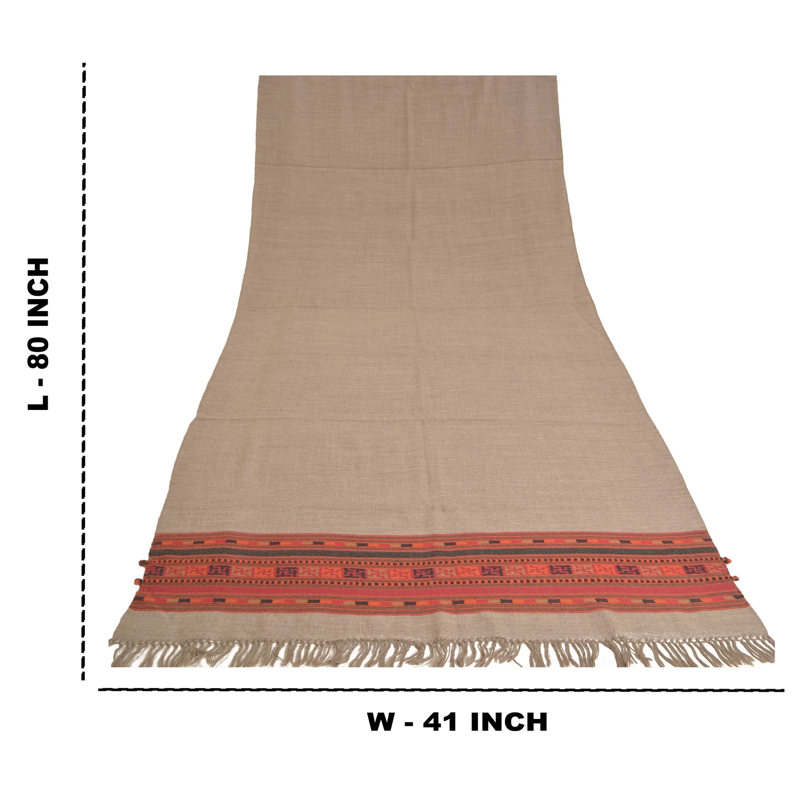Sanskriti Vintage Long 100% Pure Woollen Ash Grey Shawl Woven Scarf Stole