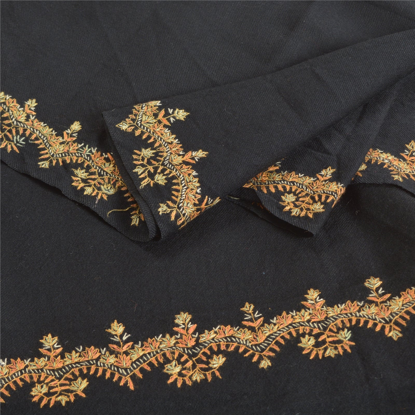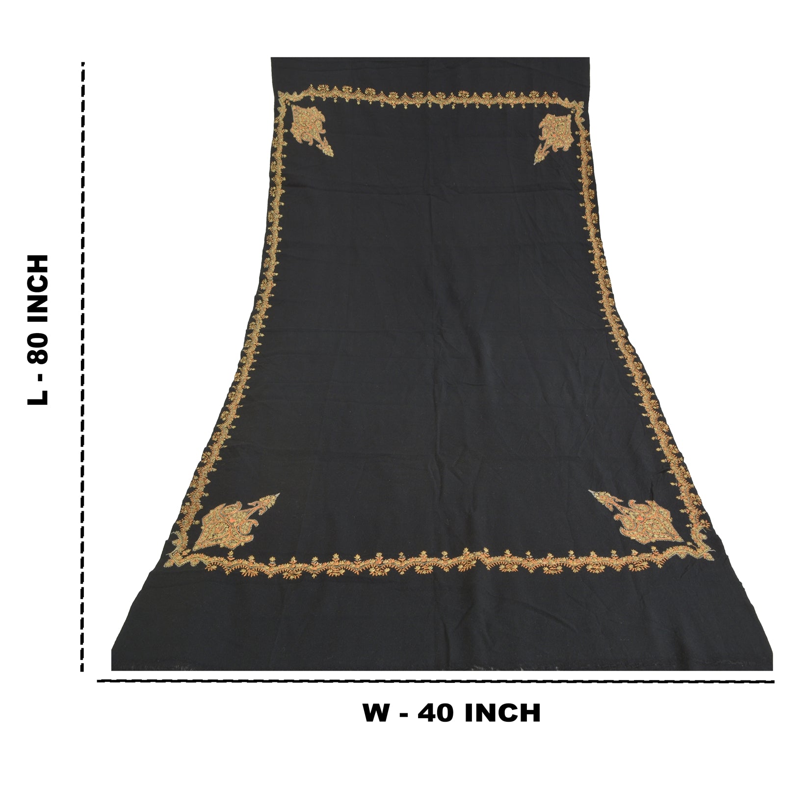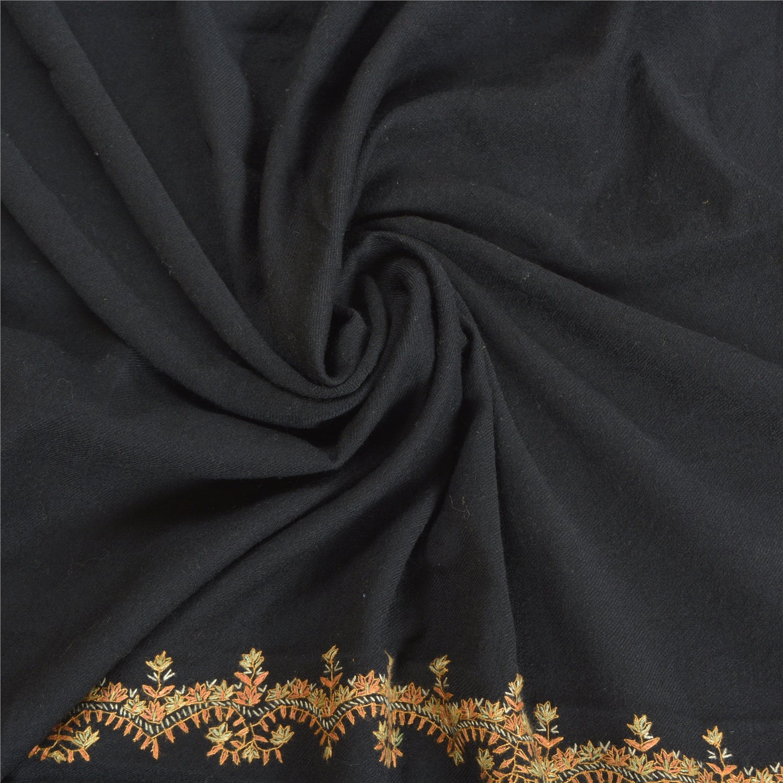 Sanskriti Vintage Long Black Pure Woolen Shawl Handmade Suzani Scarf Stole