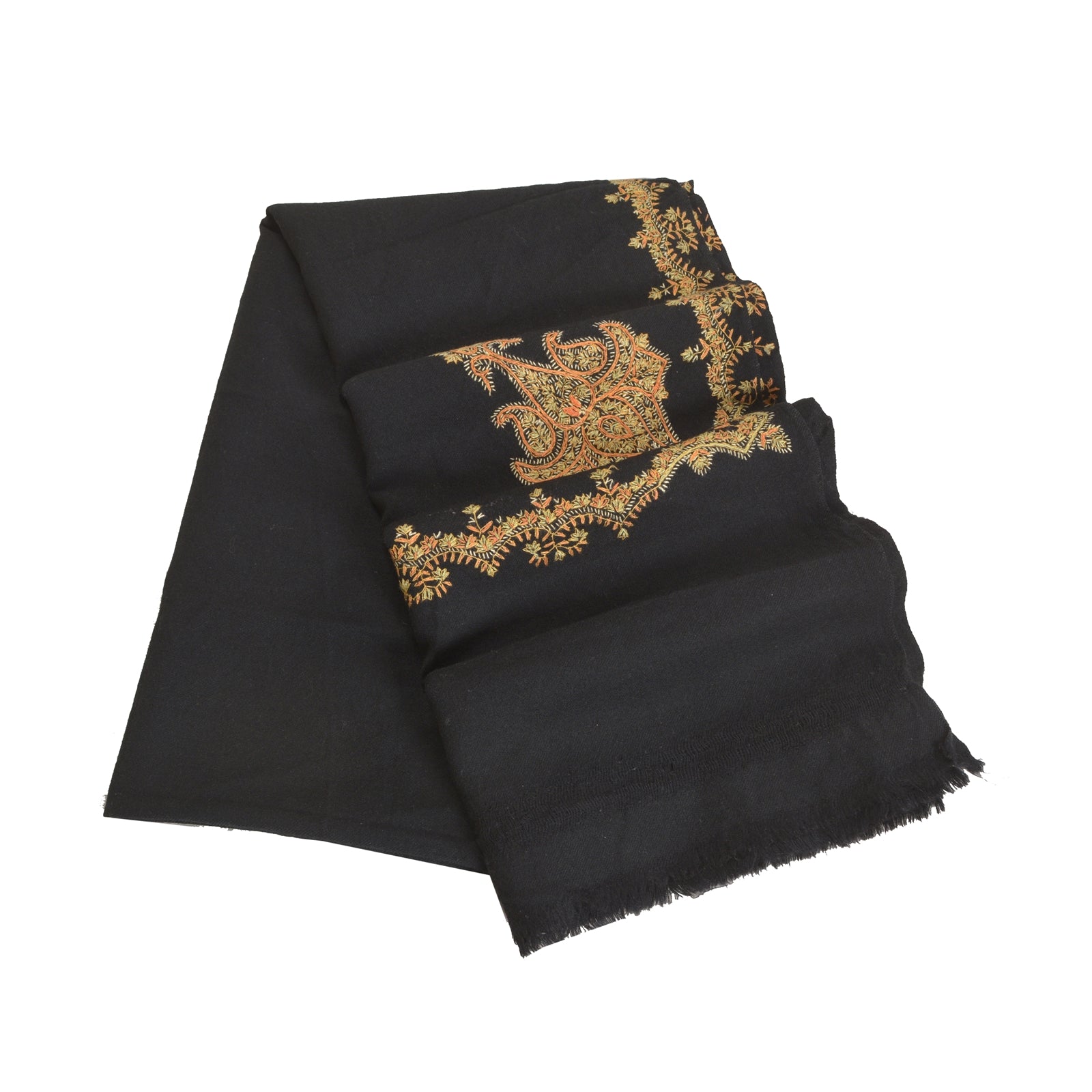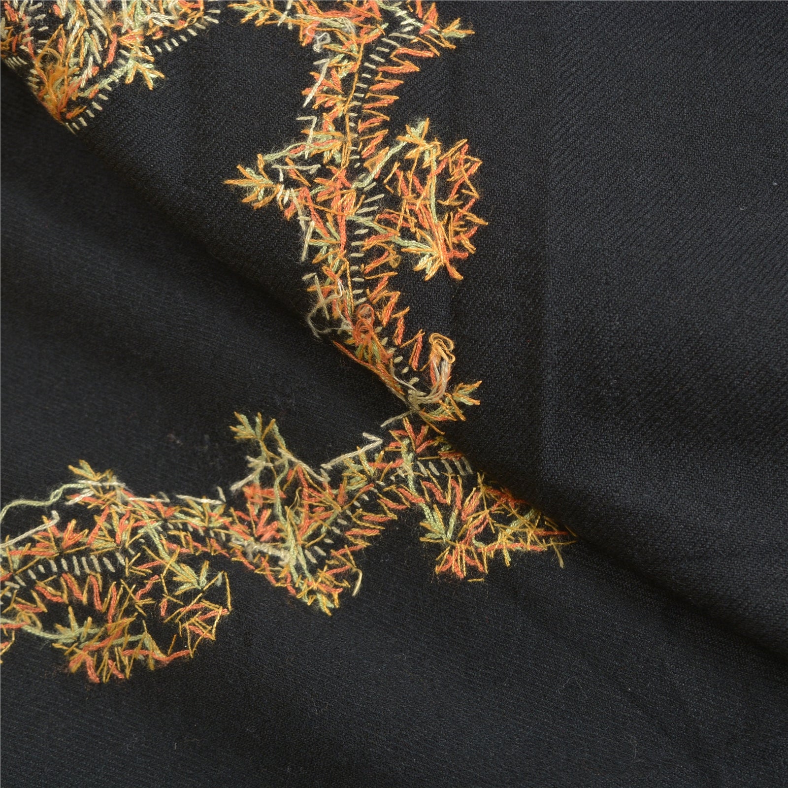 We Are Offering You A Vintage Black Color 100% Pure Woolen Stole/Shawl Which Adorns Hand Embroidered Suzani Work. Border has traditional handmade Suzani work with floral & paisley pattern are really enhancing beauty of the shawl. This cozy, warm and fuzzy stool is soft against skin due to the mellow woolen Sustainable Fabric. A truly gorgeous piece which will also make an admirable gift.