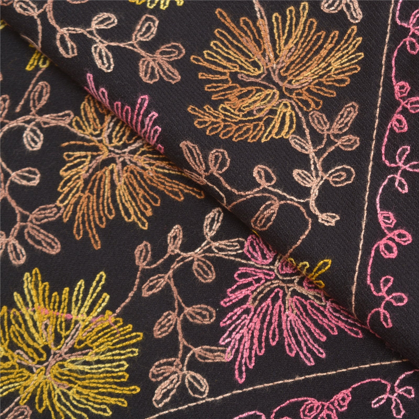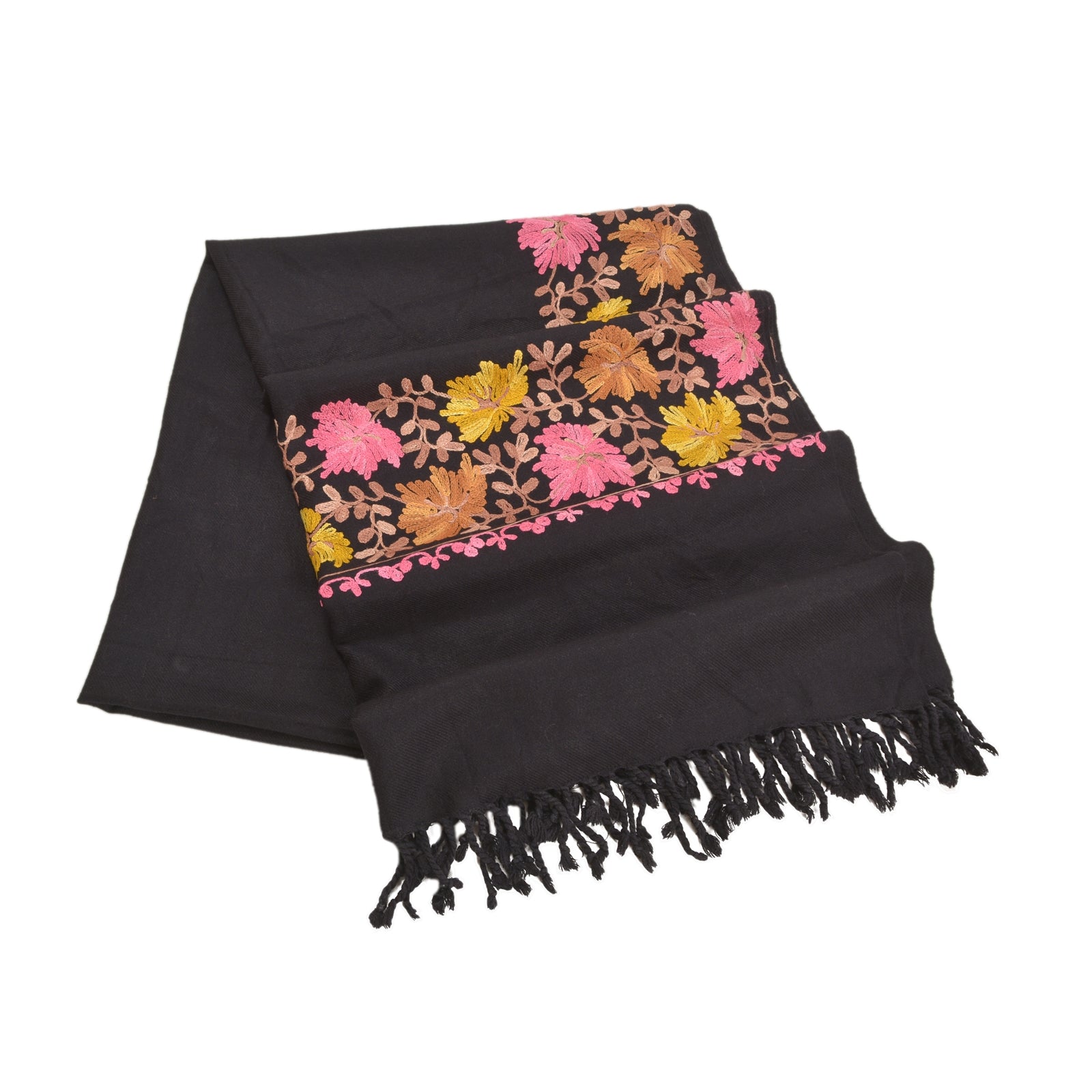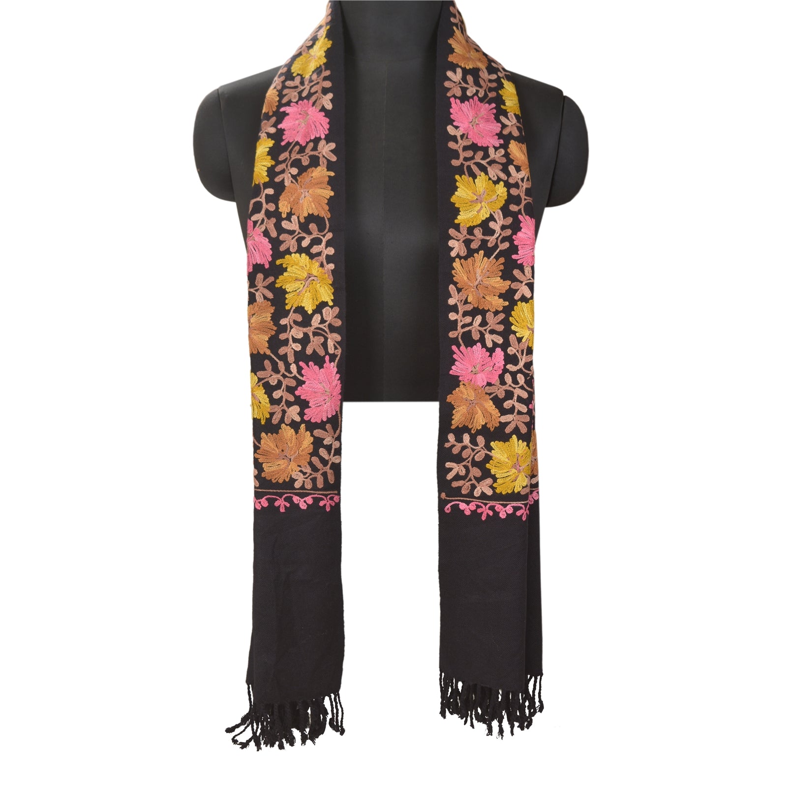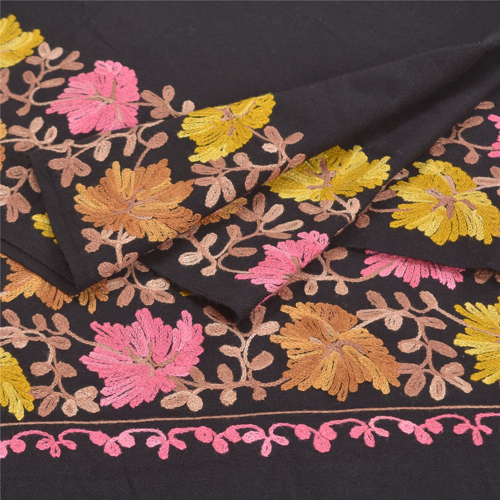 Sanskriti Vintage Long Black Woolen Shawl Handmade Ari Work Scarf Throw Stole