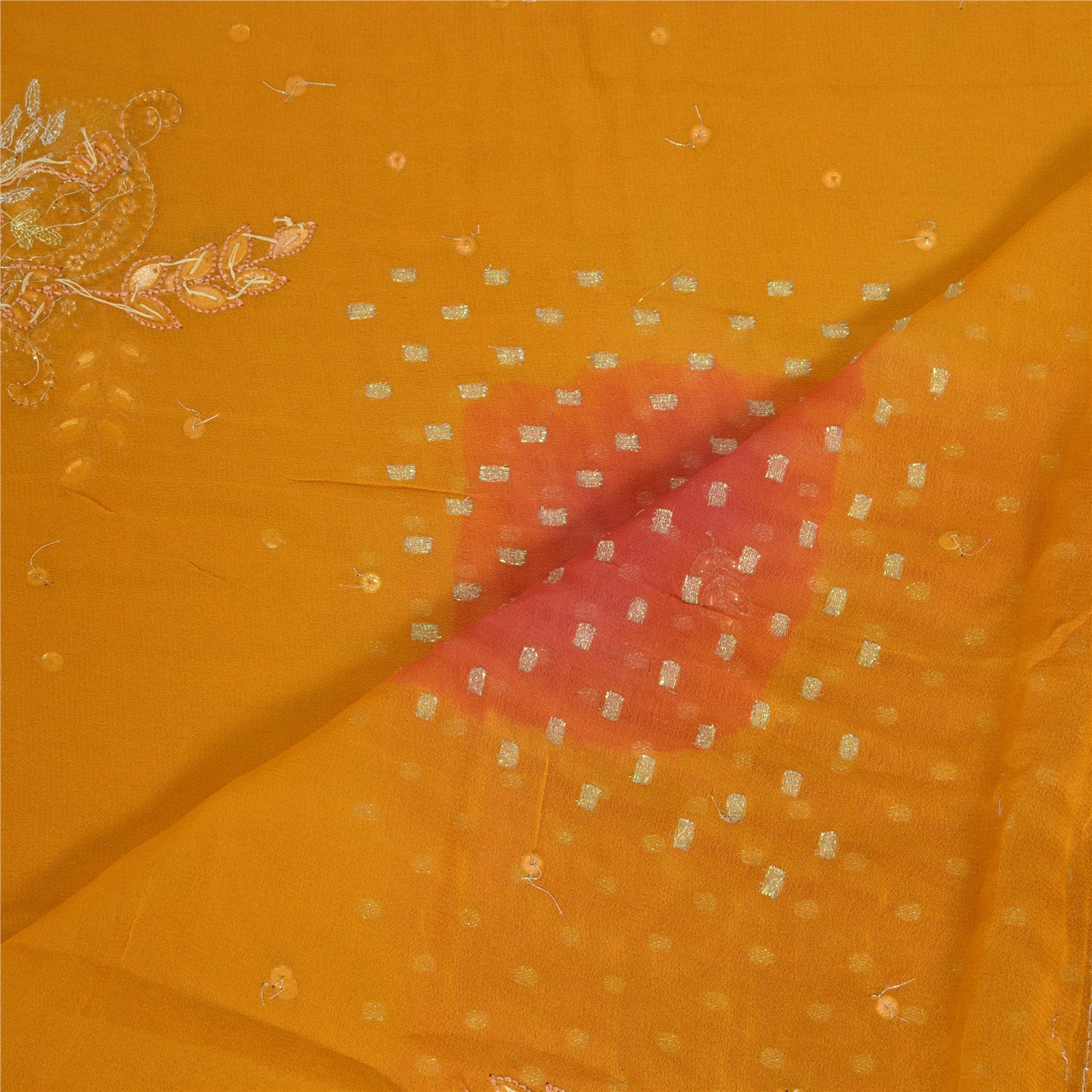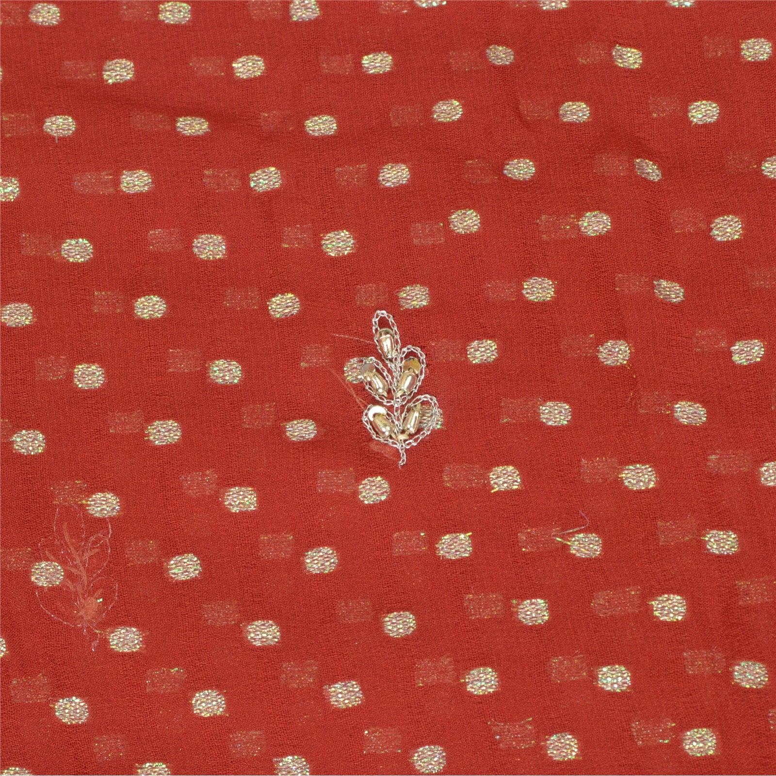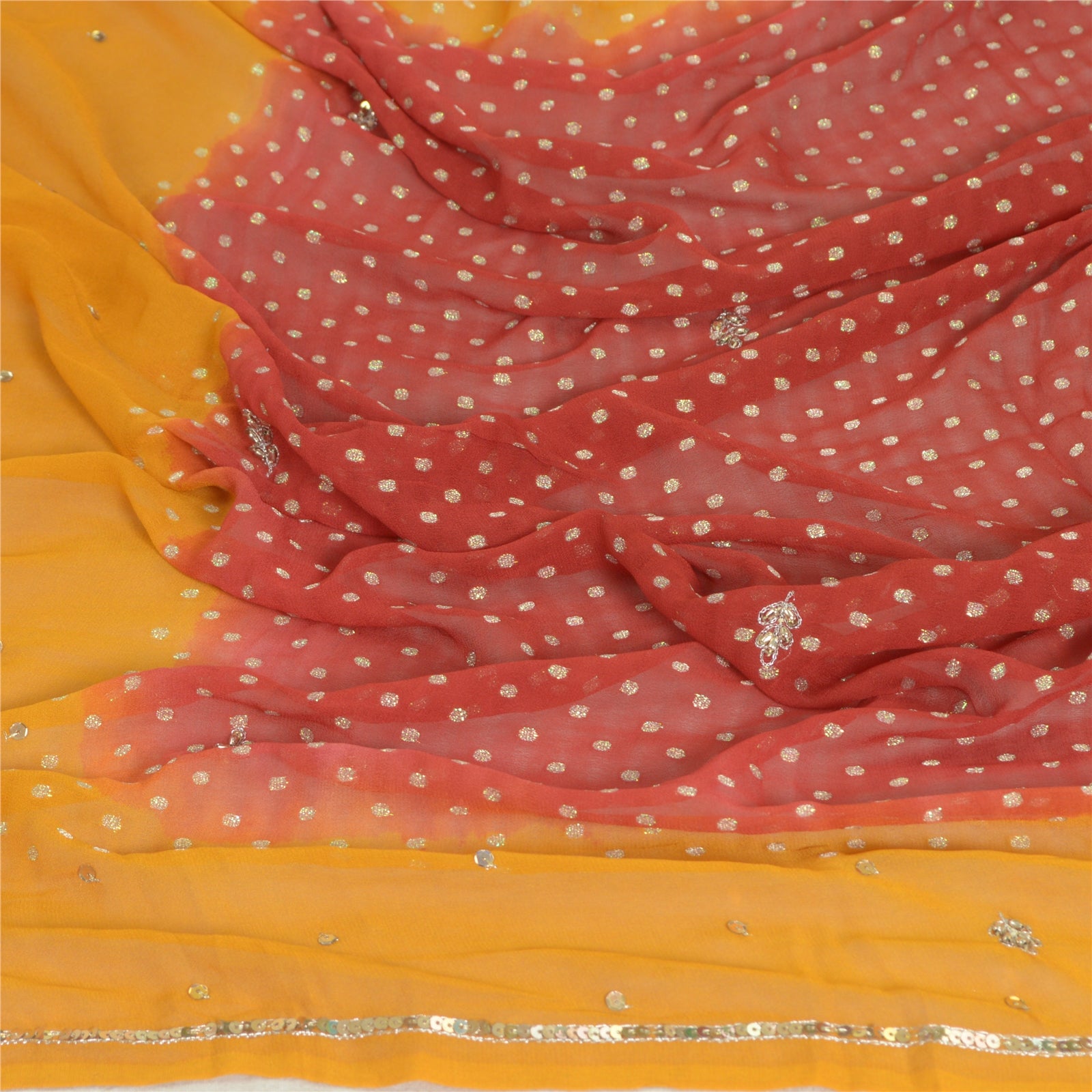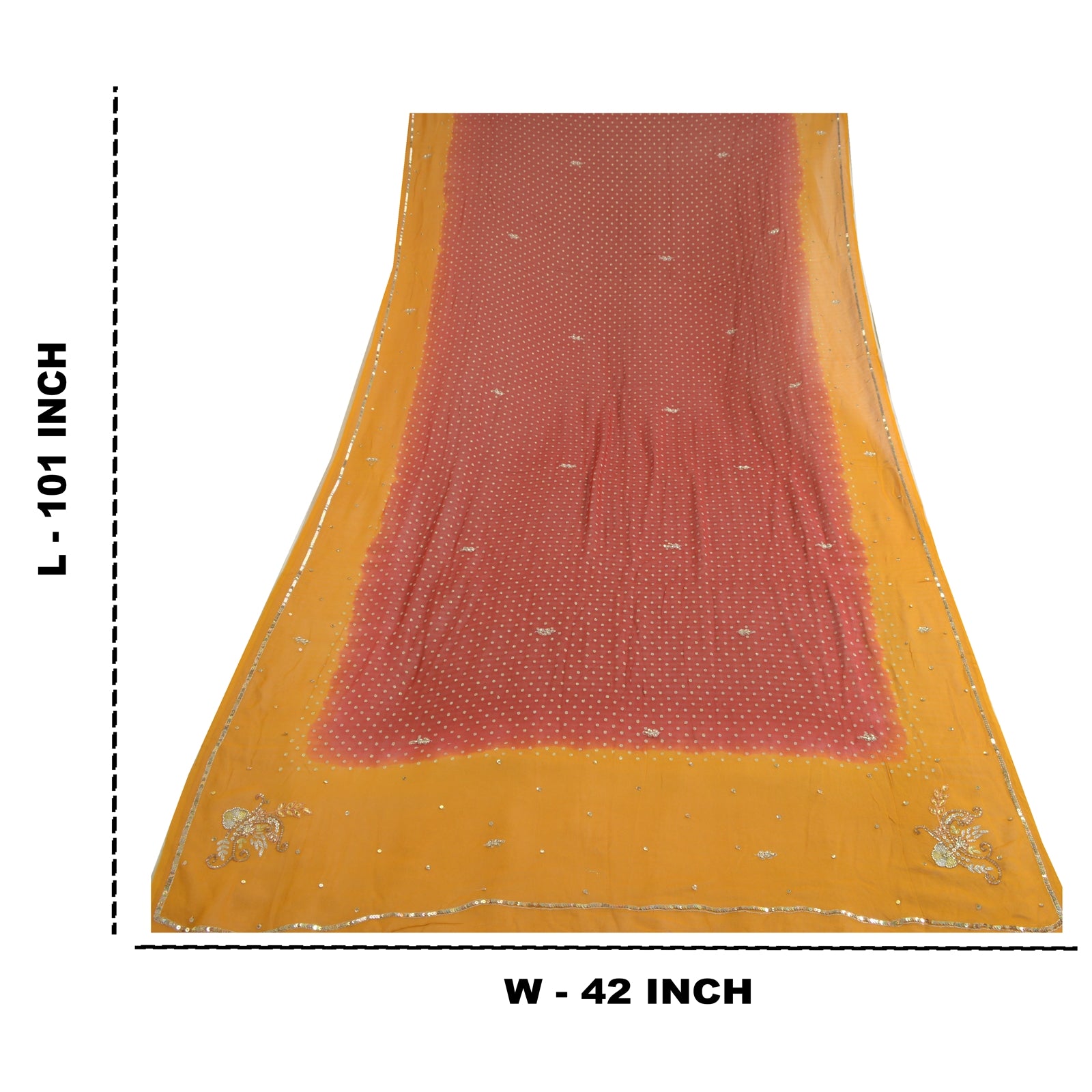 Sanskriti Vintage Long Dark Red/Mustard Dupatta/Stole Pure Georgette Silk Beaded