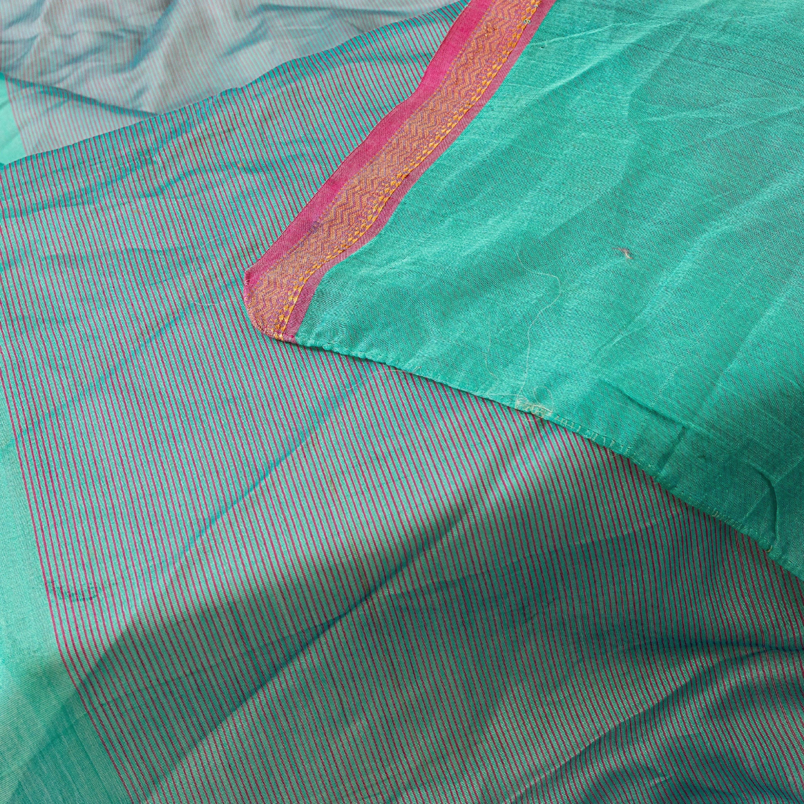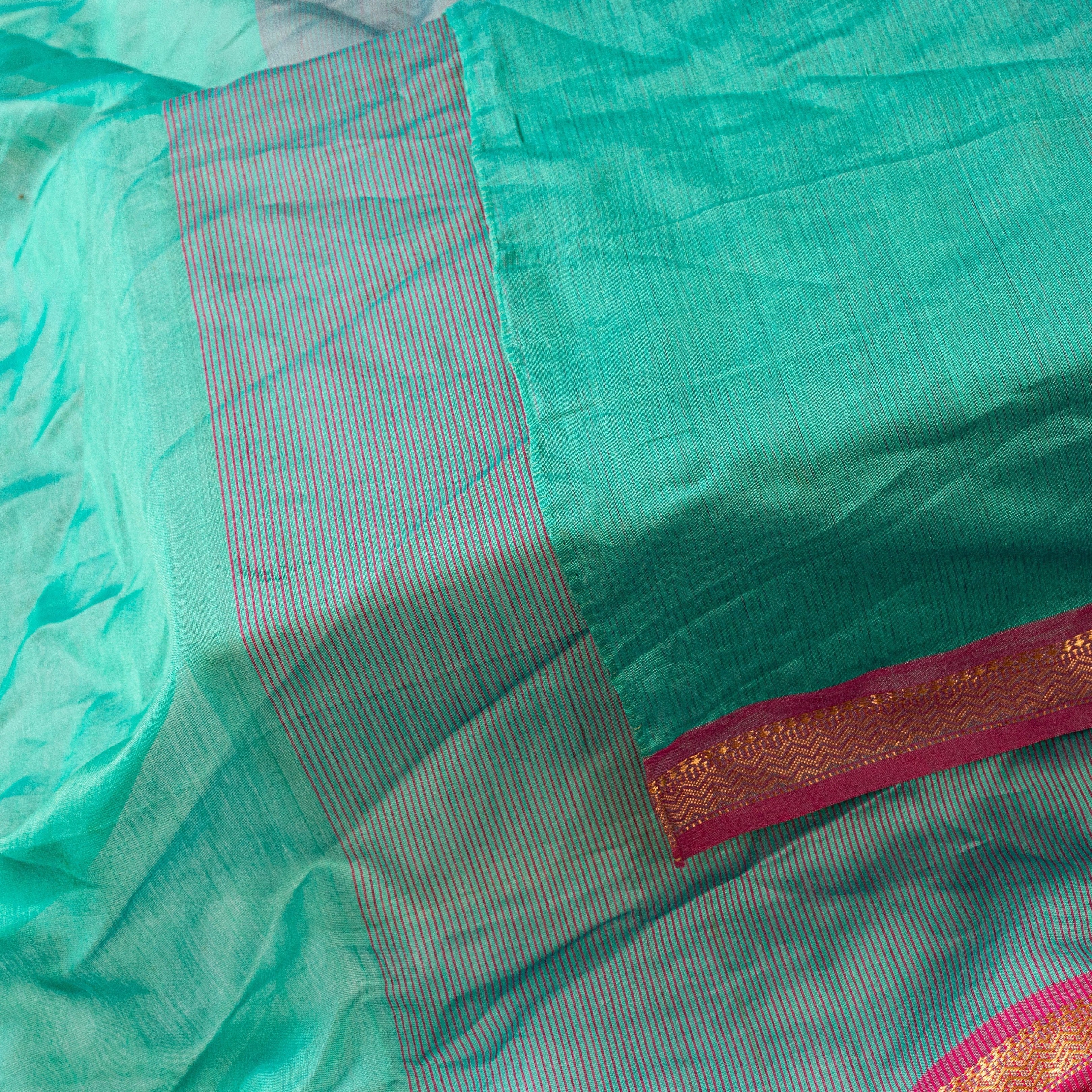Sanskriti Vintage Long Dupatta Stole Cotton Silk Green/Purple Woven Zari Scarves