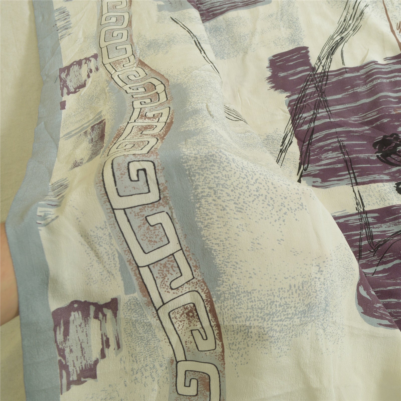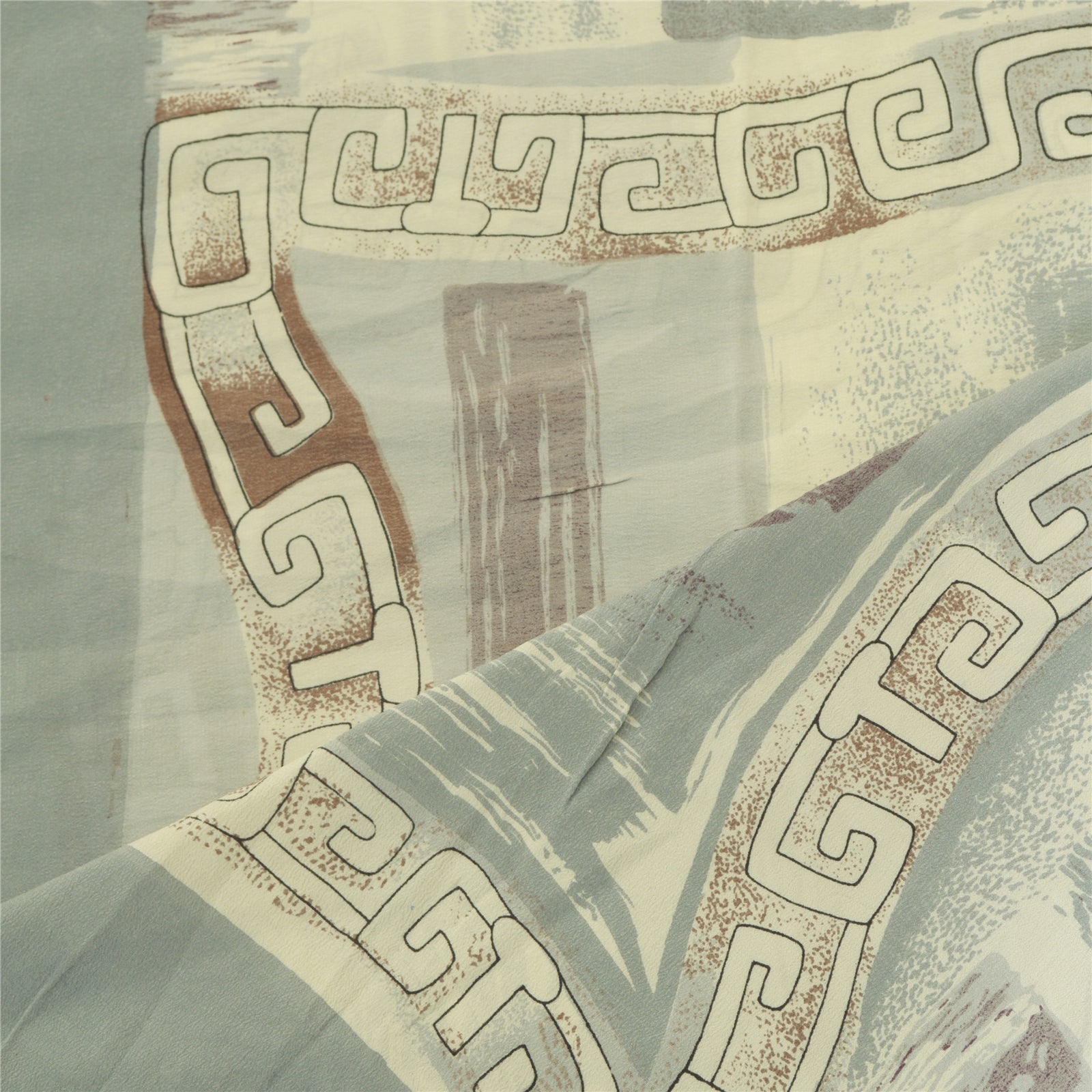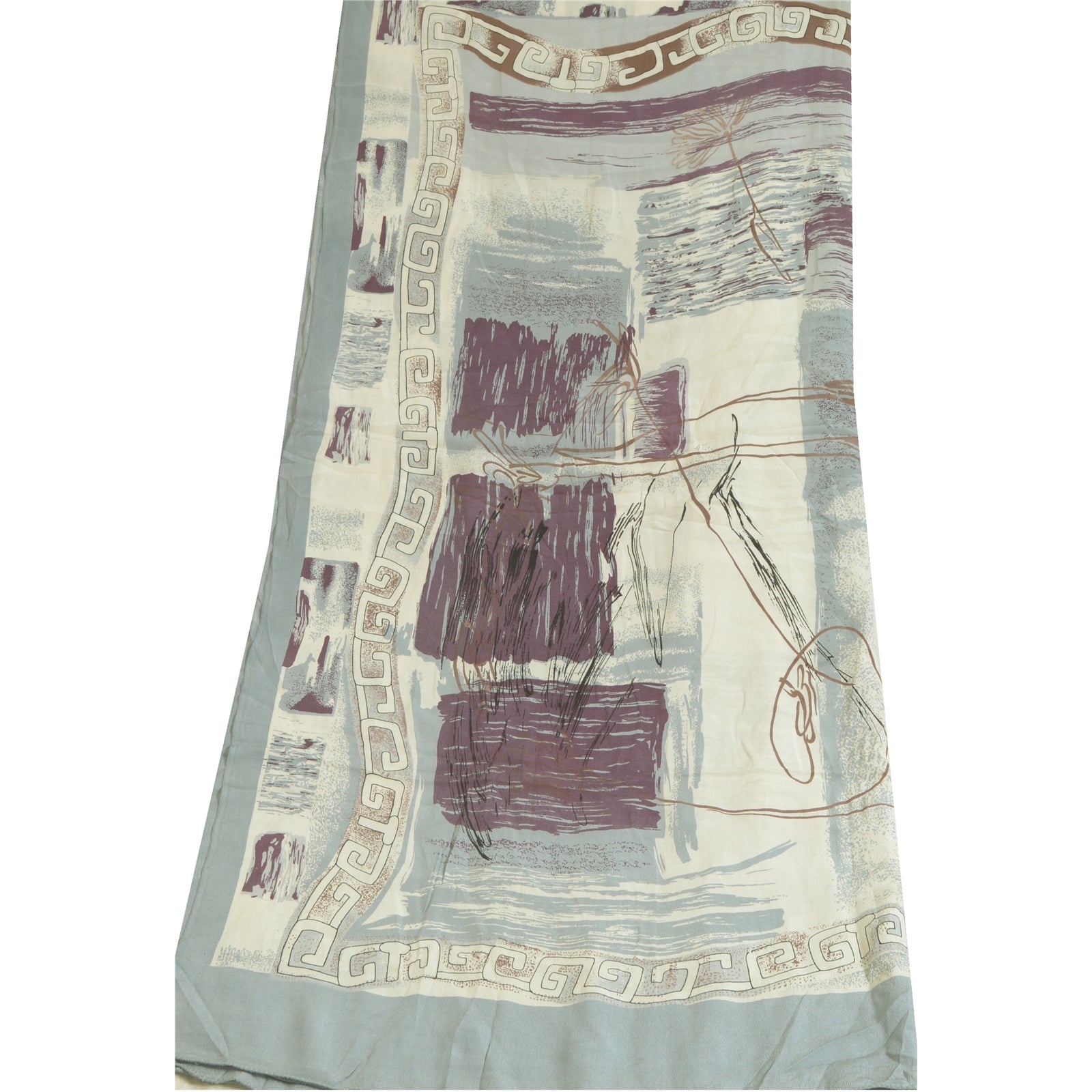 Sanskriti Vintage Long Grey/White Dupatta/Stole Pure Crepe Silk Printed Hijab