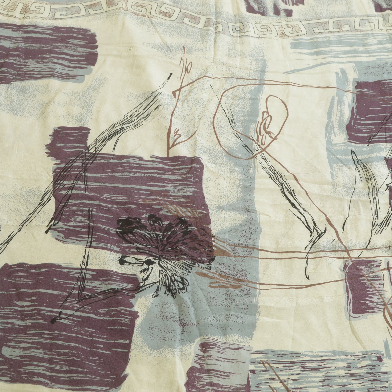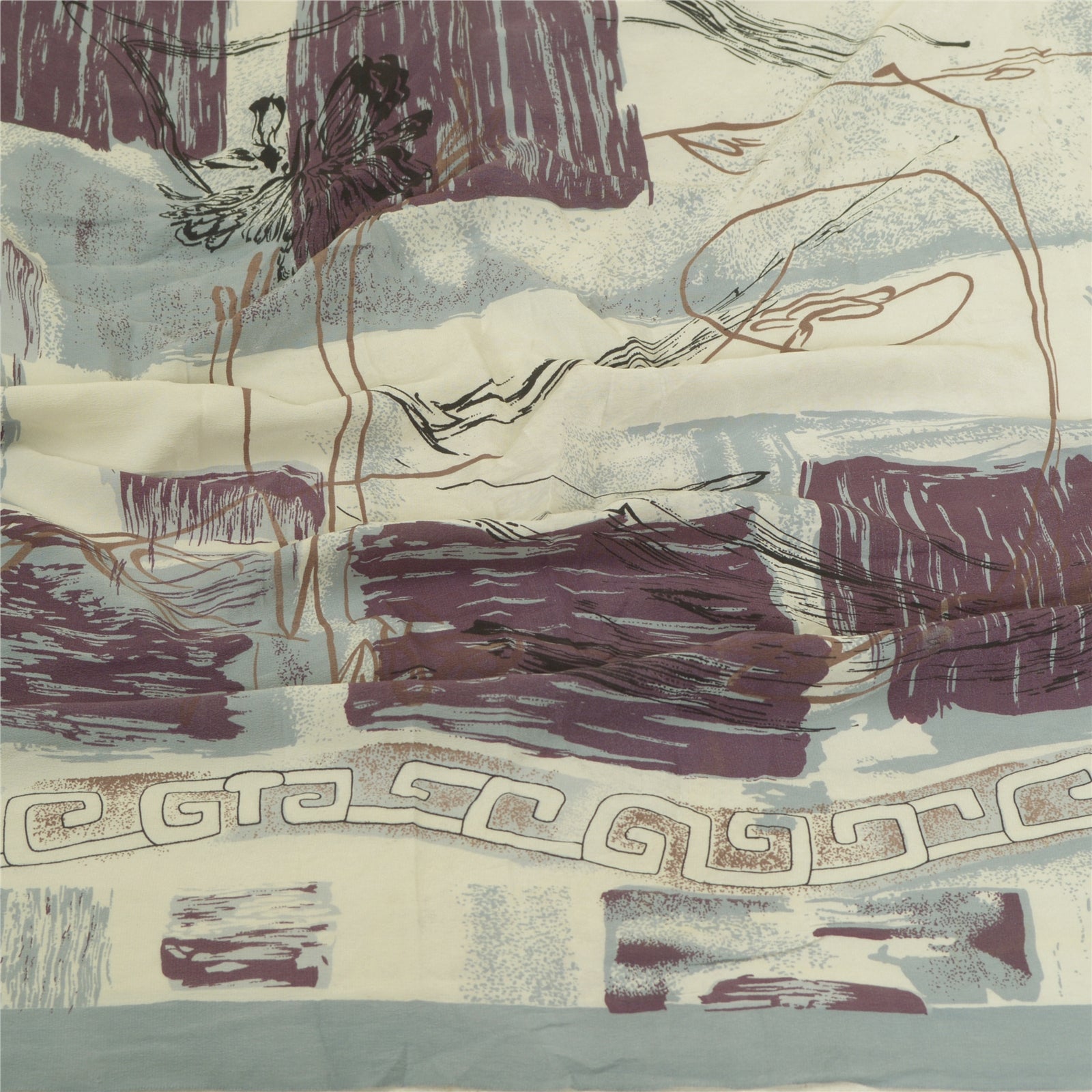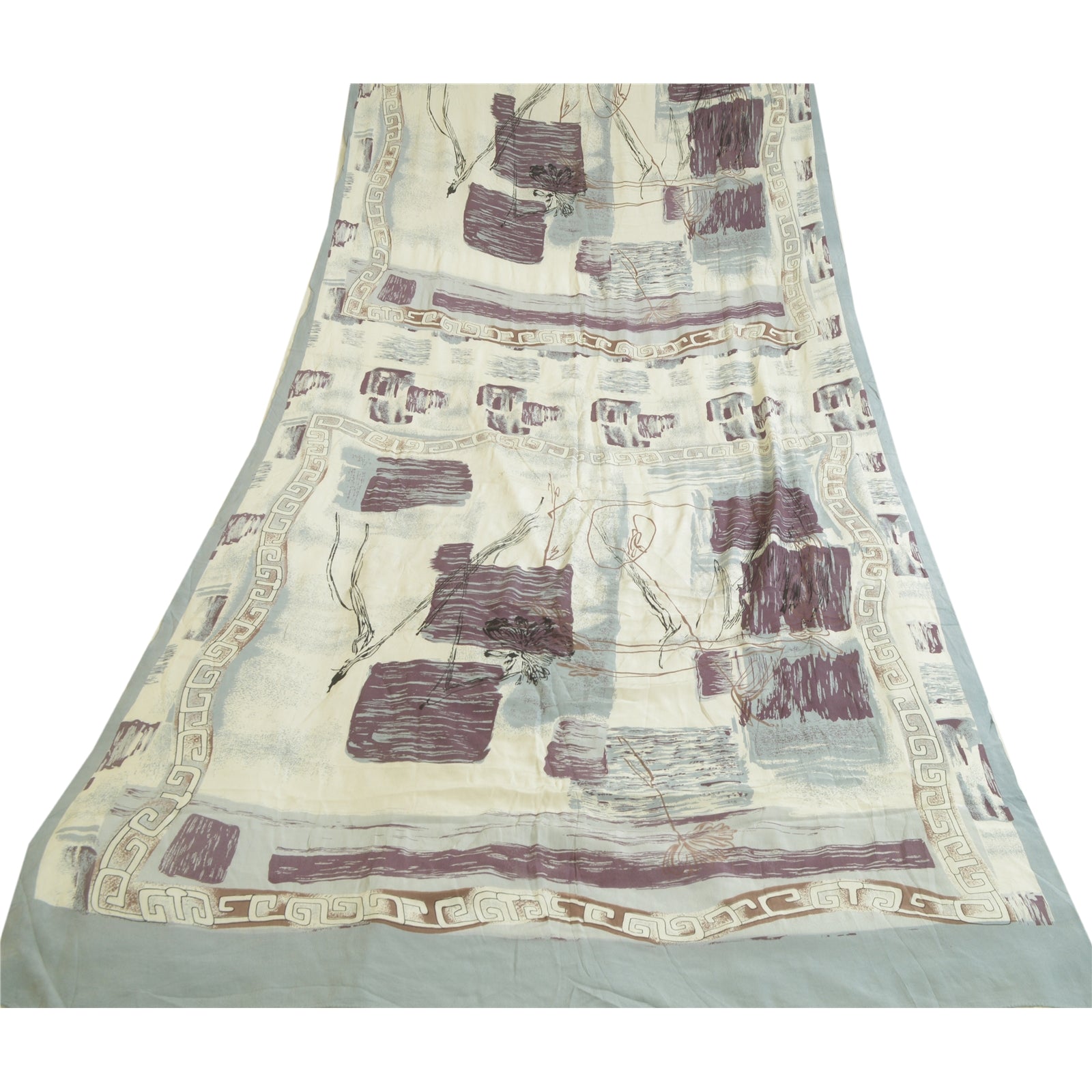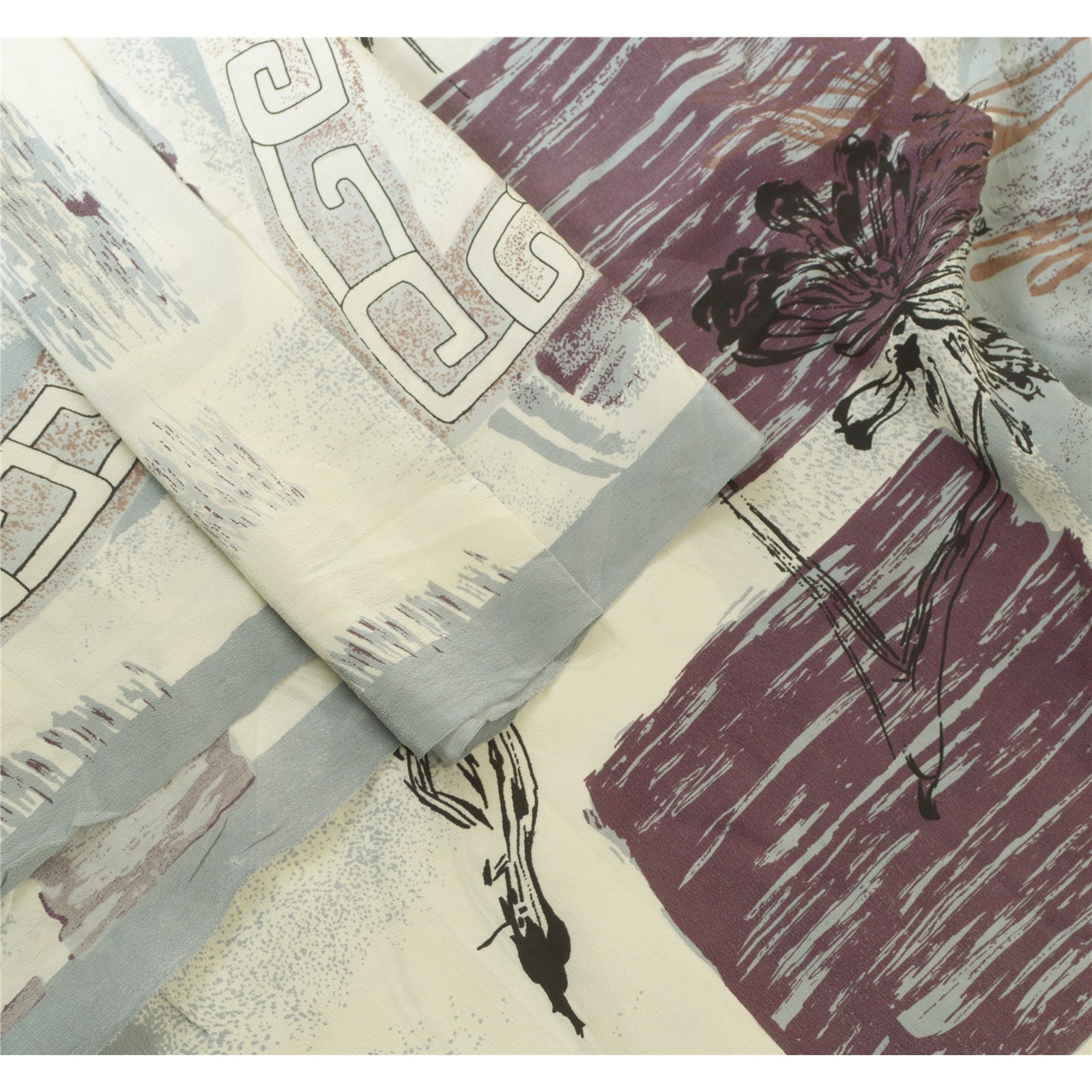 Sanskriti Vintage Long Grey/White Dupatta/Stole Pure Crepe Silk Printed Hijab