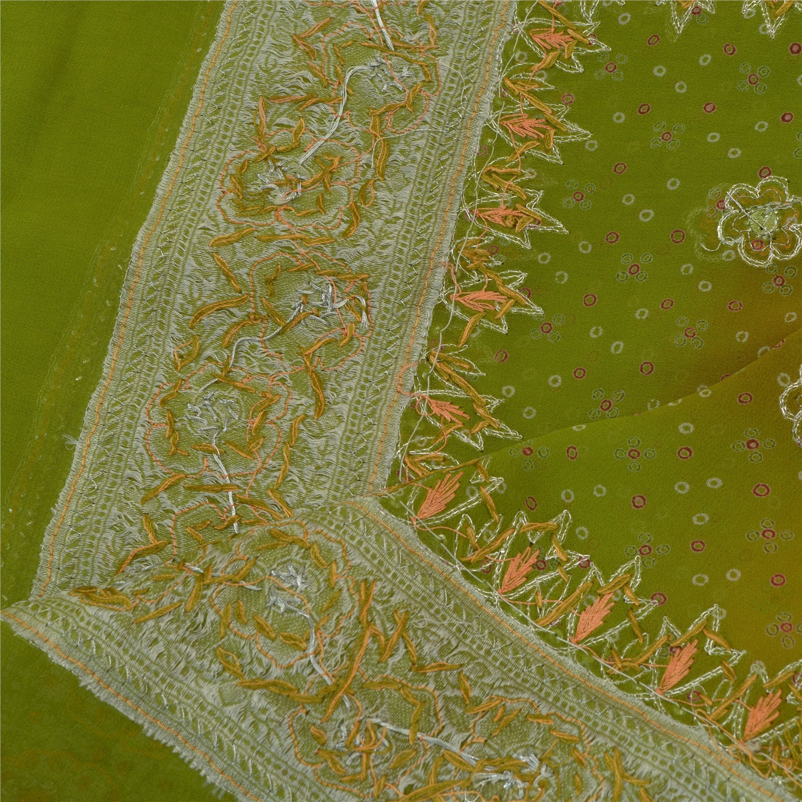 Sanskriti Vintage Long Peach/Green Dupatta/Stole Pure Georgette Silk Hand Beaded