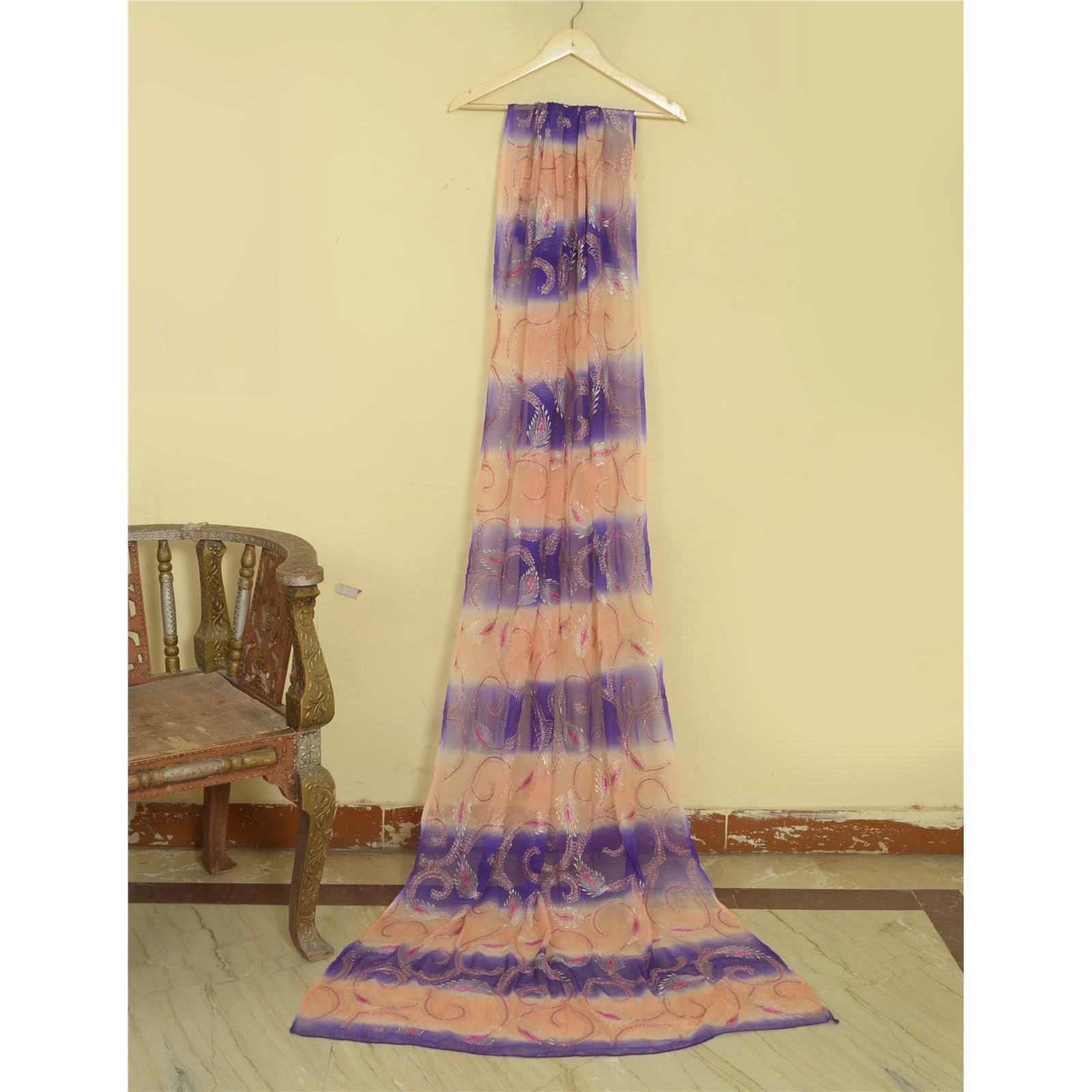 Sanskriti Vintage Long Peach/Purple Dupatta/Stole Pure Chiffon Silk Hand Beaded