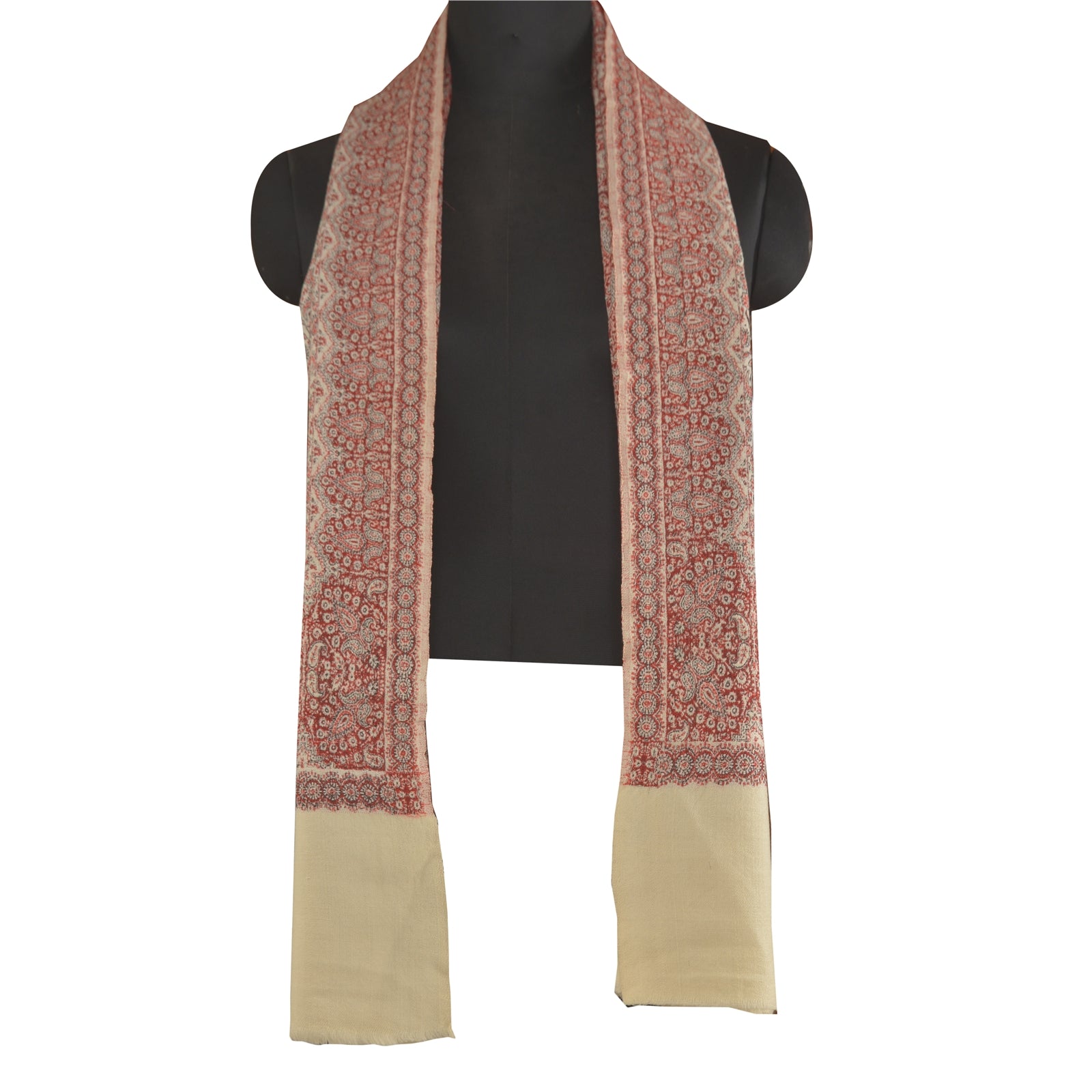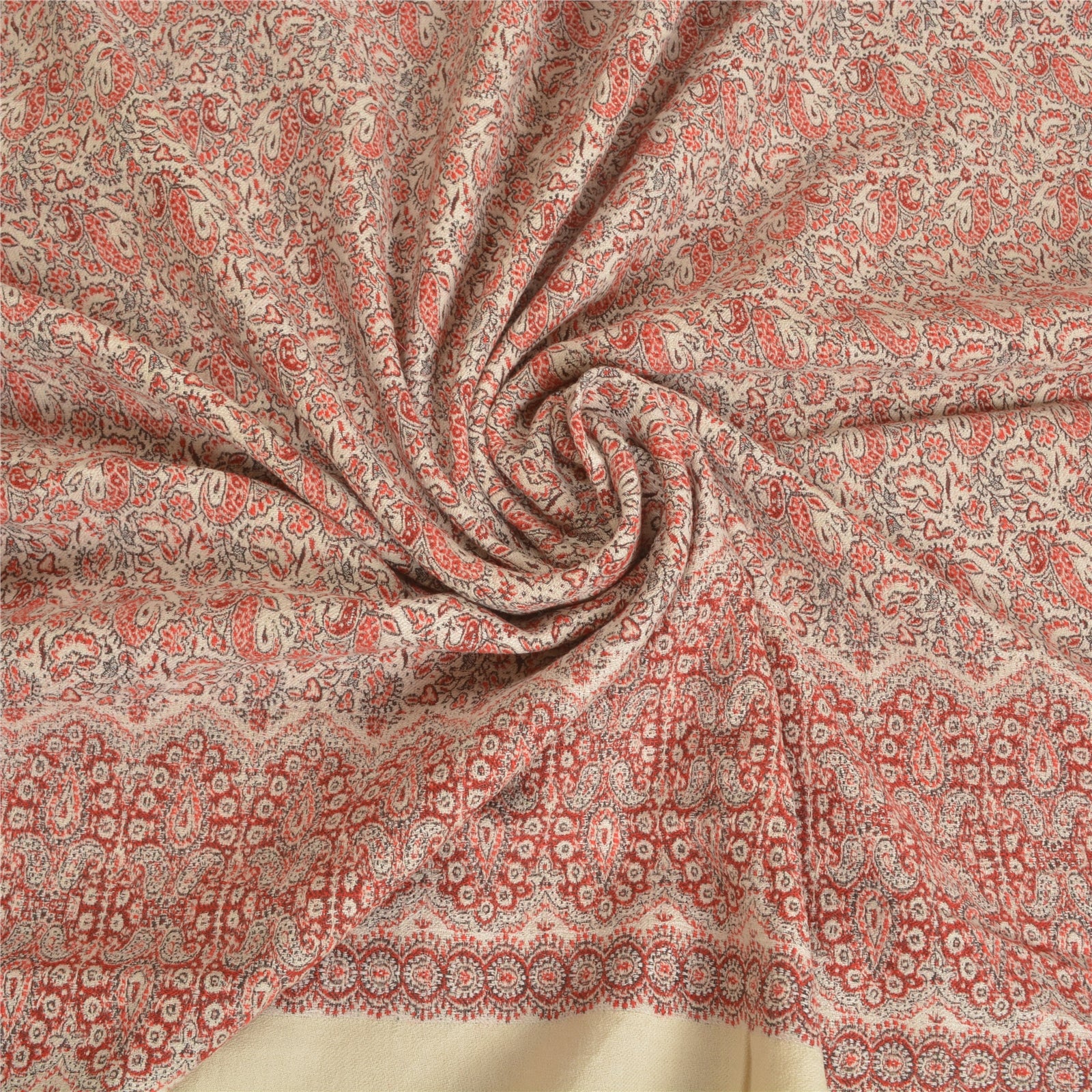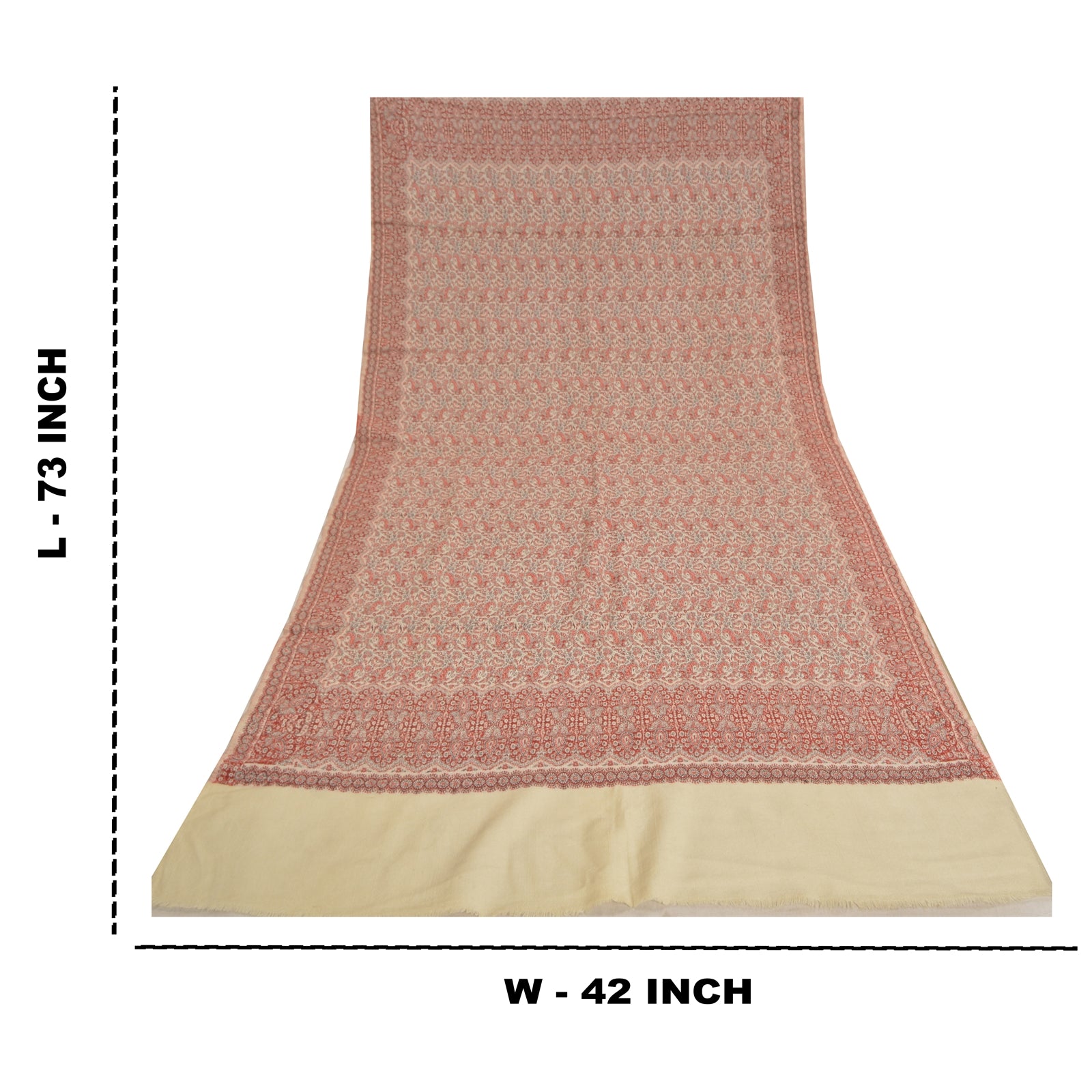 'THE ITEM COLOR OR SHADE MAY BE DARKER OR LIGHTER THAN THE PICTURE.' We Are Offering You A Vintage Red & Ivory Color 100% Pure Woolen Stole/Shawl Which Adorns Woven Work. Allover shawl has traditional woven work with floral & paisley pattern is really enhancing beauty of the shawl. This cozy, warm and fuzzy stool is soft against skin due to the mellow woolen Sustainable Fabric. A truly gorgeous piece which will also make an admirable gift. 'International buyers please note: Import duties, taxes, and charges are not included in the item price or postage cost. These charges are the buyer's responsibility. Please check with your country's customs office to determine what these additional costs will be prior to bidding or buying. Buyer will pay custom duty/tax. It is calculated and charged differently by every country. As a seller I do not have any control over it. VAT or sales tax is calculated by the platform at the time of checkout. Customs charge is payable at the time of delivery.'
