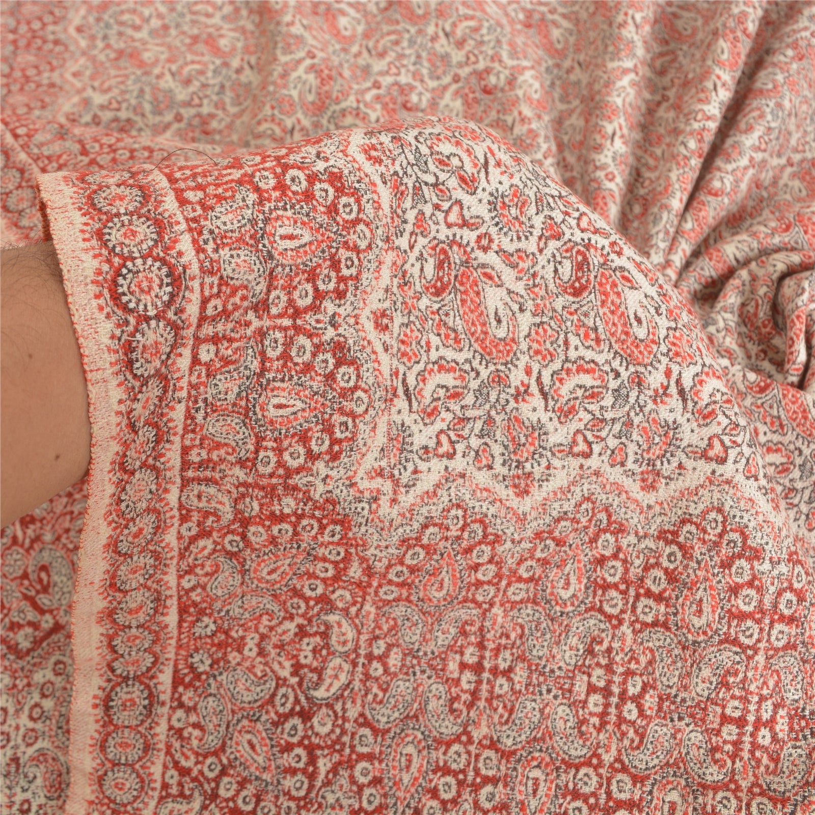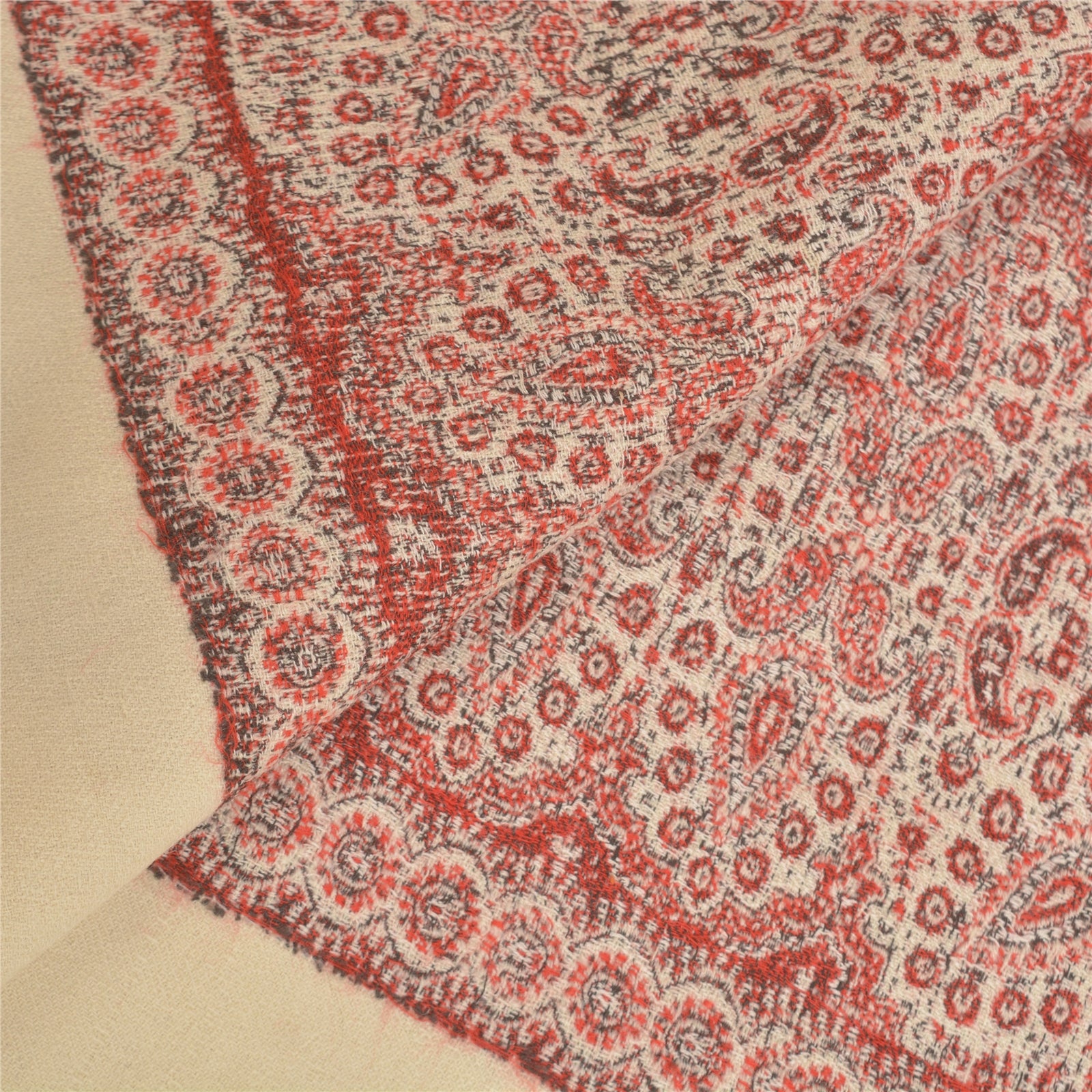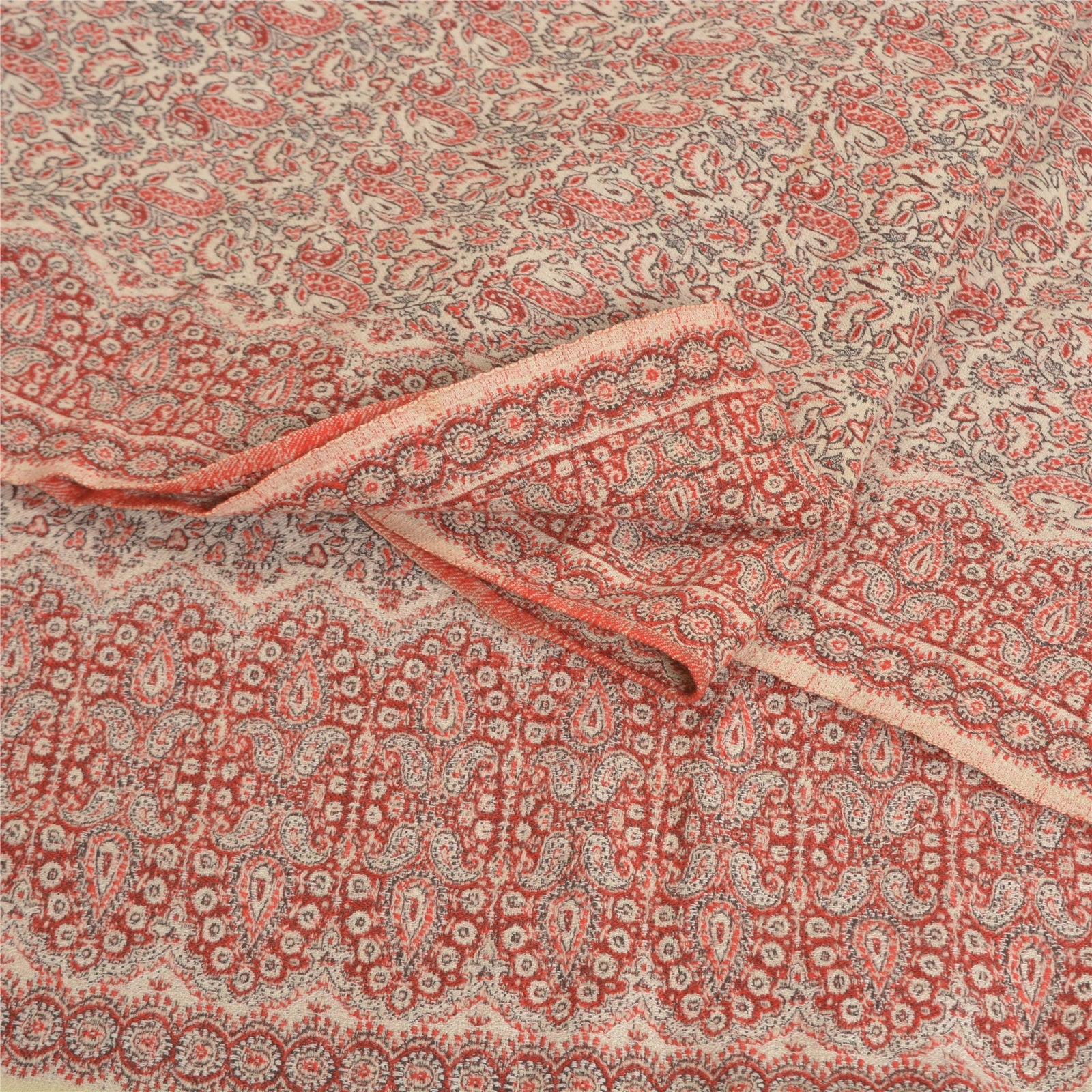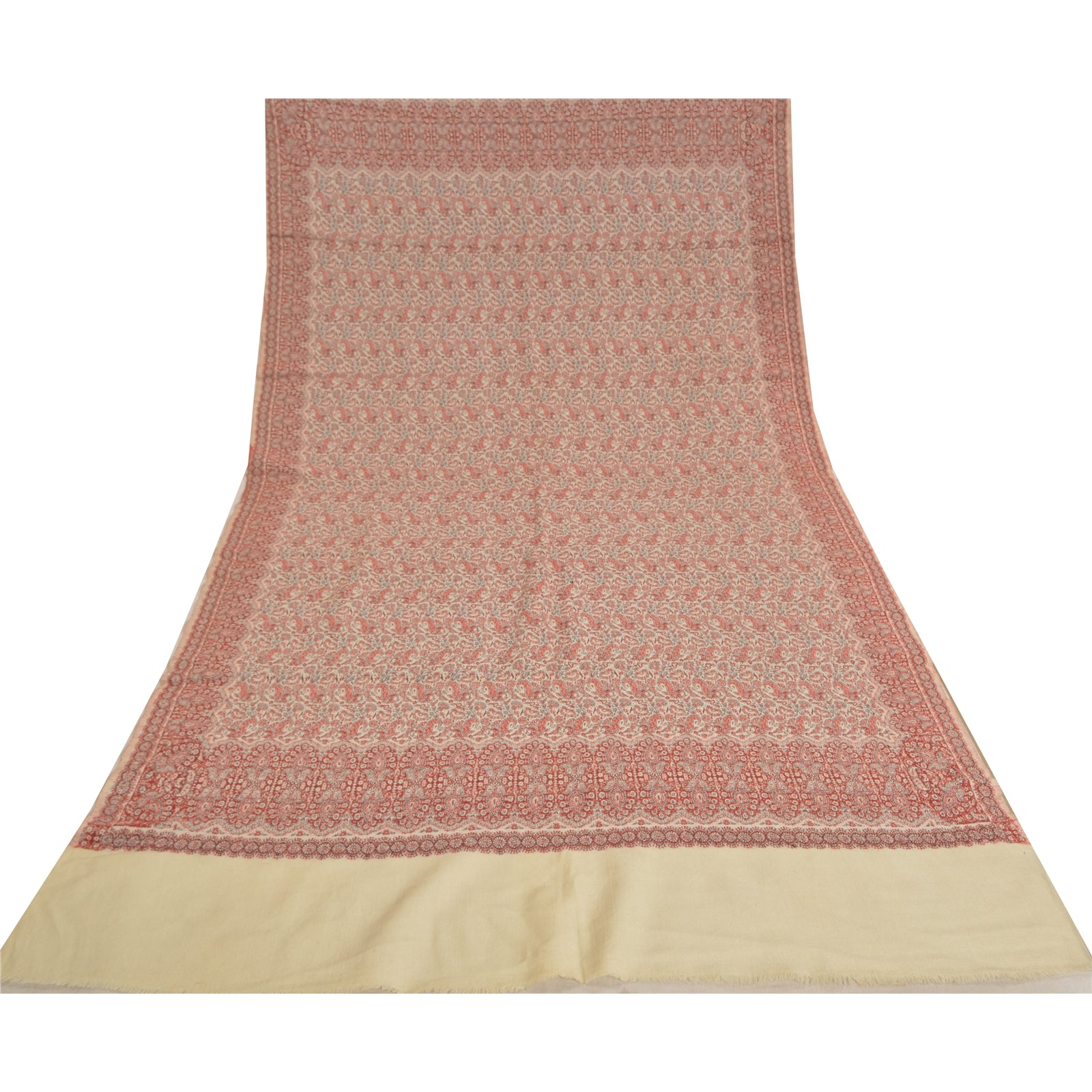'THE ITEM COLOR OR SHADE MAY BE DARKER OR LIGHTER THAN THE PICTURE.' We Are Offering You A Vintage Red & Ivory Color 100% Pure Woolen Stole/Shawl Which Adorns Woven Work. Allover shawl has traditional woven work with floral & paisley pattern is really enhancing beauty of the shawl. This cozy, warm and fuzzy stool is soft against skin due to the mellow woolen Sustainable Fabric. A truly gorgeous piece which will also make an admirable gift. 'International buyers please note: Import duties, taxes, and charges are not included in the item price or postage cost. These charges are the buyer's responsibility. Please check with your country's customs office to determine what these additional costs will be prior to bidding or buying. Buyer will pay custom duty/tax. It is calculated and charged differently by every country. As a seller I do not have any control over it. VAT or sales tax is calculated by the platform at the time of checkout. Customs charge is payable at the time of delivery.'