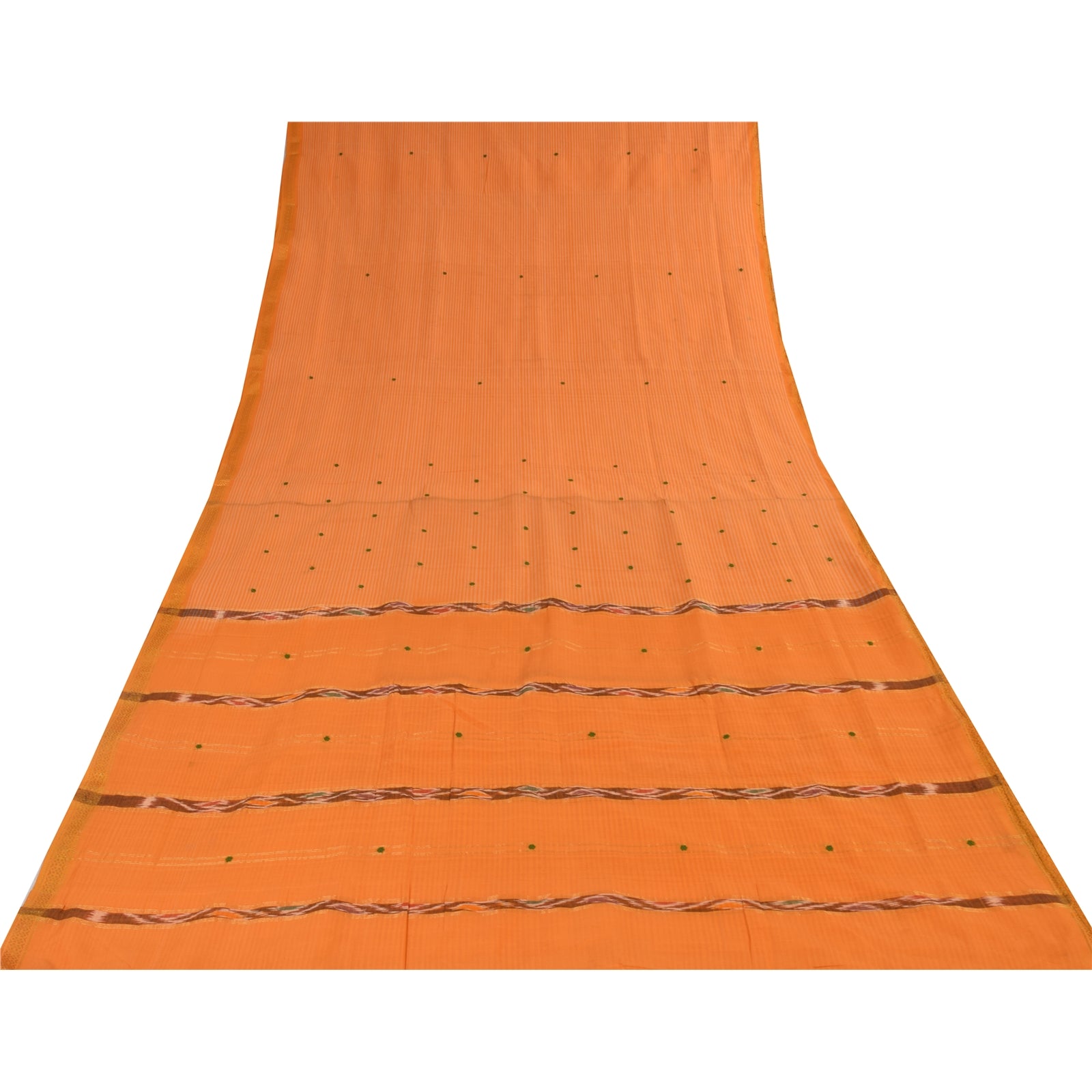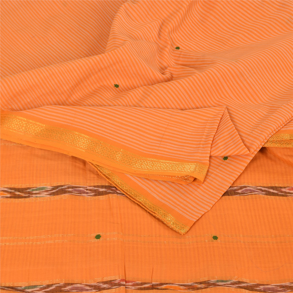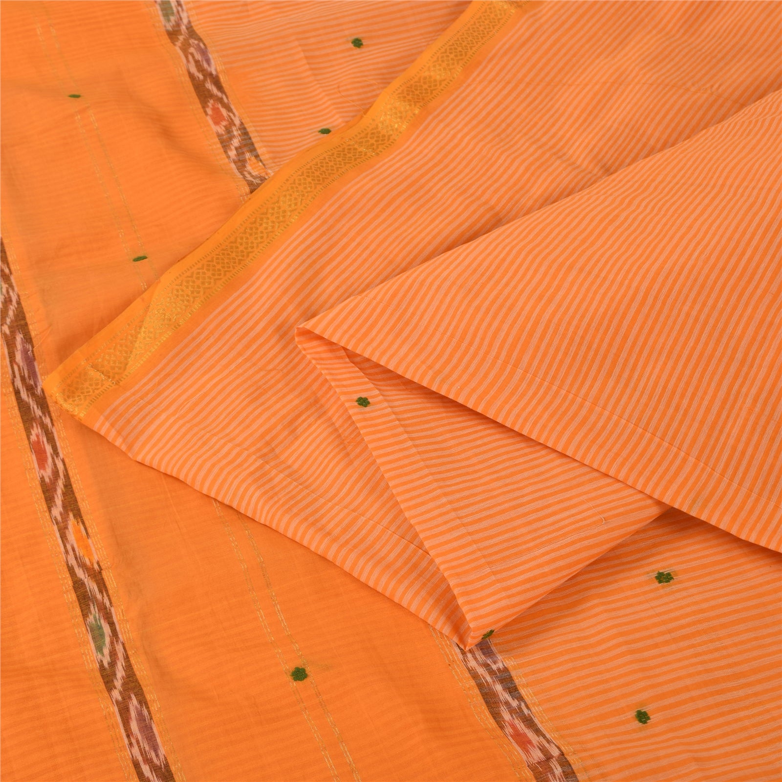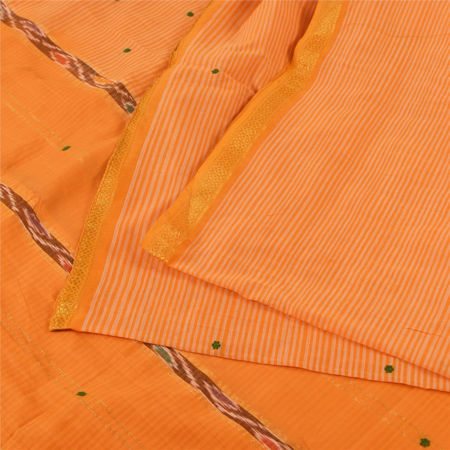 Sanskriti Vintage Mustard Sarees Pure Cotton Ikat Woven Ethnic Sari Craft Sustainable Fabric