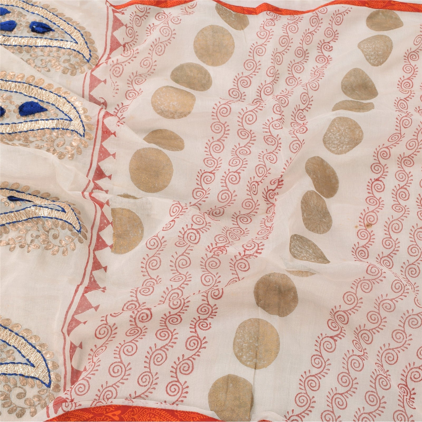 'THE ITEM COLOR OR SHADE MAY BE DARKER OR LIGHTER THAN THE PICTURE.' Beautiful off white colored pure cotton embroidered printed long scarf/dupatta. The center portion has floral & polka dots design embellished with blue printed work. Border of the dupatta has floral & paisley design embellished with blue thread work, gold zari work & blue velvet fabric patch work . Dupatta has red printed fabric patch work on 4 sides of borders . This item's Beauty Factor Exotic painted work with blue velvet patch work on off white color base fabric is really enhancing the beauty of the dupatta. This dupatta/stole can be used for various crafting ideas too. Use it for dress designing, as a throw, as window dressing, upholstery, table linen and much more. Let your creative juices flow. Shipping note: International buyers please note: Import duties, taxes, and charges are not included in the item price or postage cost. These charges are the buyer's responsibility. Please check with your country's customs office to determine what these additional costs will be prior to bidding or buying. Buyer will pay custom duty/tax. It is calculated and charged differently by every country. As a seller I do not have any control over it. VAT or sales tax is calculated by the platform at the time of checkout. Customs charge is payable at the time of delivery.' SKU: DC-24887