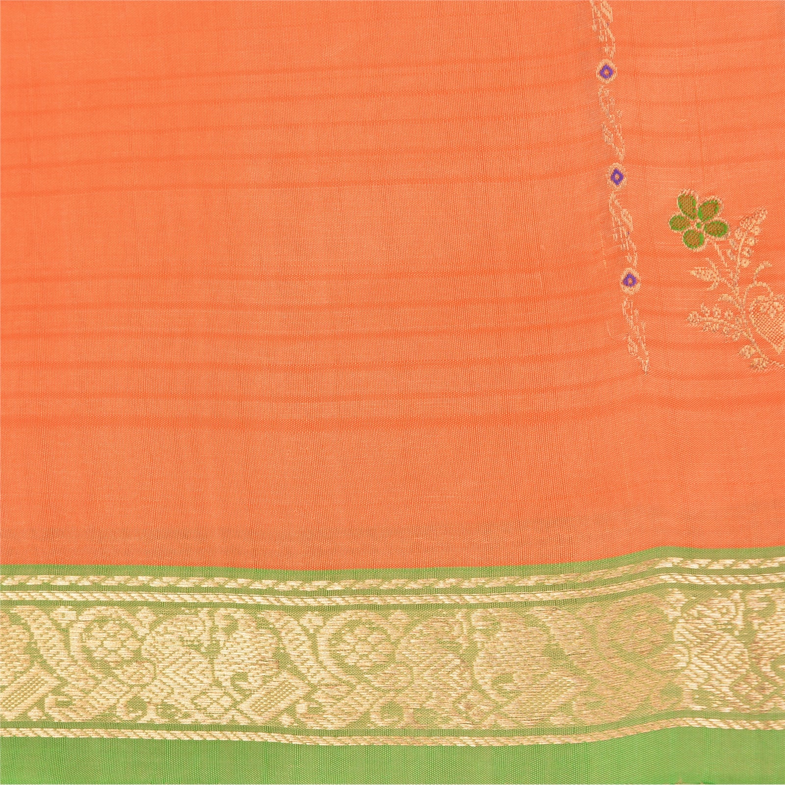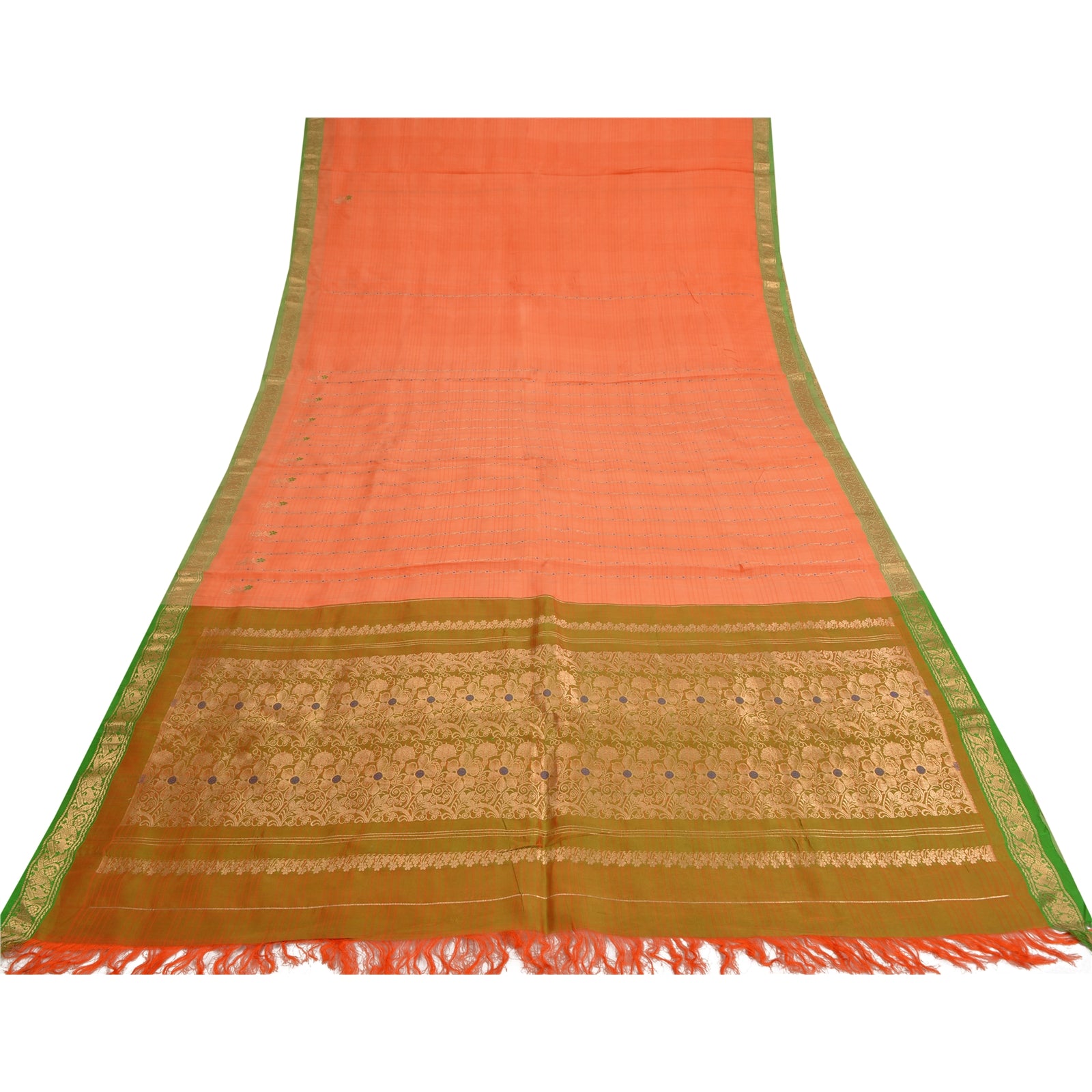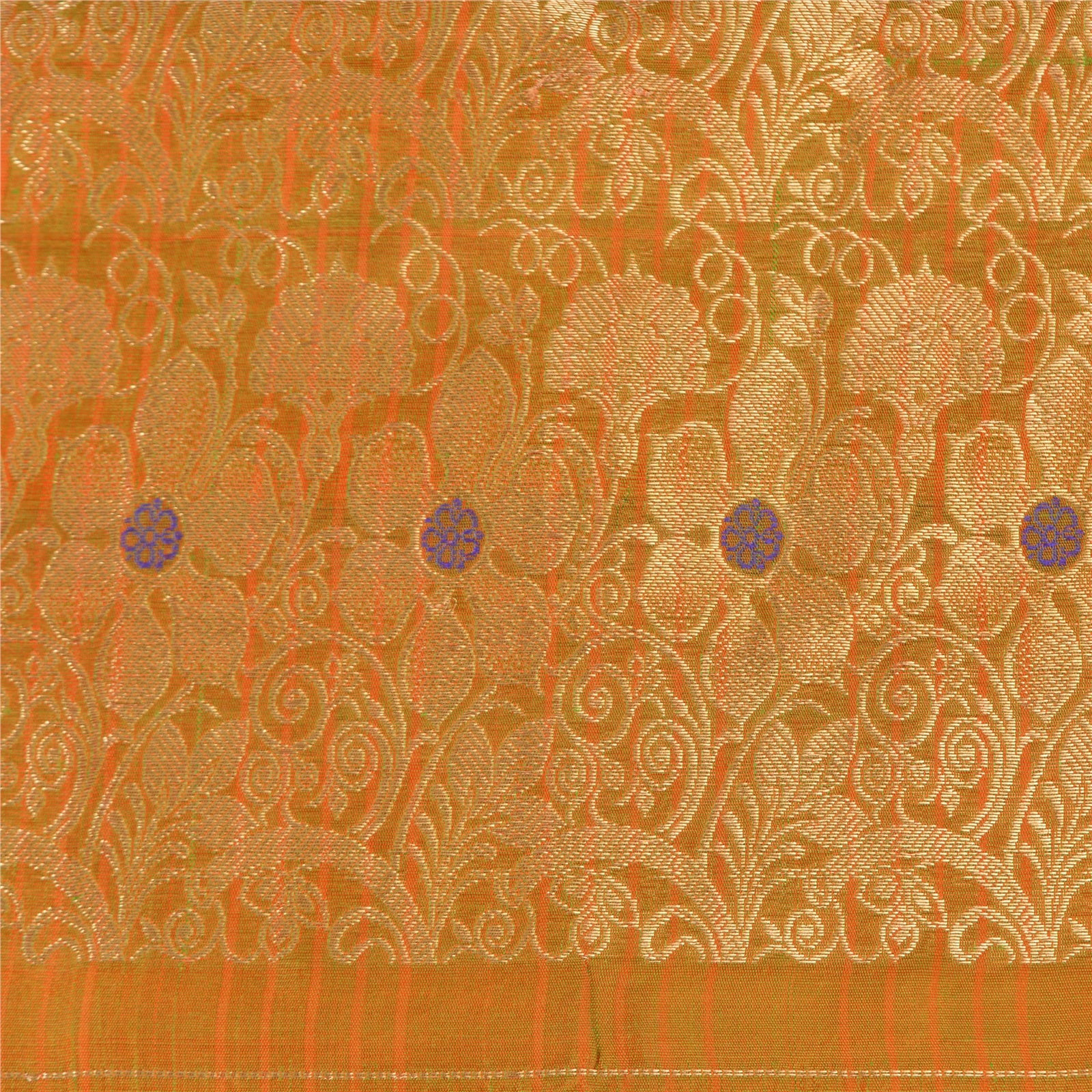 Sanskriti Vintage Orange/Green Sarees Pure Silk Woven Brocade Sari Sustainable Fabric
