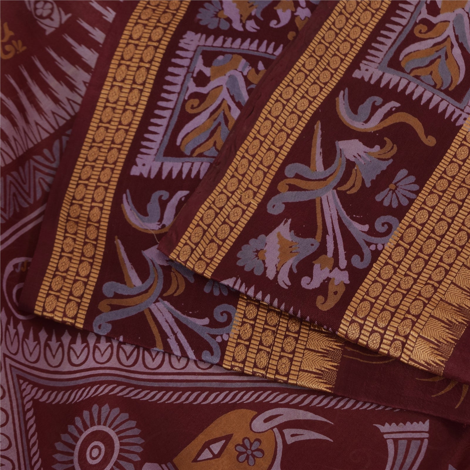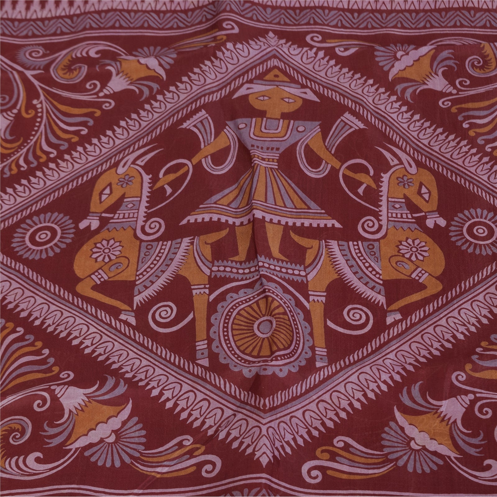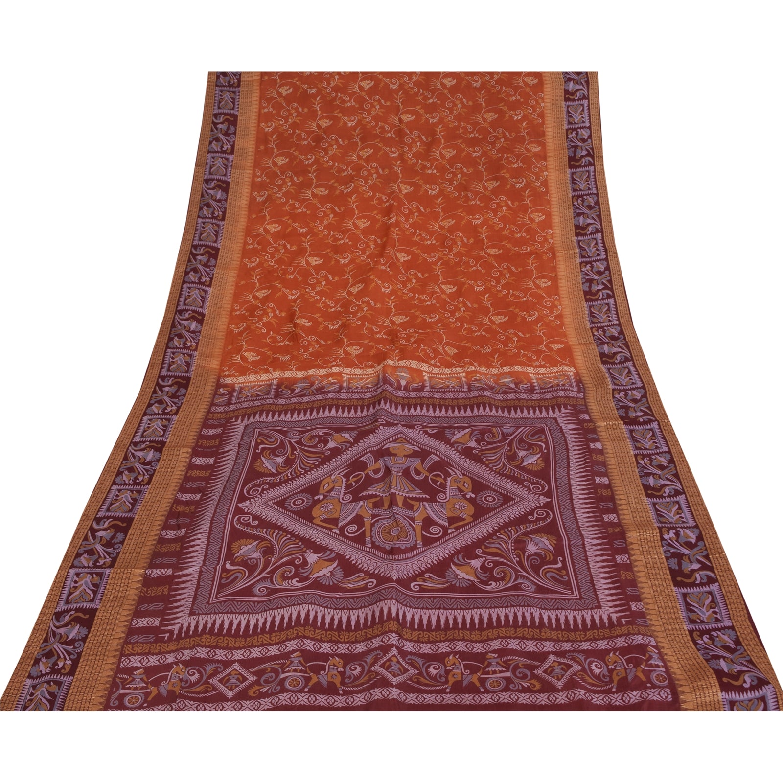 Sanskriti Vintage Orange/Red Pure Silk Sarees Human Animal Printed Sari Fabric