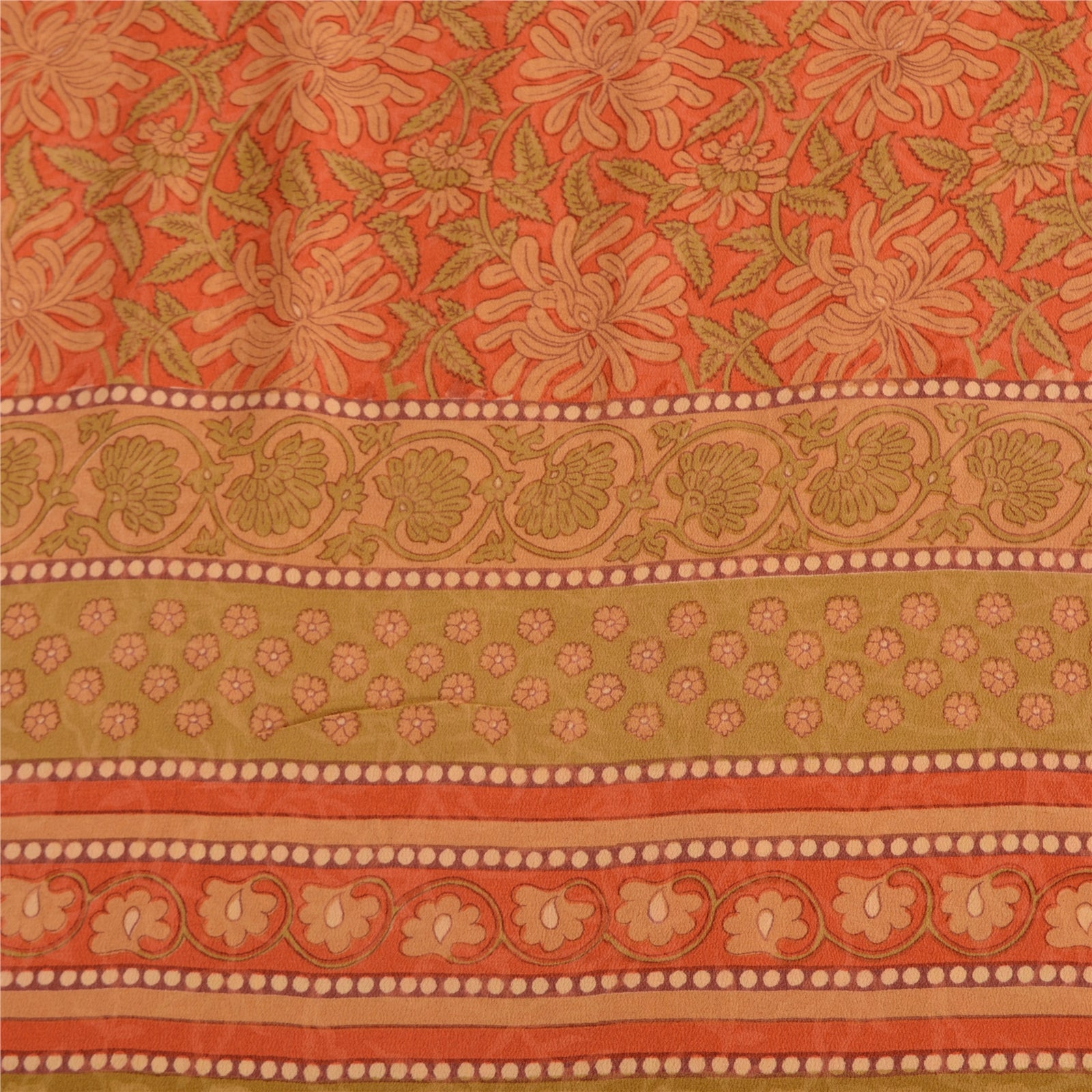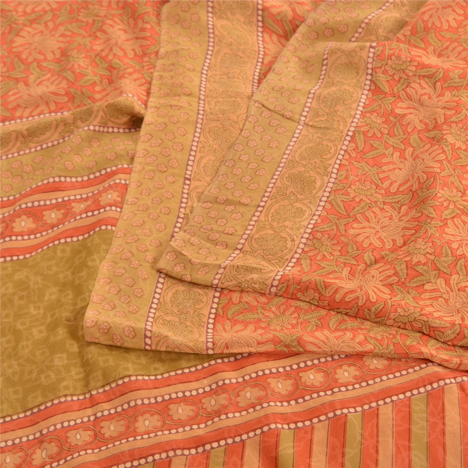 Sanskriti Vintage Peach Sarees 100% Pure Crepe Silk Printed Sari Craft Sustainable Fabric
