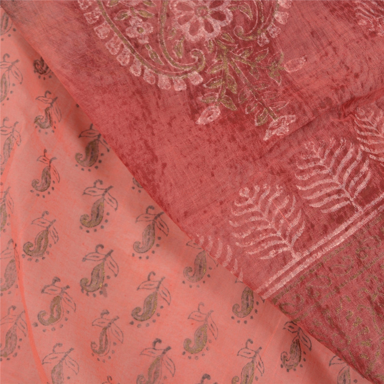 Sanskriti Vintage Peach Sarees Pure Cotton Hand Painted Premium Sari Sustainable Fabric