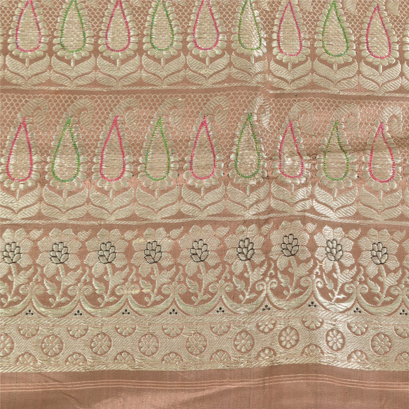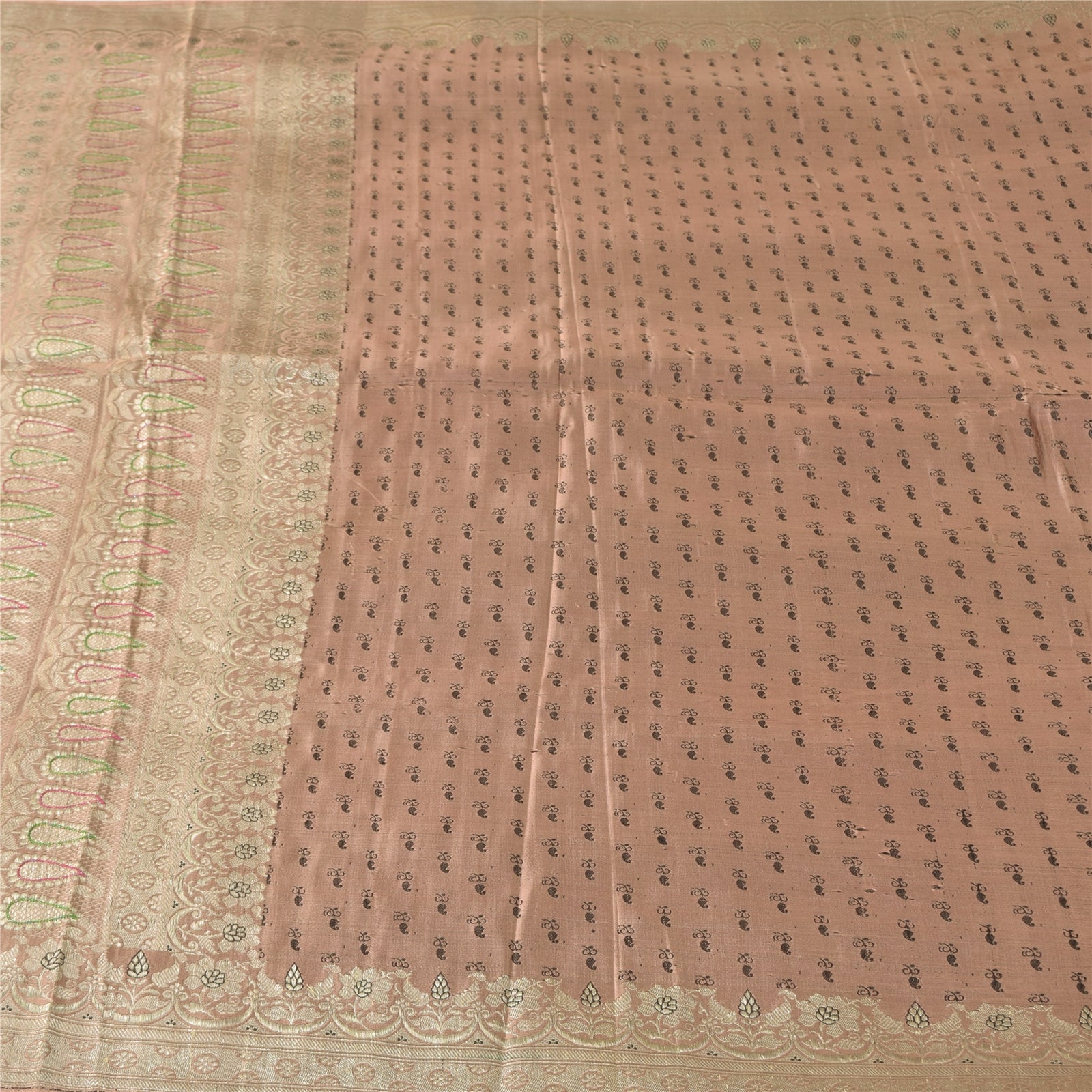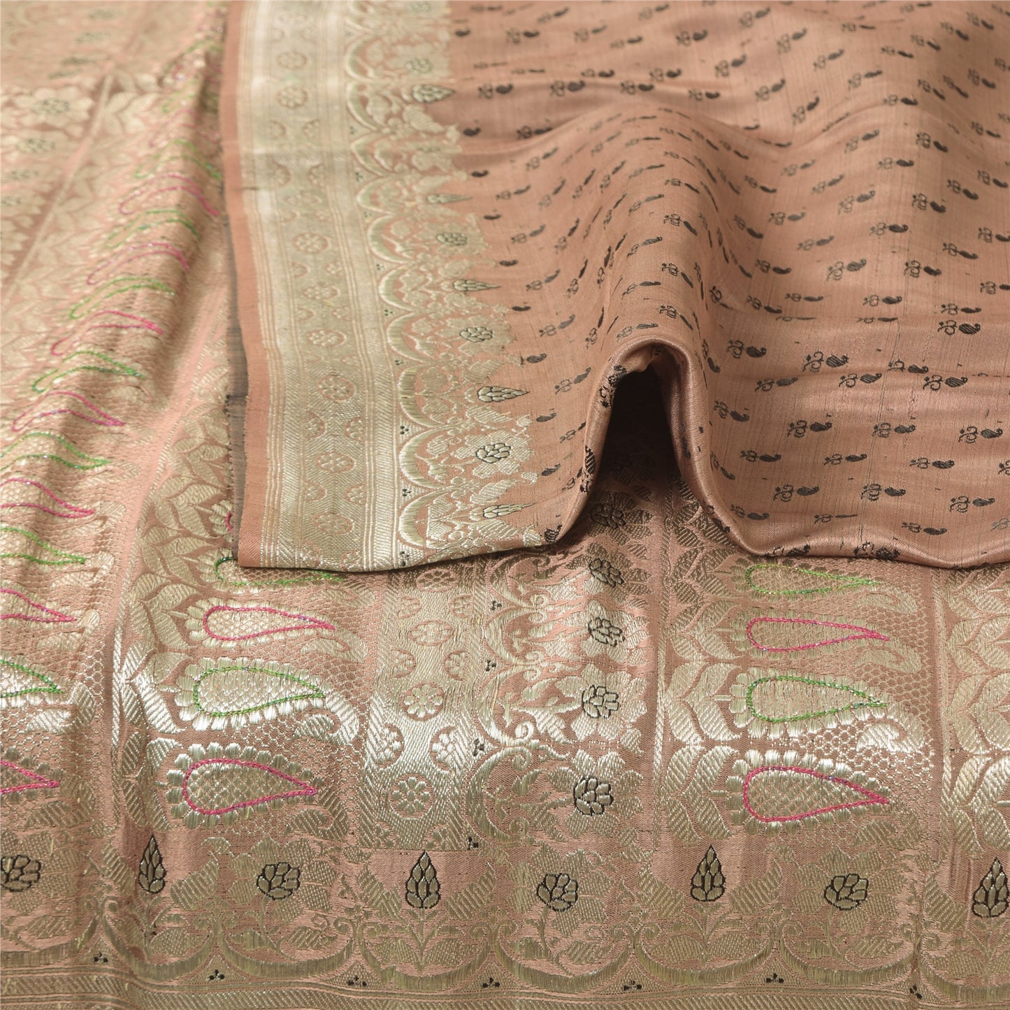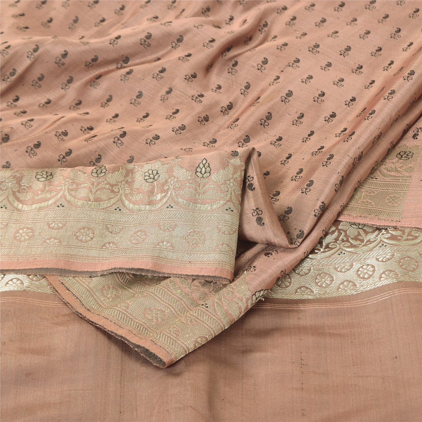 Sanskriti Vintage Peach Sarees Pure Satin Silk Banarasi Brocade Sustainable Fabric 5yd Sari