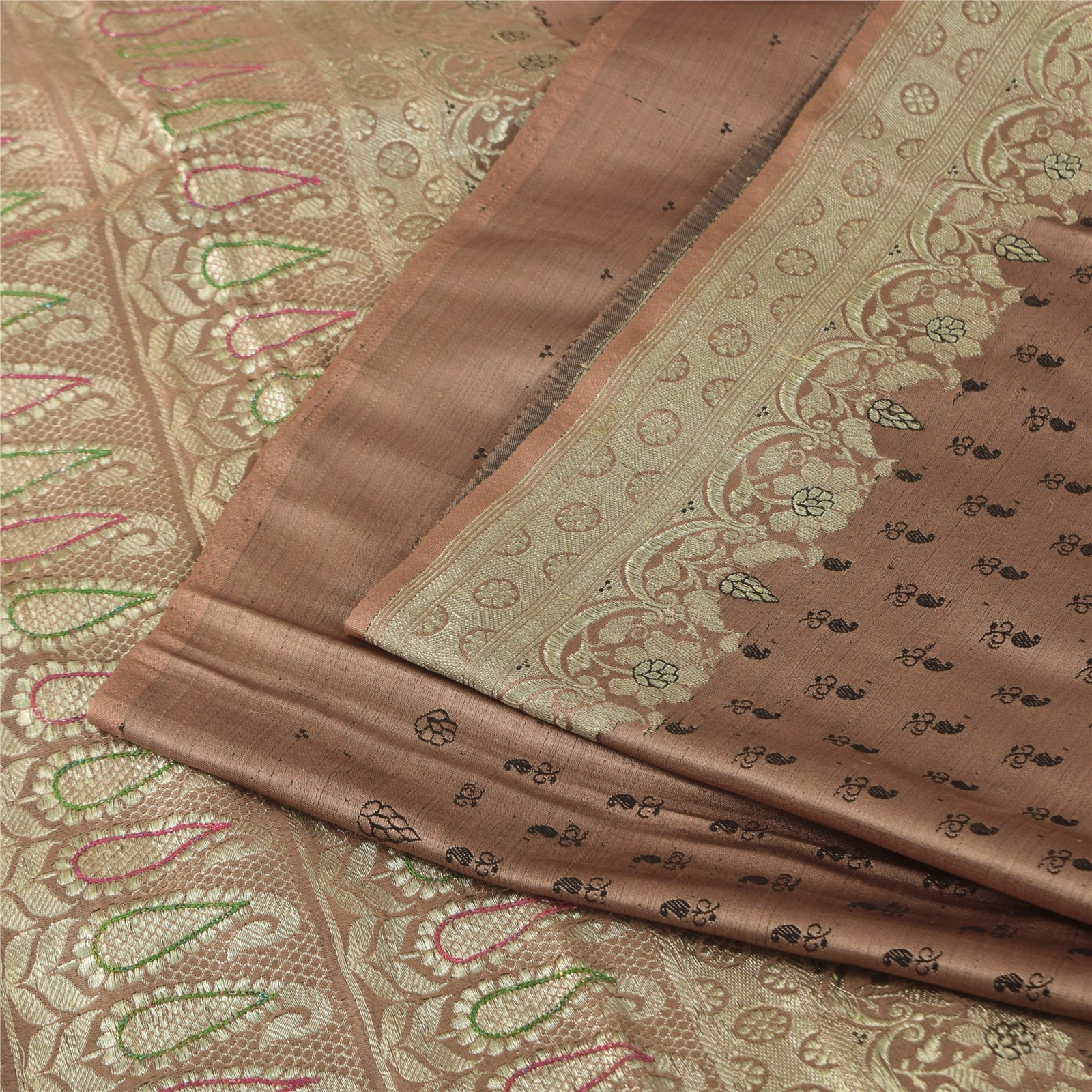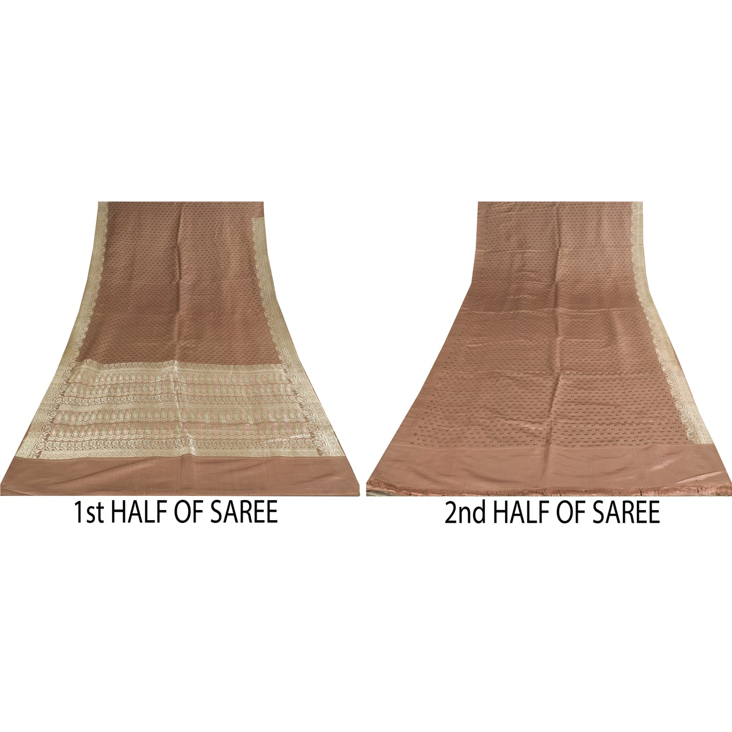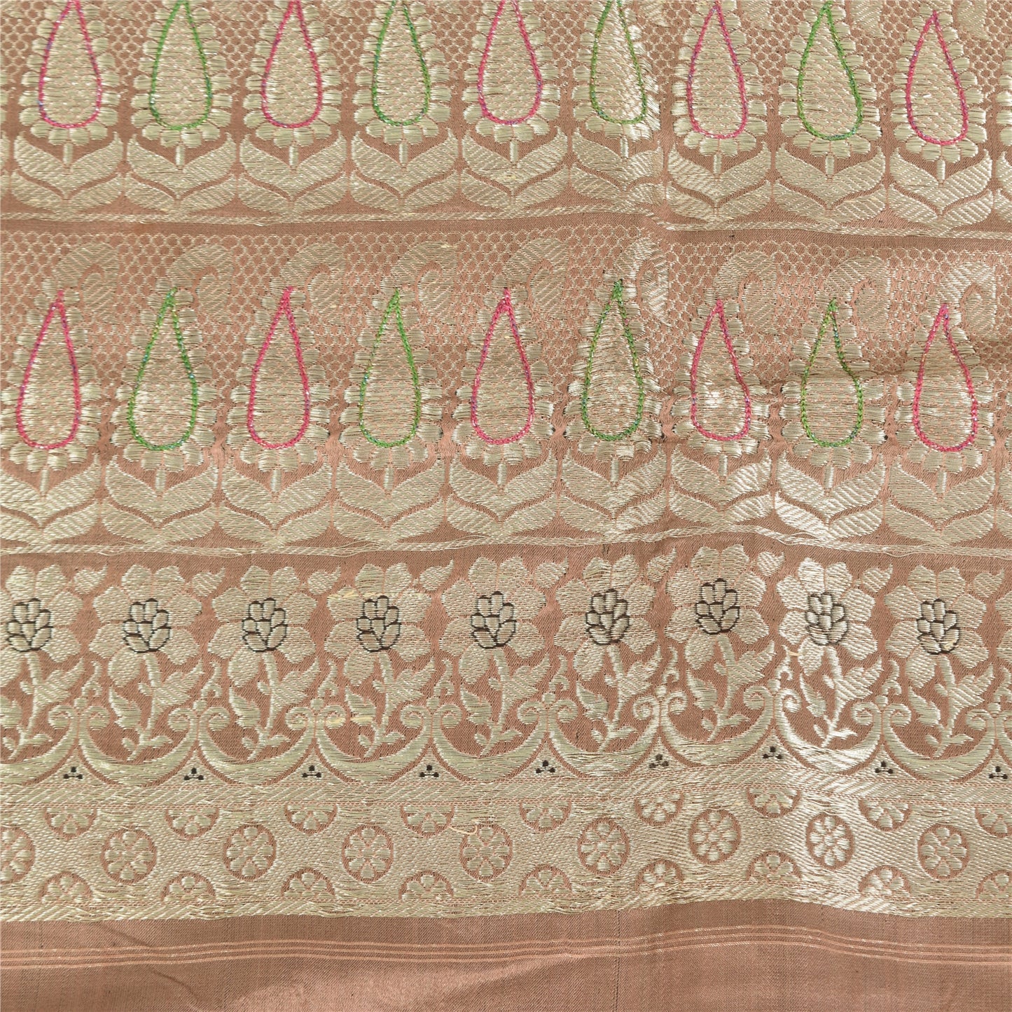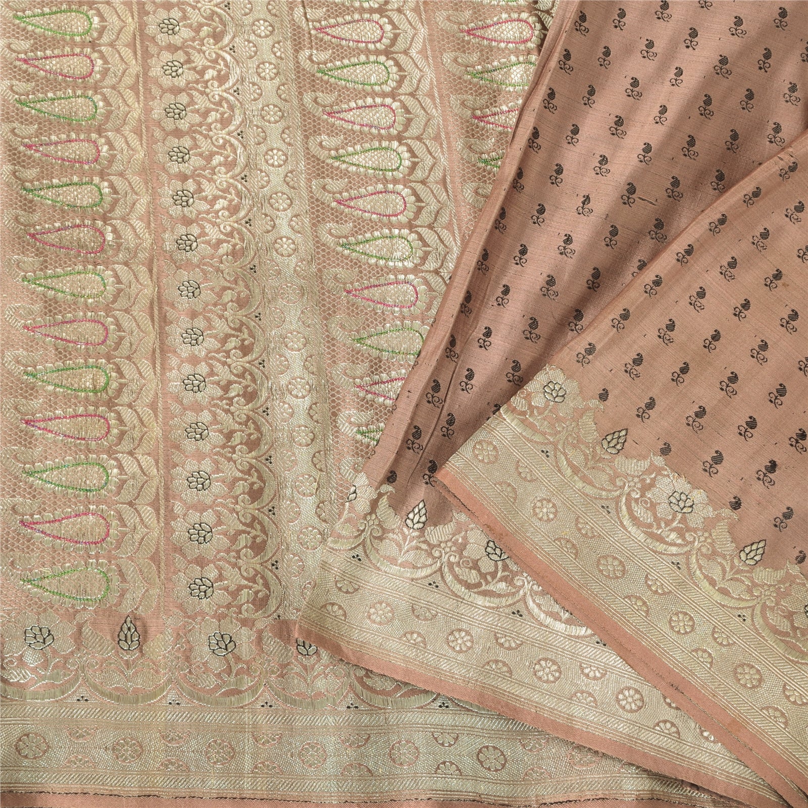 Sanskriti Vintage Peach Sarees Pure Satin Silk Banarasi Brocade Sustainable Fabric 5yd Sari