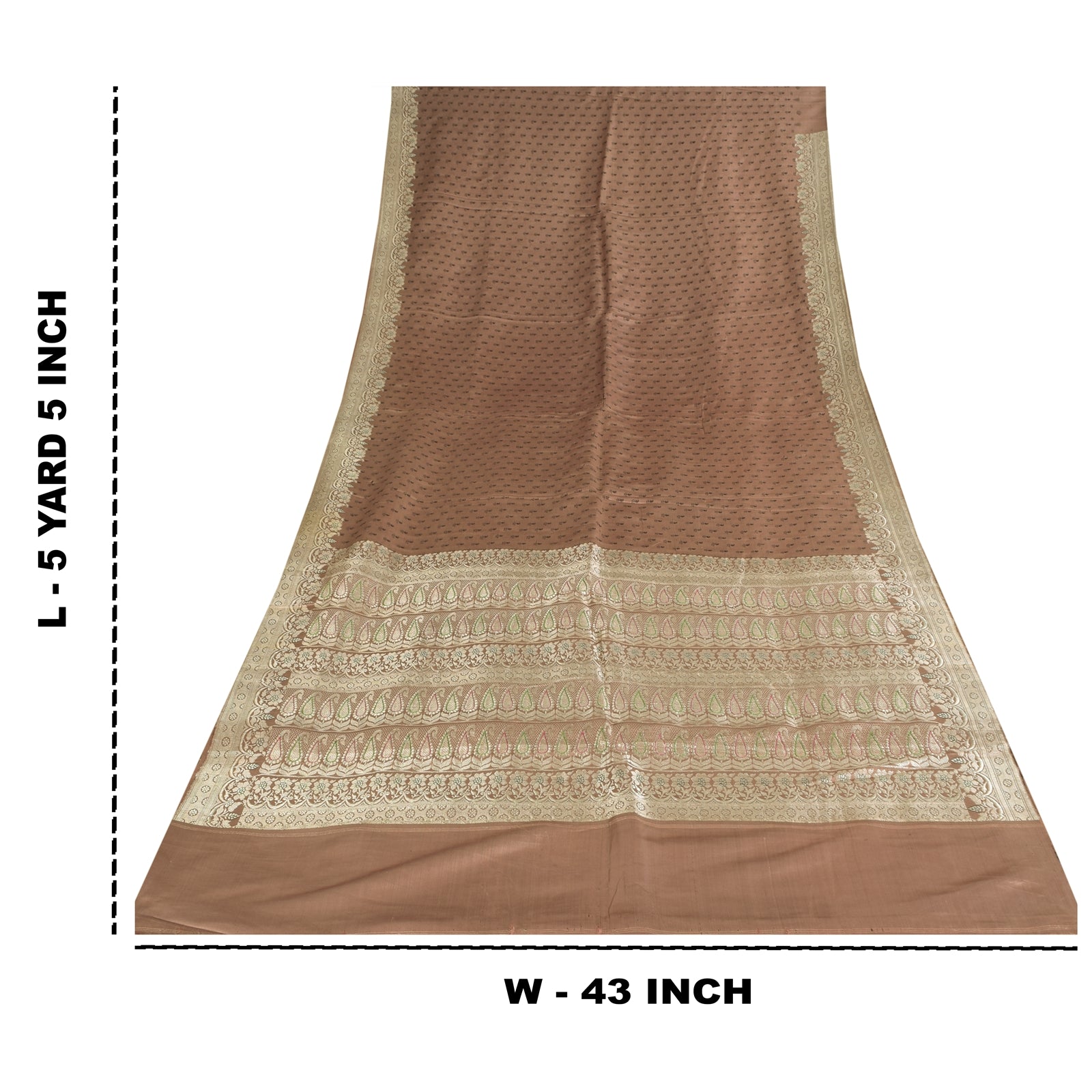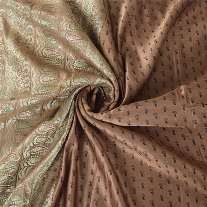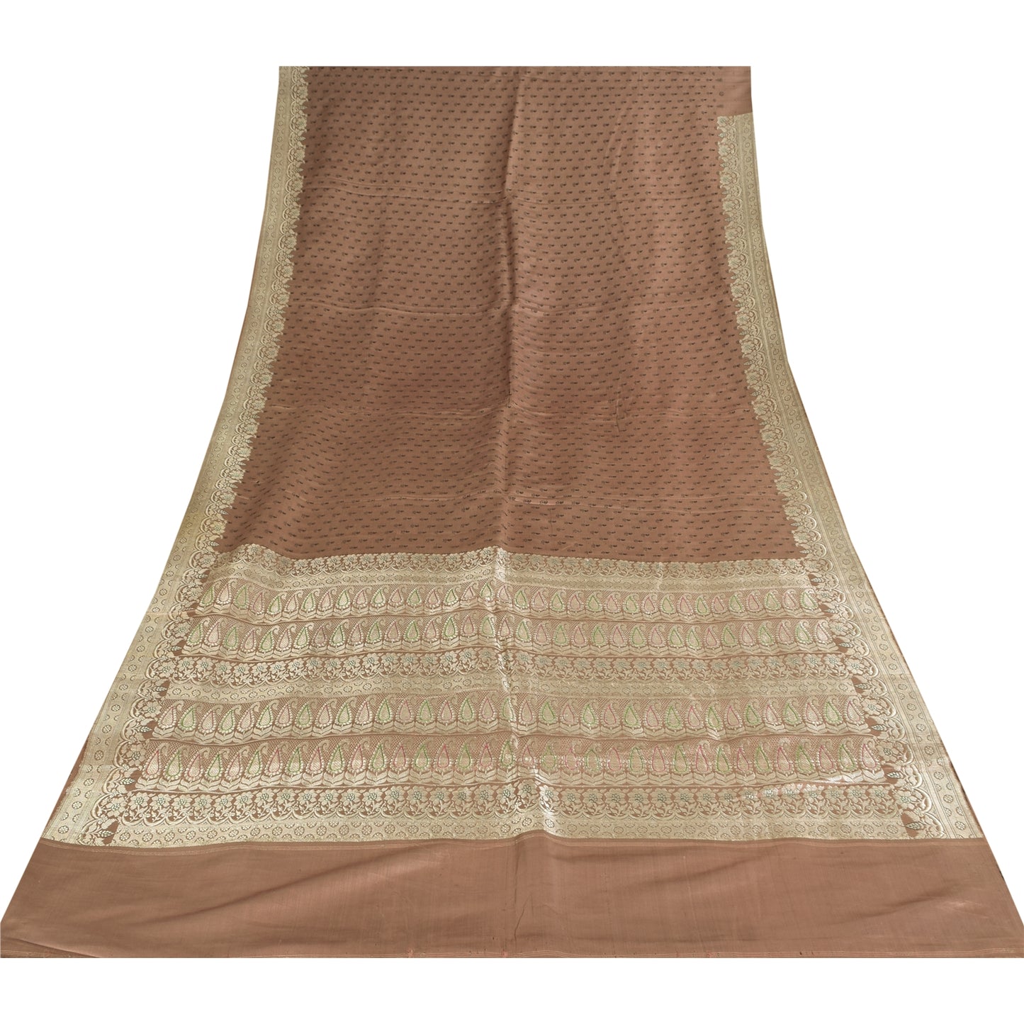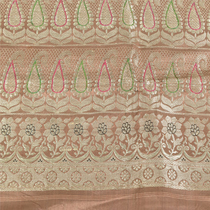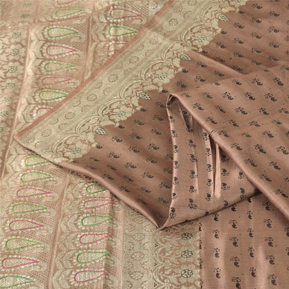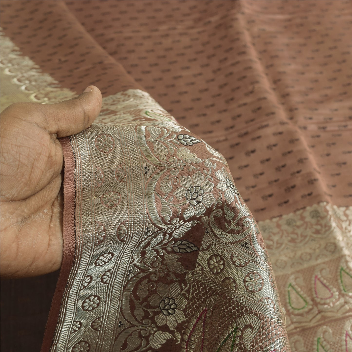 Sanskriti Vintage Peach Sarees Pure Satin Silk Banarasi Brocade Sustainable Fabric 5yd Sari