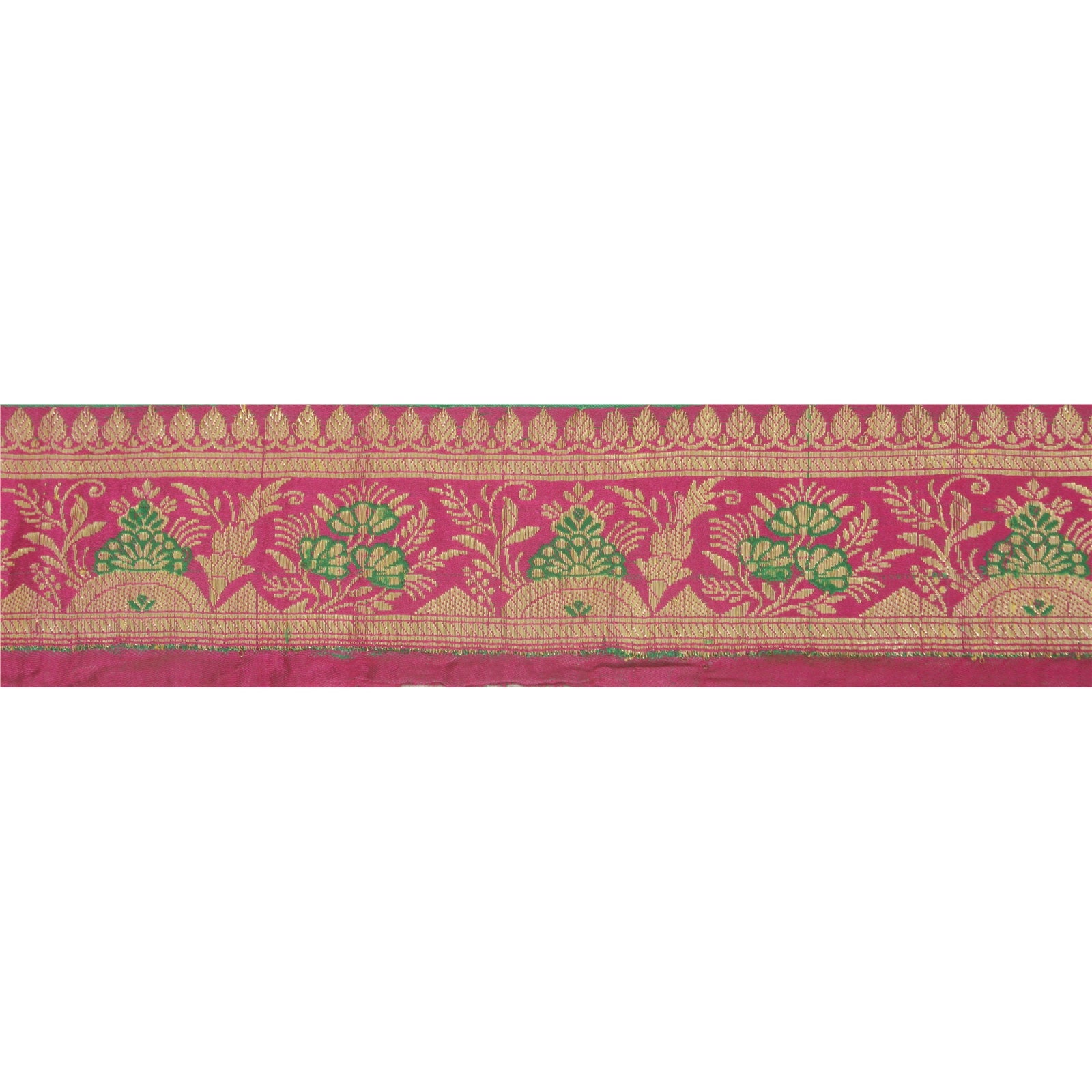 Sanskriti Vintage Pink Sari Border Brocade Craft 2.5"W Trim Sewing 1 Yd Lace