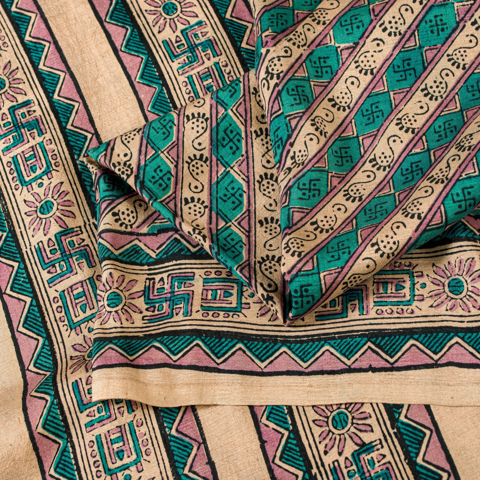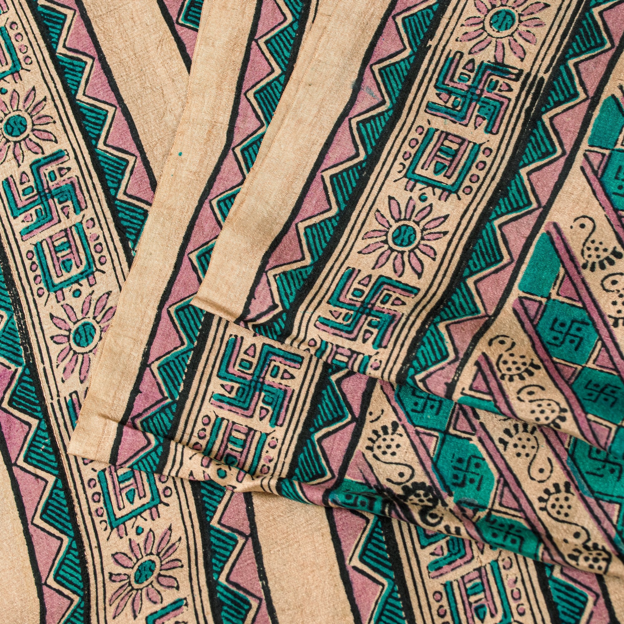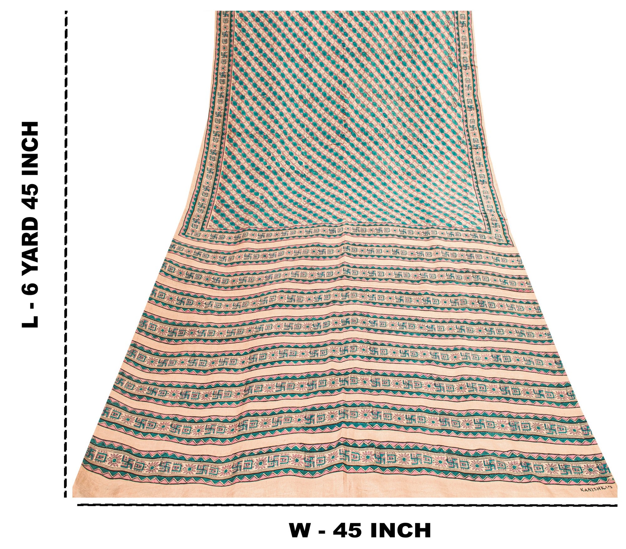 Beautiful beige & green colored pure silk printed saree with floral & swastik design on pallu, border & center part. Versatile Uses-Crafting, Repurpose, Creative Sewing Project, Dressmaking, Kaftans, Use It As A Sari, Window Dressing, Upcycling, Sarongs, Throw,Table Linen,Decorative Fabric, Sustainable Indian Fabric. THE ITEM COLOR OR SHADE MAY BE DARKER OR LIGHTER THAN THE PICTURE.' International buyers please note: Import duties, taxes, and charges are not included in the item price or postage cost. Buyer will pay custom duty/tax,VAT, and any applicable charges at the time of delivery. PR-70531