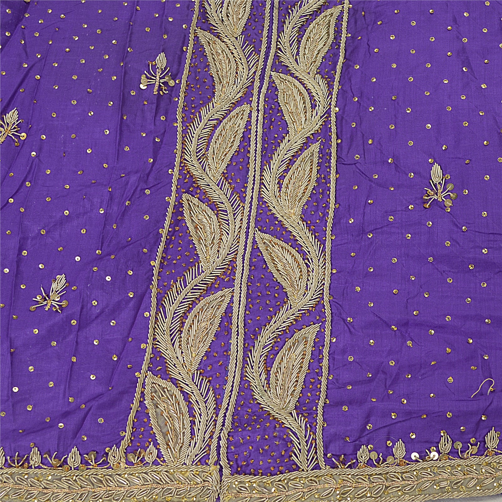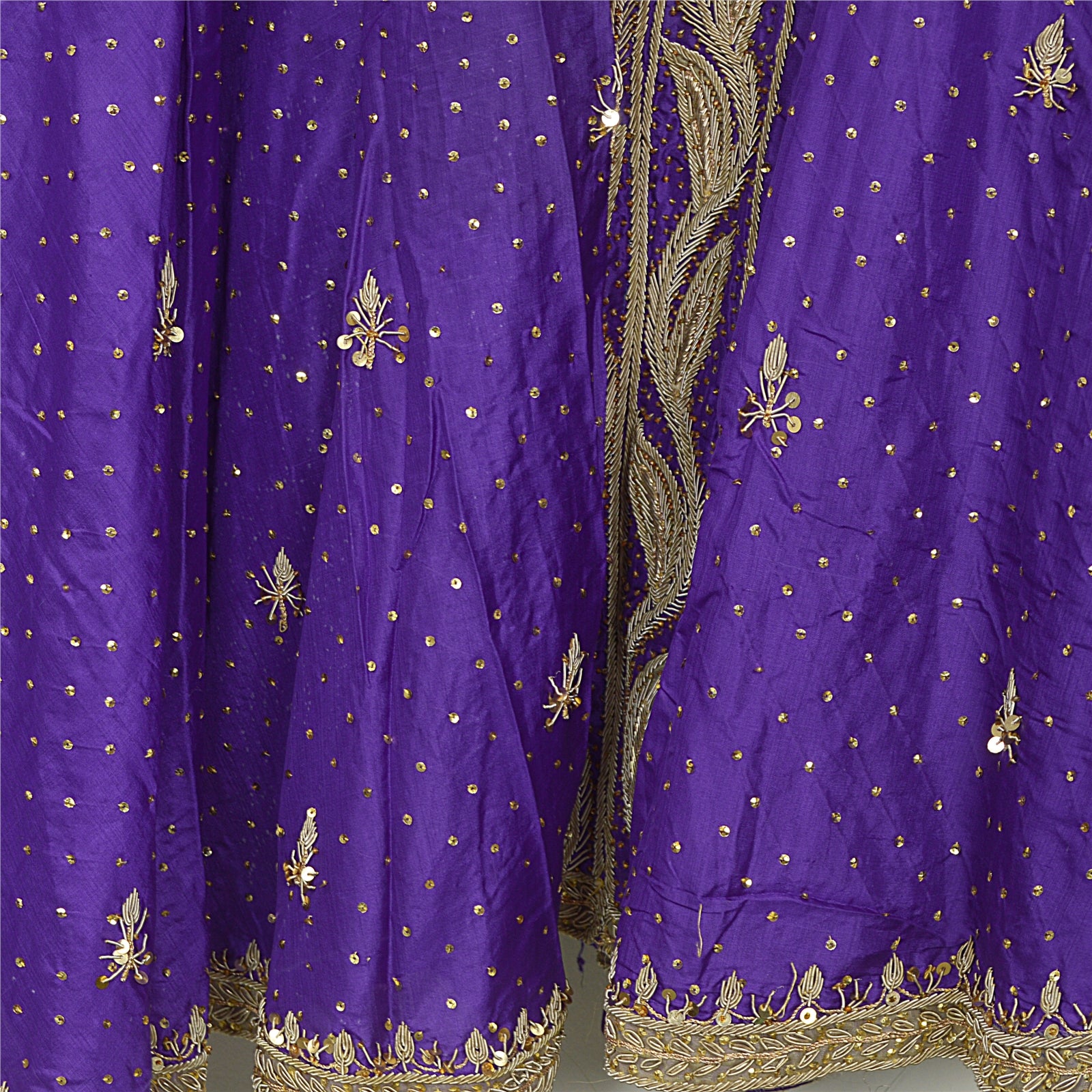 'THE ITEM COLOR OR SHADE MAY BE DARKER OR LIGHTER THAN THE PICTURE.' Incredibly Beautiful!! Sanskriti proffers this vintage purple color stitched long Lehenga made with 100% Pure Satin Silk base fabric. Very heavy hand embroidered lehenga is Antique, It is fully covered with zari work & patch work is done on the hem. Also the work is done on the hip is adding more grace that is unique and adorable that goes to the center of the front of the lehanga. Also Golden beads work is done to make it more adorable with sequin work to enhance the beauty of this lehanga/skirt. The work is done very neatly as you can see is totally worth your attention. Flaunt this heavy skirt with ethnic tops, blouses or kurtis at parties, weddings and other occasions. Perfect for your wardrobe, Grab it now!! As the product is Vintage, some mild stains/damages are expected. 'International buyers please note: Import duties, taxes, and charges are not included in the item price or postage cost. These charges are the buyer's responsibility. Please check with your country's customs office to determine what these additional costs will be prior to bidding or buying. Buyer will pay custom duty/tax. It is calculated and charged differently by every country. As a seller I do not have any control over it. VAT or sales tax is calculated by the platform at the time of checkout. Customs charge is payable at the time of delivery.'