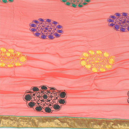 Sanskriti Vintage Red Dupatta Long Stole Pure Chiffon Silk Embroidered Scarves