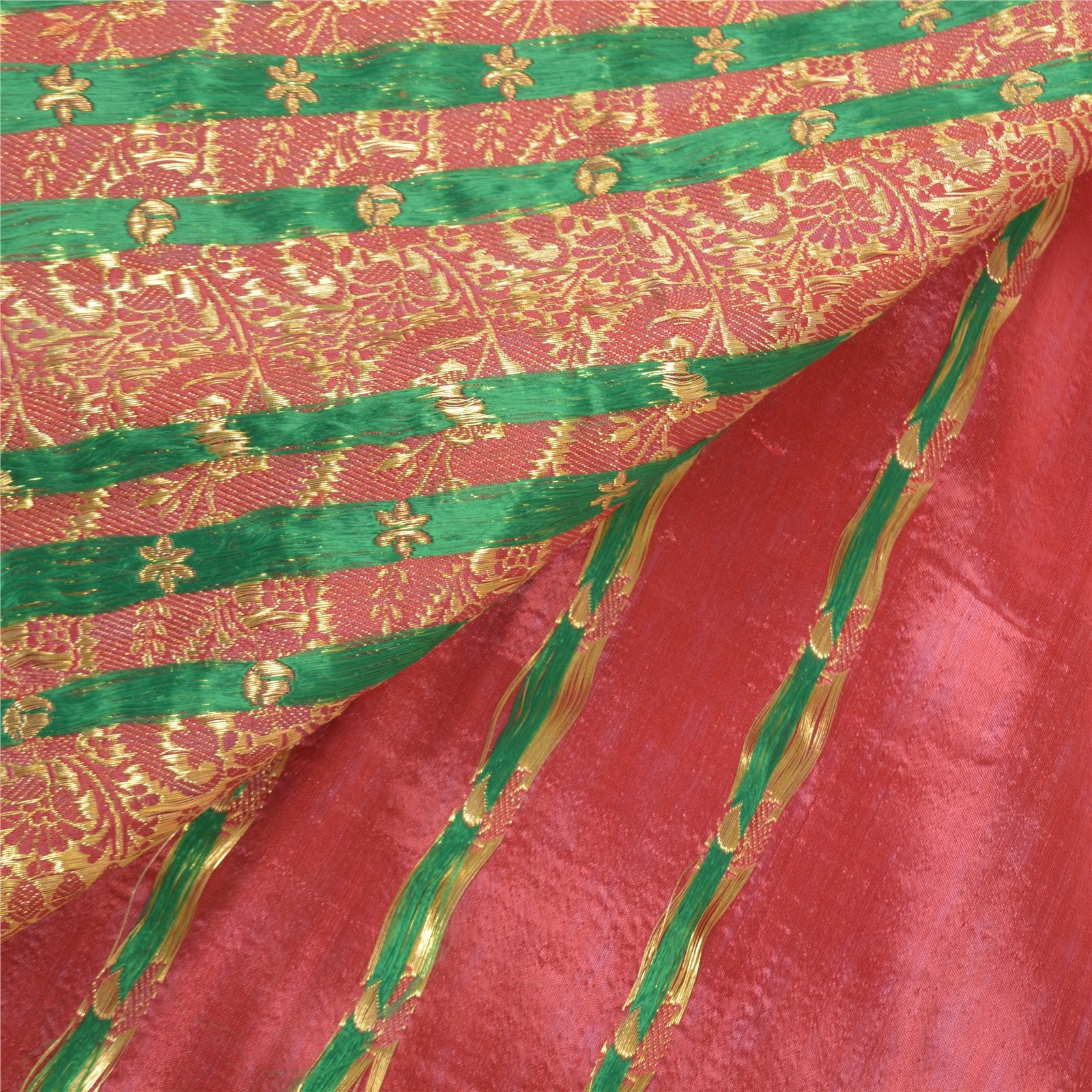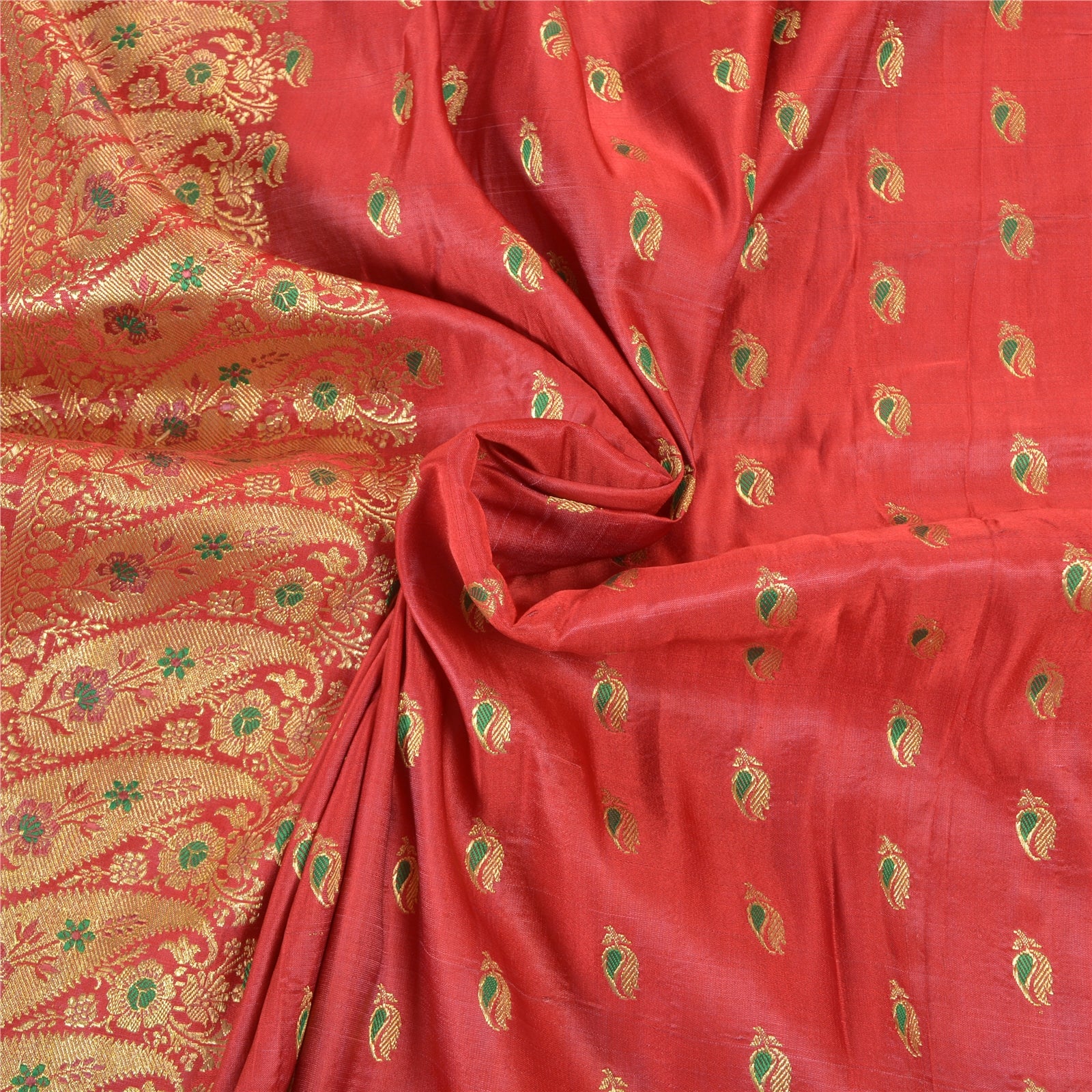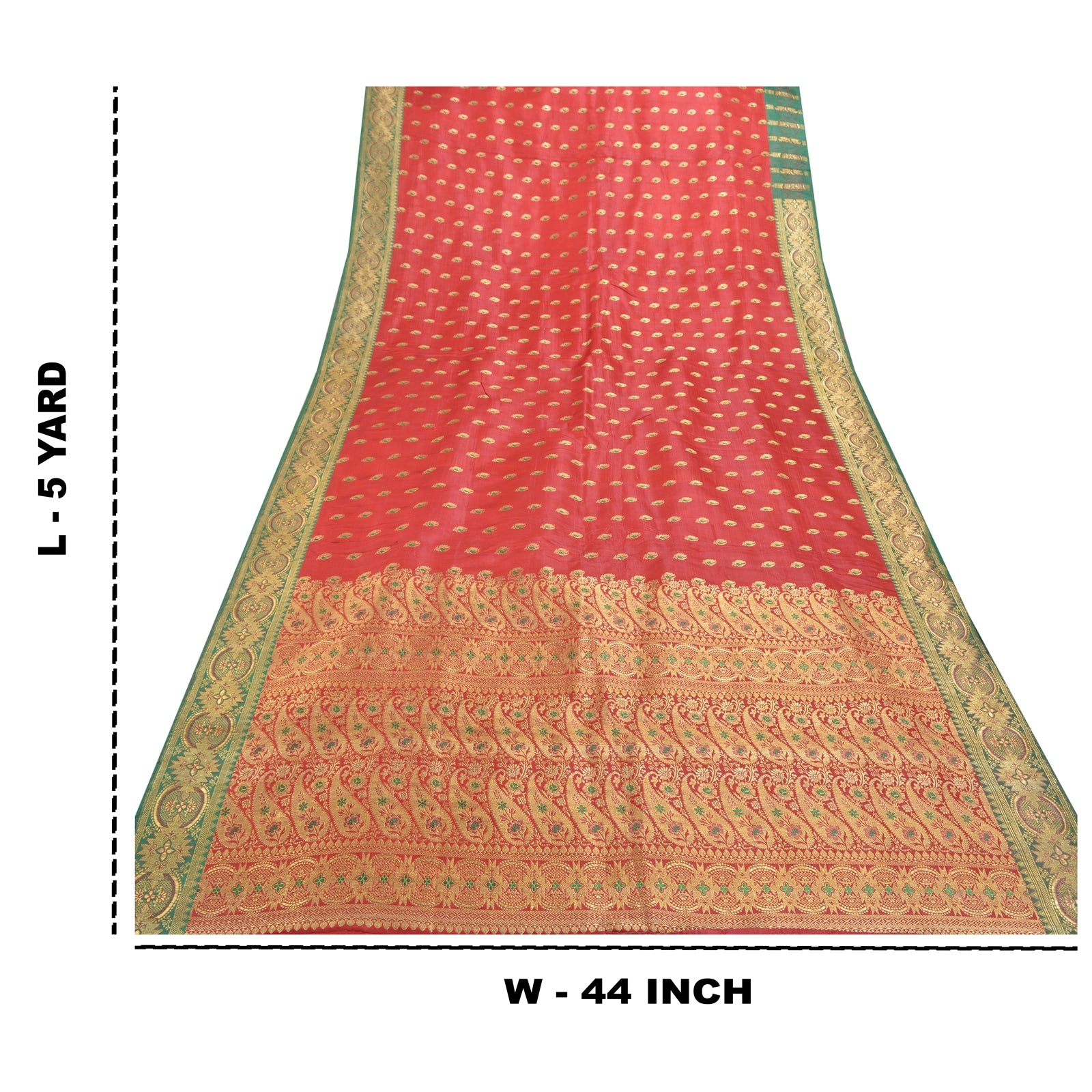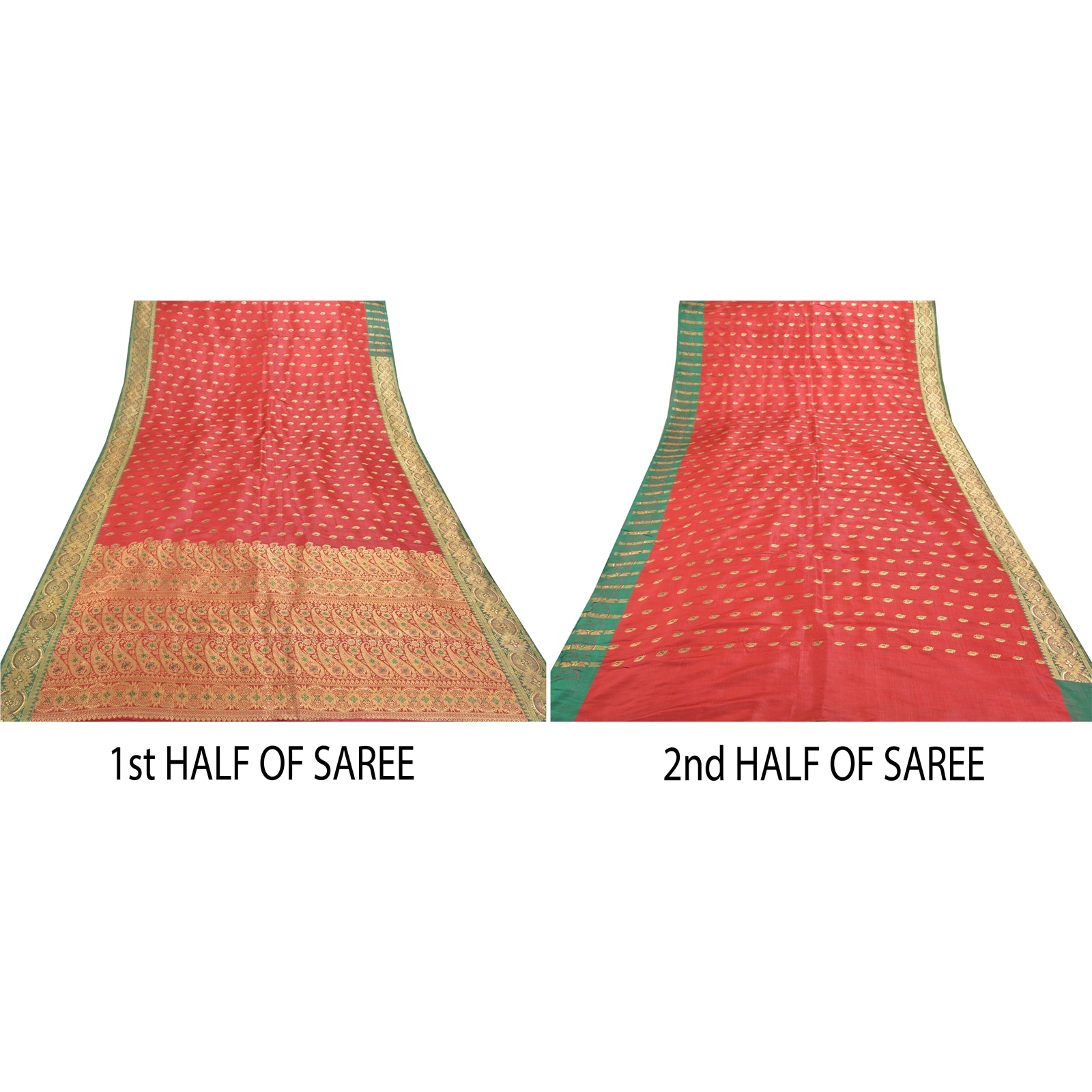 Sanskriti Vintage Red Heavy Sarees Pure Satin Silk Woven Brocade Sari Sustainable Fabric