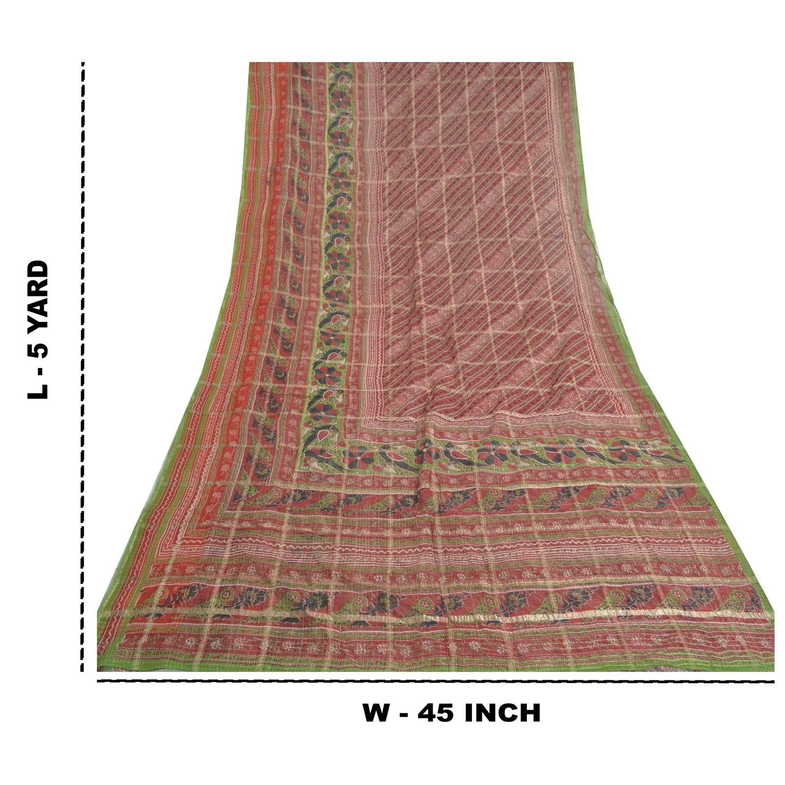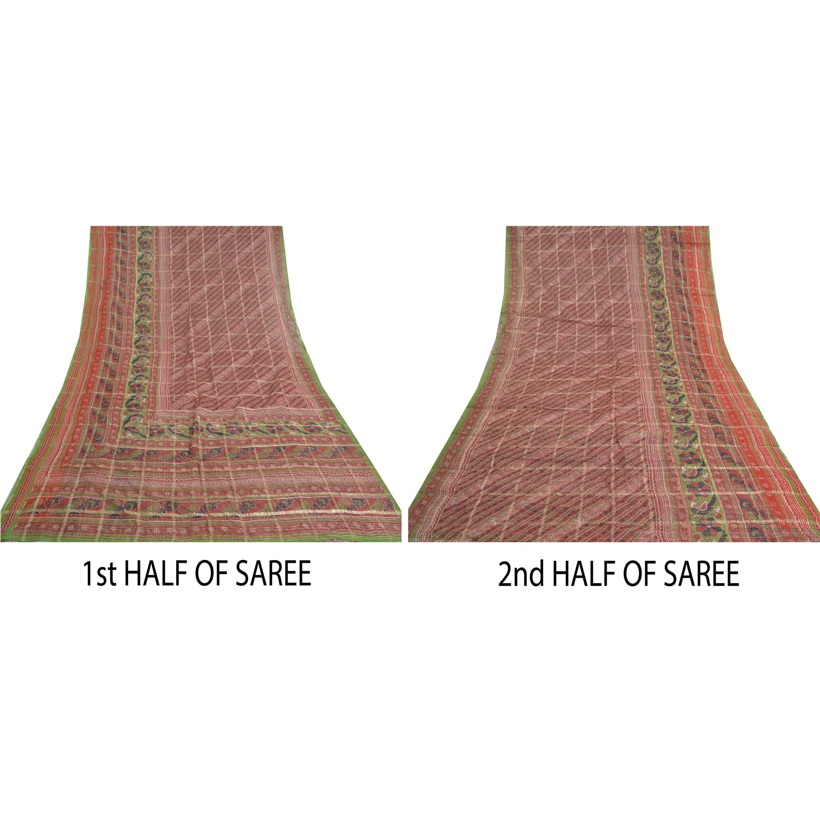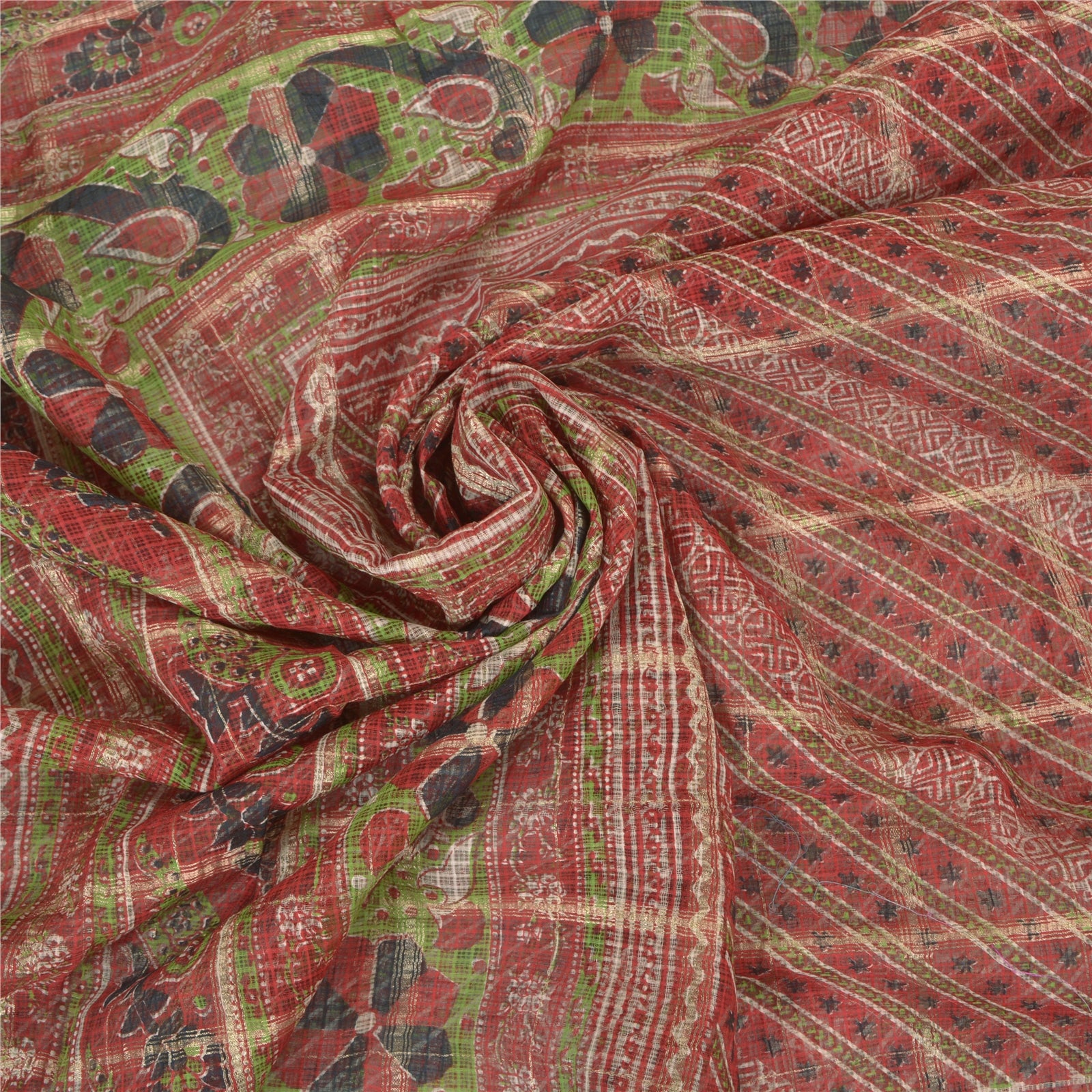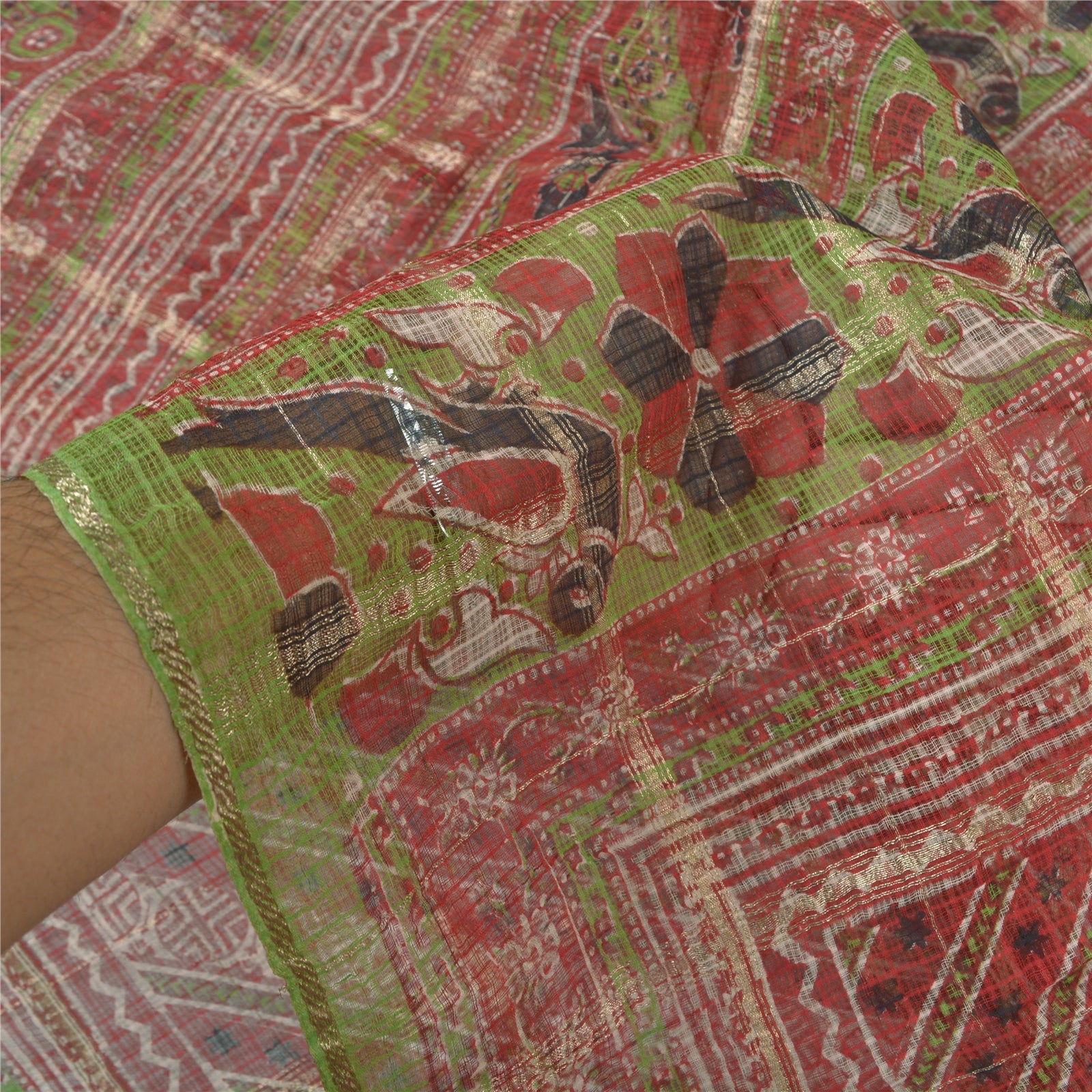 Beautiful red & green colored 100% pure cotton printed woven Kota sari. Pallu has multi color printed work with floral & parrot design with golden zari work on borders. The center of the saree has printed floral design. You can see all over sari base Sustainable Fabric tiny square woven work. This saree can be used for various crafting ideas too. Use it for dress designing, as a throw, as window dressing, upholstery, table linen and much more. Let your creative juices flow.