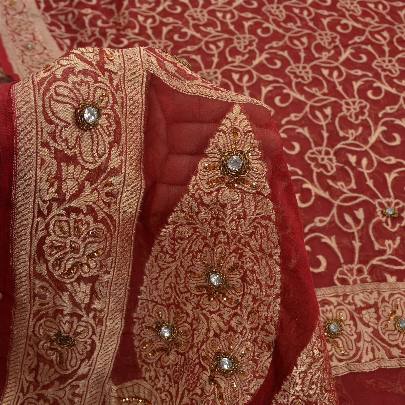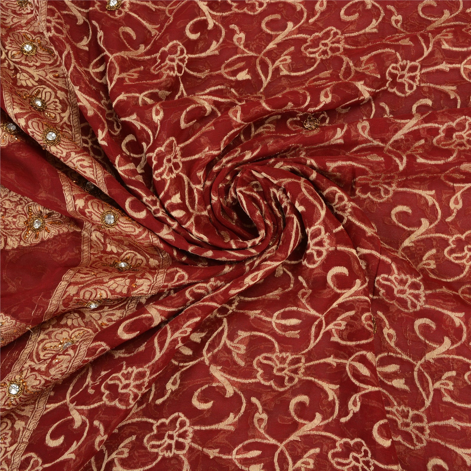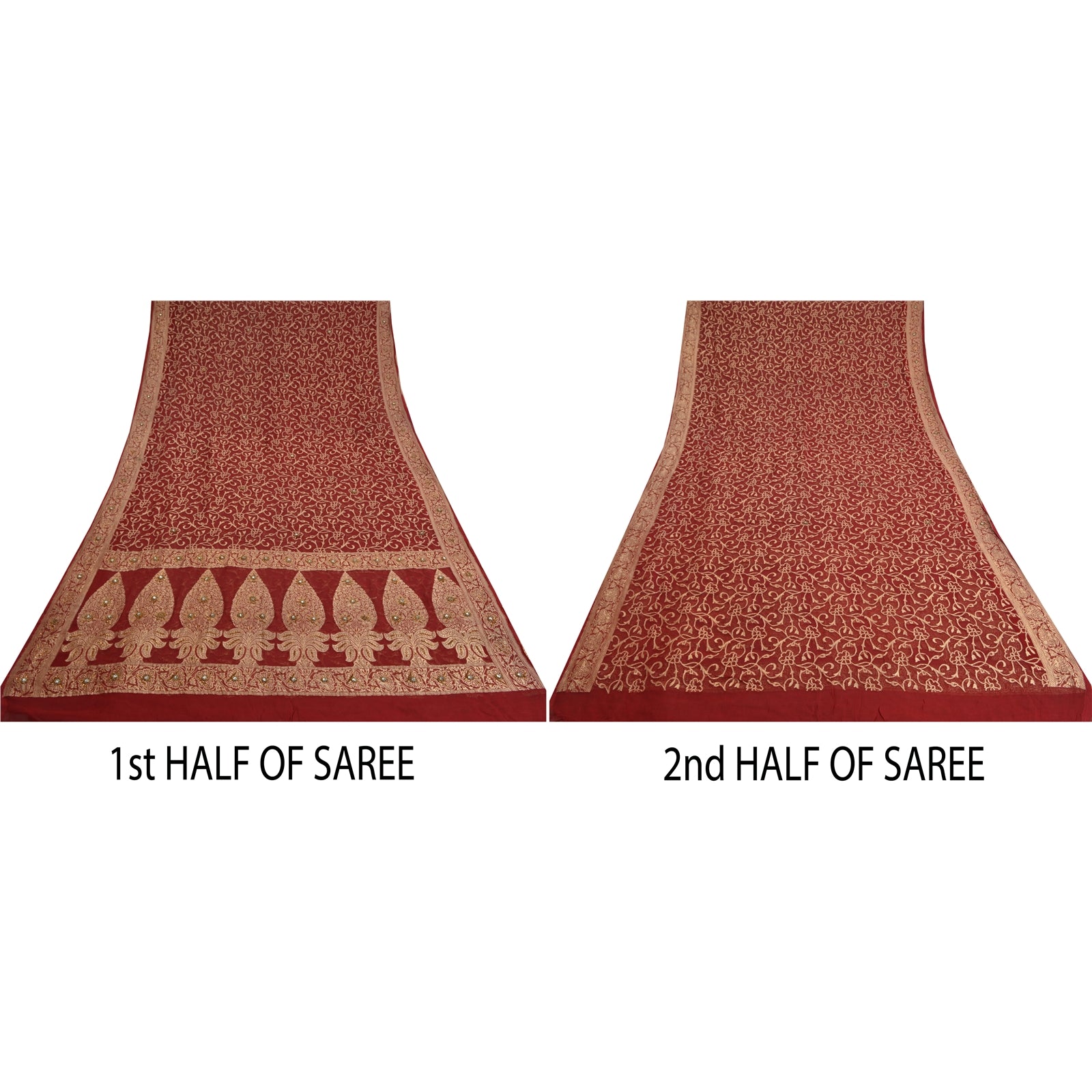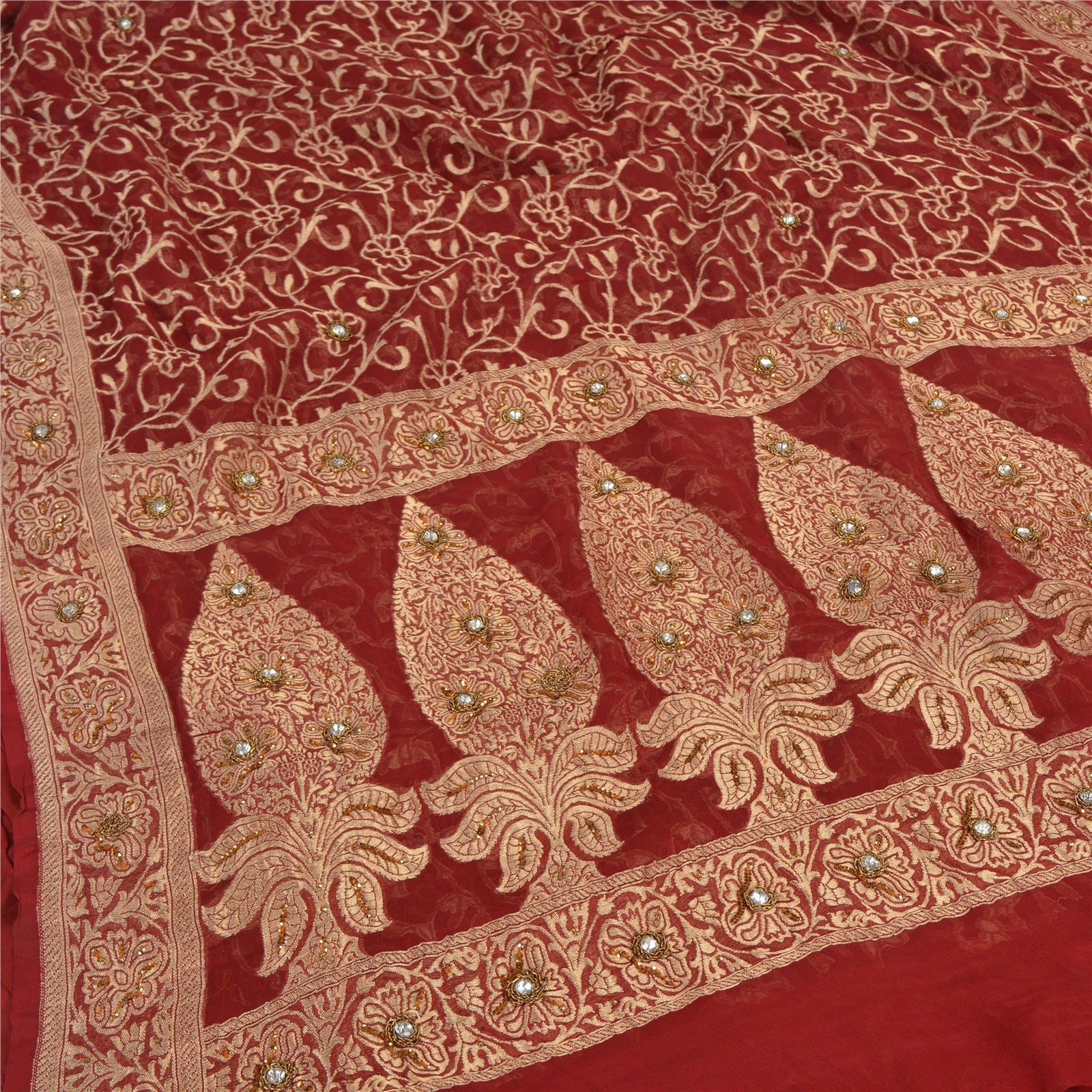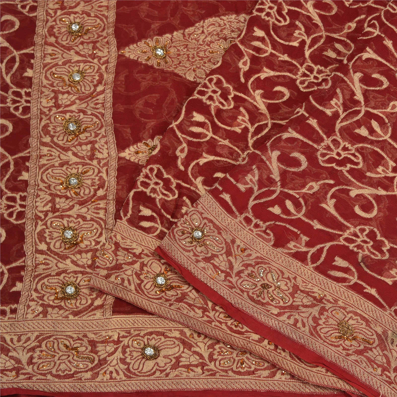 Sanskriti Vintage Red Sarees Pure Georgette Silk Pure Beaded Woven Sari Fabric
