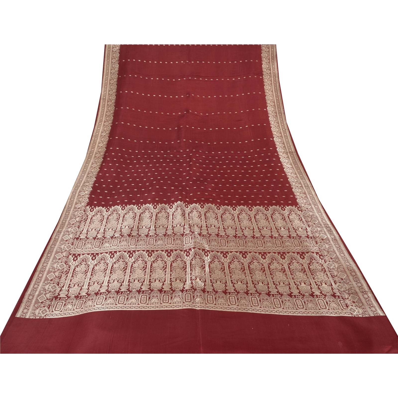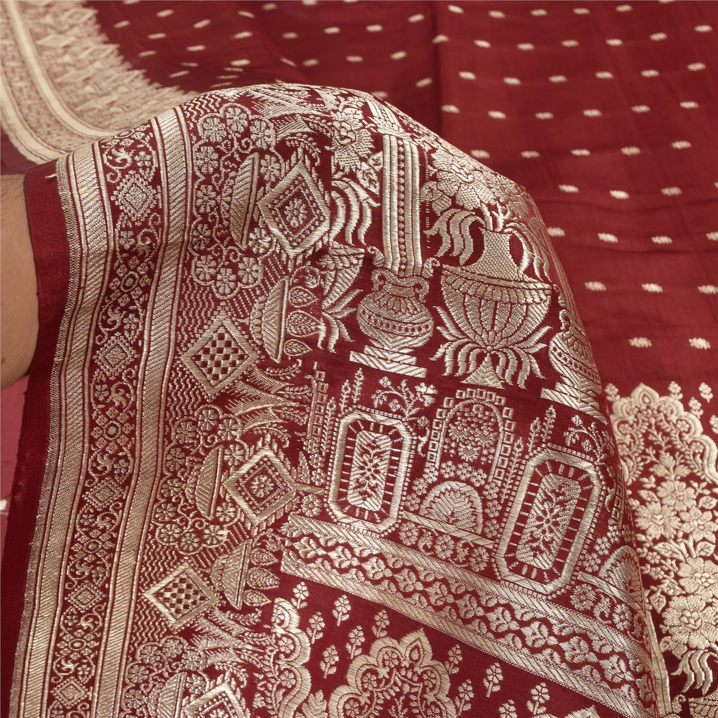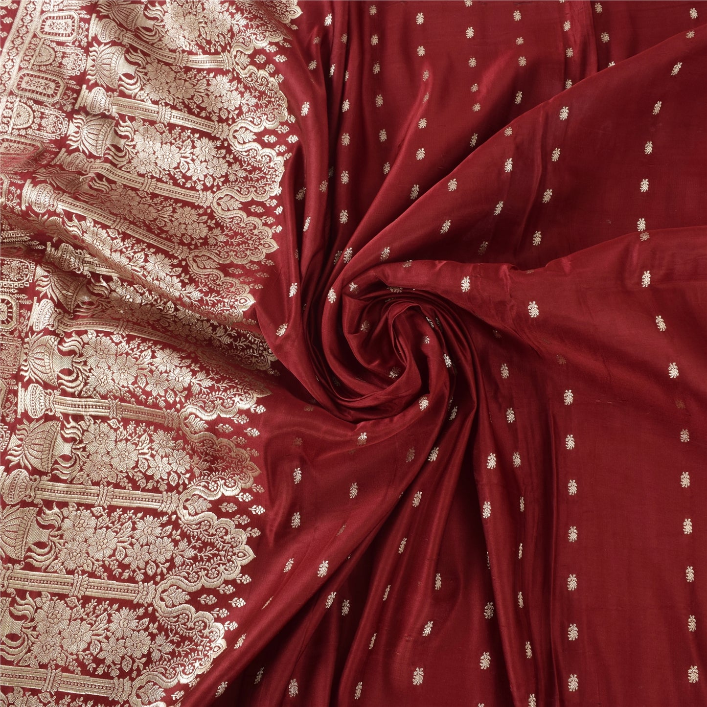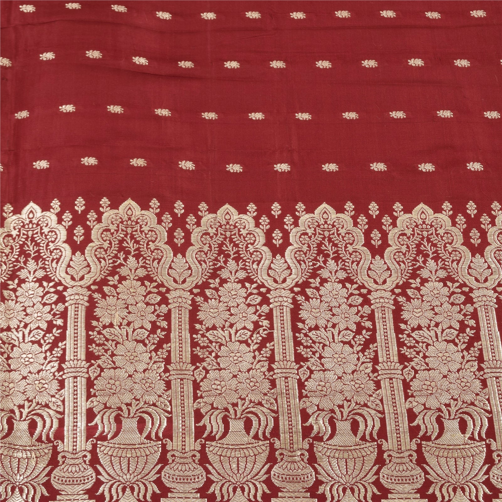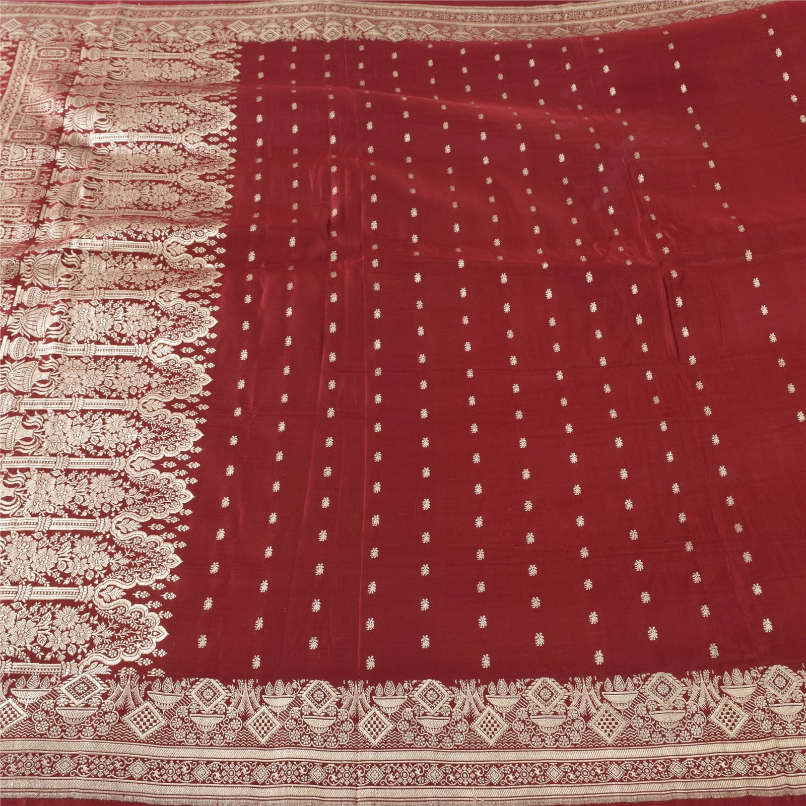 Sanskriti Vintage Red Sarees Pure Satin Silk Banarasi Brocade Woven Sustainable Fabric Sari