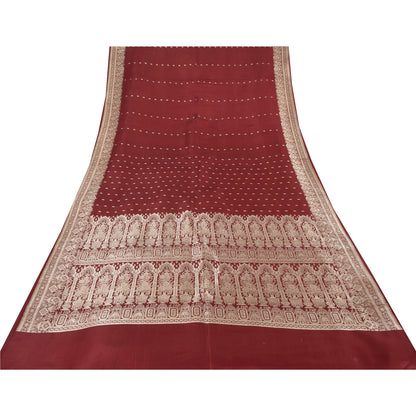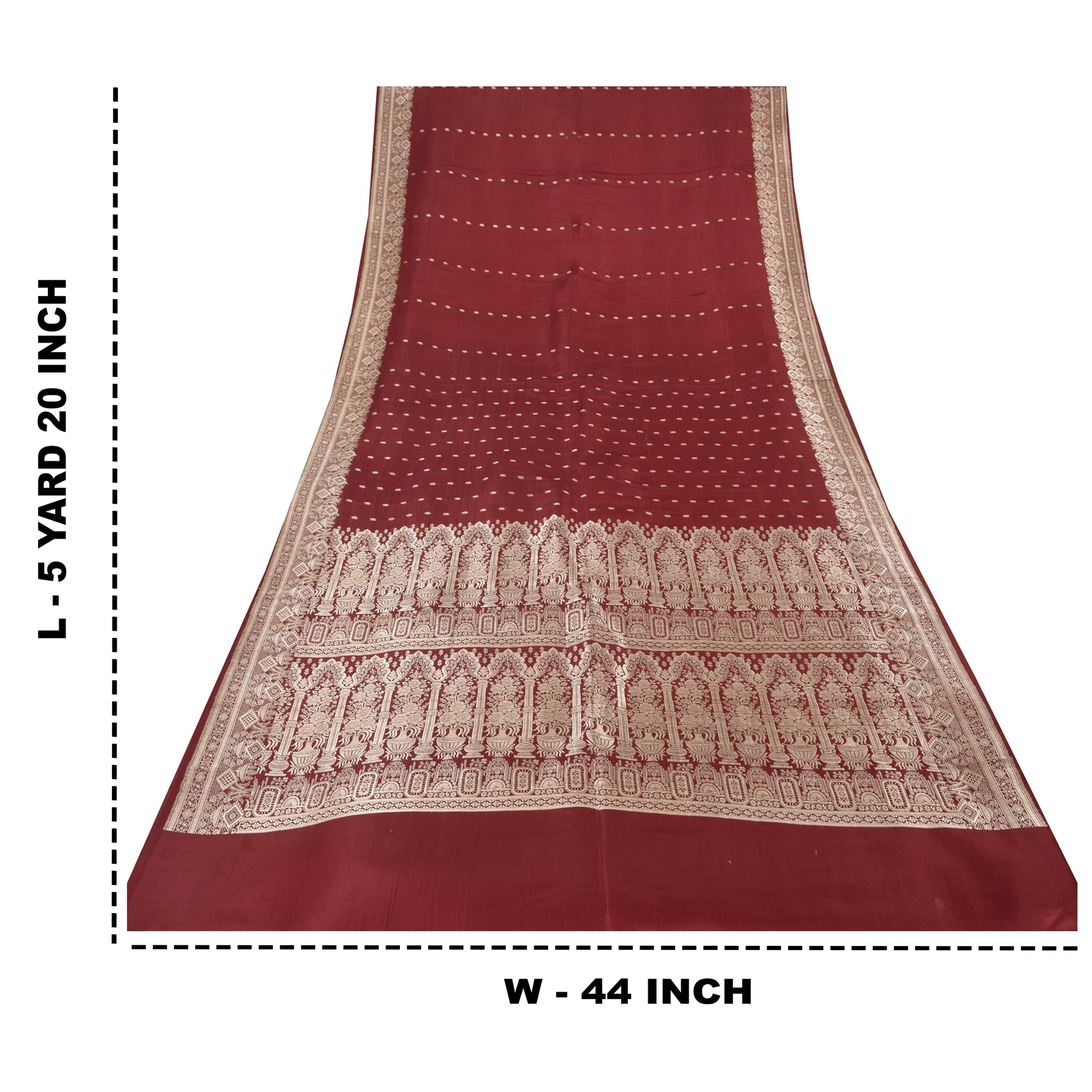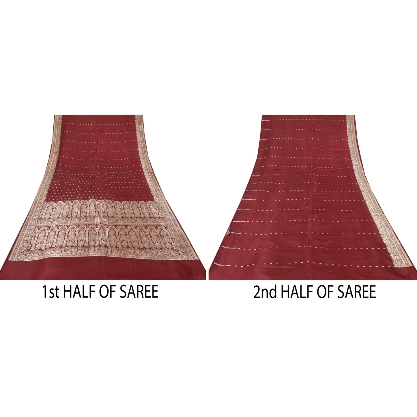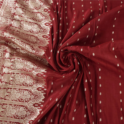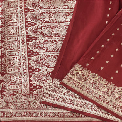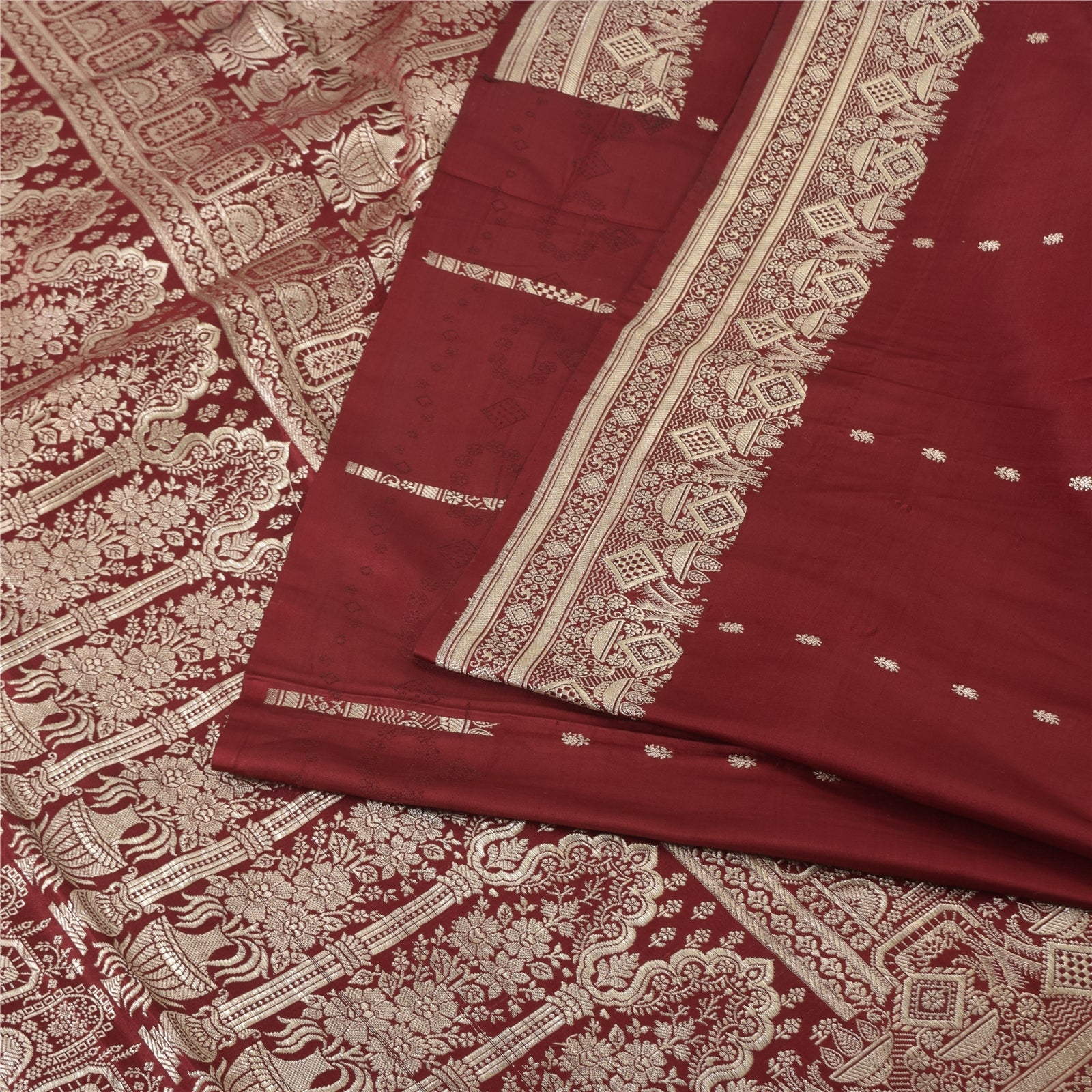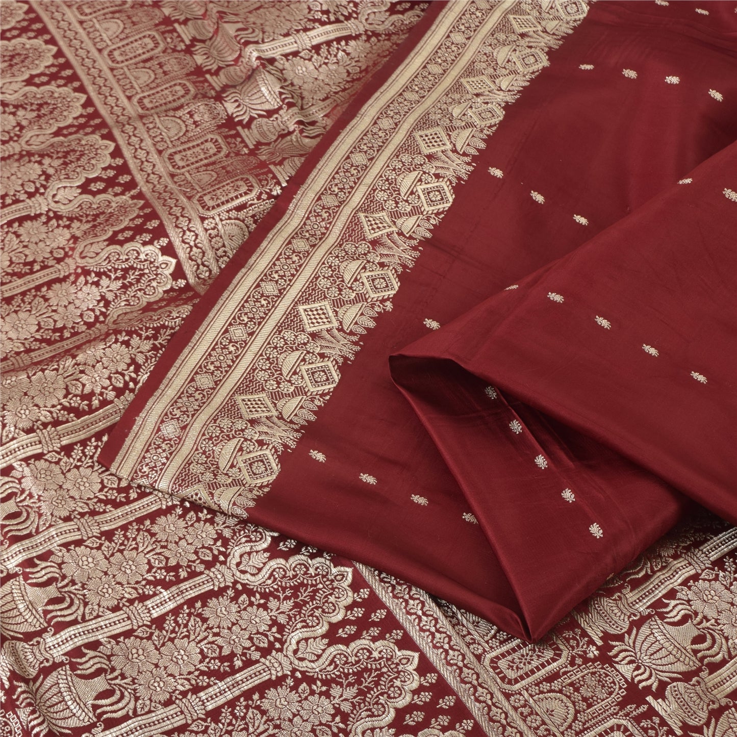 Sanskriti Vintage Red Sarees Pure Satin Silk Banarasi Brocade Woven Sustainable Fabric Sari